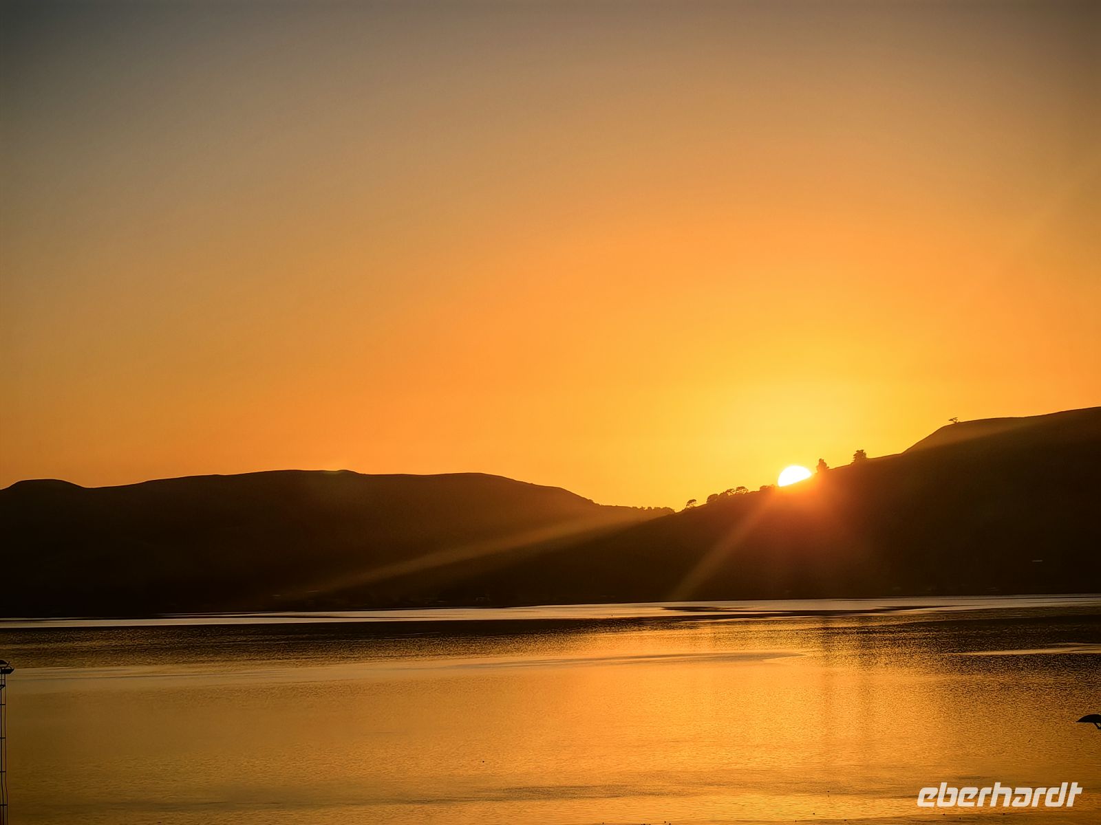 Am frühen Morgen erreichen wir bei starkem Wind den kleinen Hafen von Timaru an der Ostküste Neuseelands. Der Kapitän hat sichtlich Mühe, bei den Böen in die kleine Einfahrt zu kommen aber pünktlich zum Sonnenaufgang legen wir an.