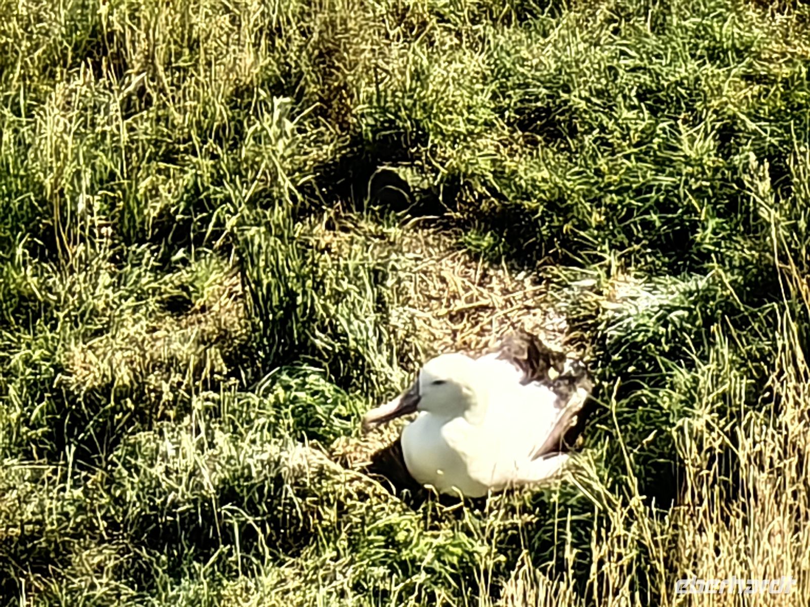 Die Flügelspanne der Königsalbatrosse kann bis zu drei Meter betragen. Hier am Taiaroa Head gibt es die weltweit einzige Brutkolonie der Königsalbatrosse auf dem Festland. Der erste hier geborene Jungvogel lernte 1938 das Fliegen. Mittlerweile hat sich die Kolonie fest etabliert und etwa 140 Vögel kommen regelmäßig her, zwei davon brüten gerade und weitere schweben majestätisch in den Lüften. Was für ein Erlebnis!
