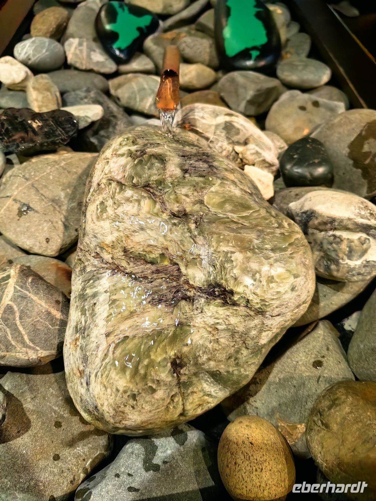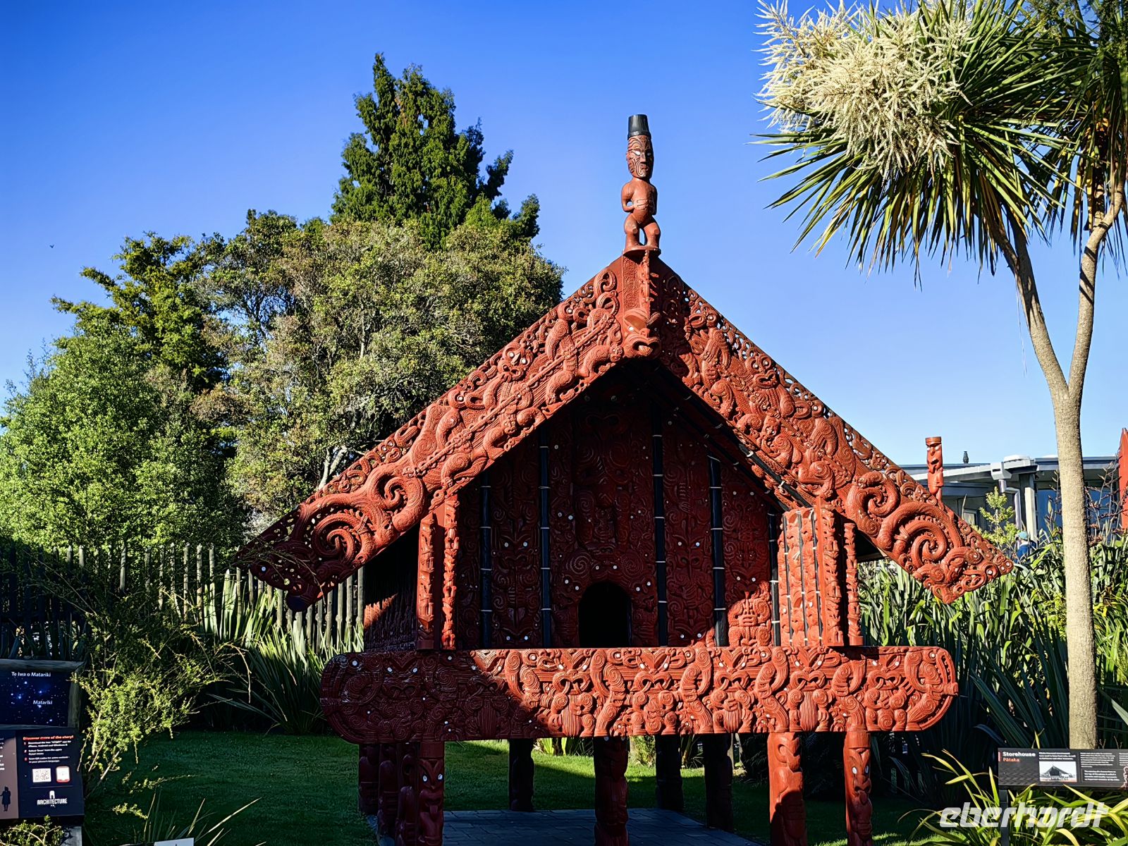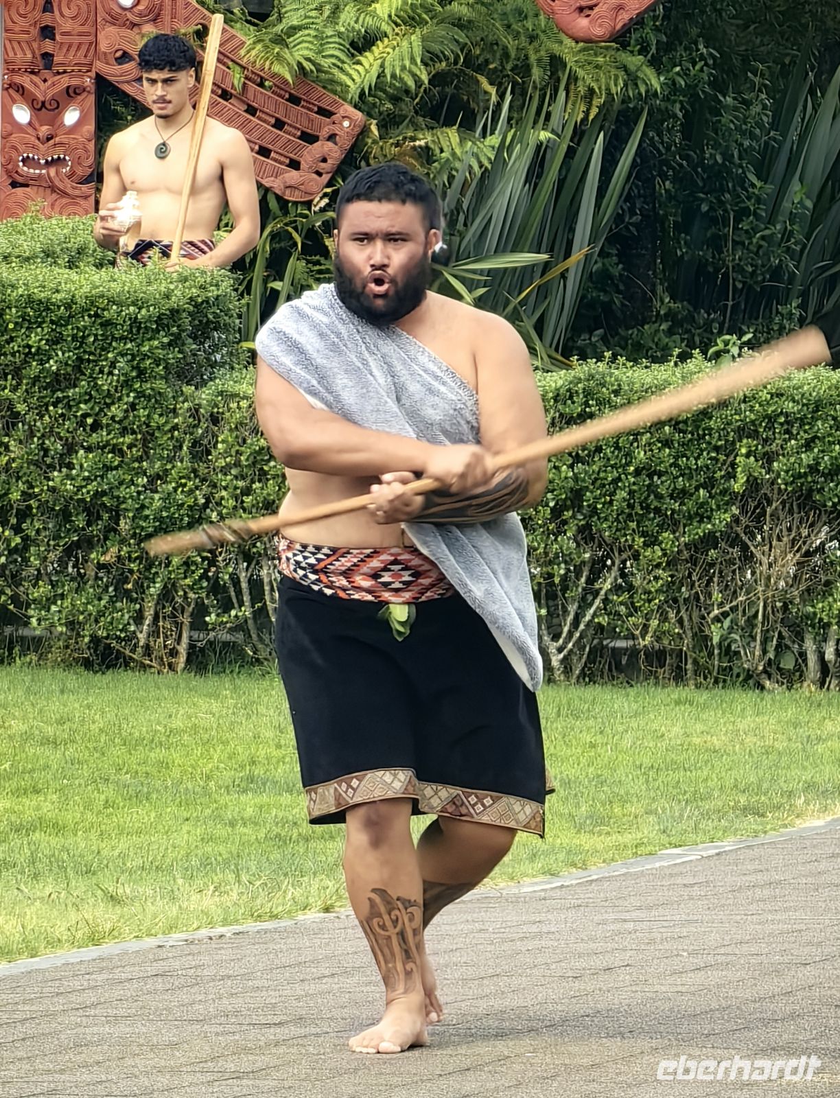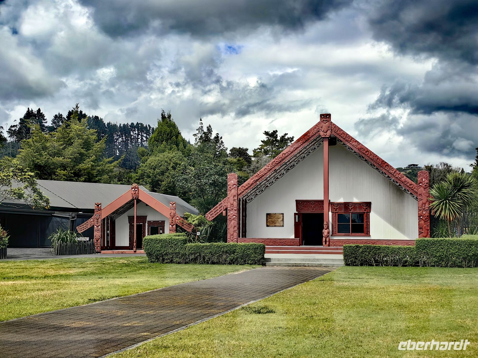 Im an das Gelände grenzenden Kulturzentrum der Maori ist wundervolles Kunsthandwerk ausgestellt, wir dürfen den Jadeschleifern, Flachsflechterinnen und Holzbearbeitern über die Schultern schauen, und wer sich etwas davon mitnehmen möchte, kann zwischen Jadeschmuck, traditioneller Handwerkskunst und Bekleidung wählen.