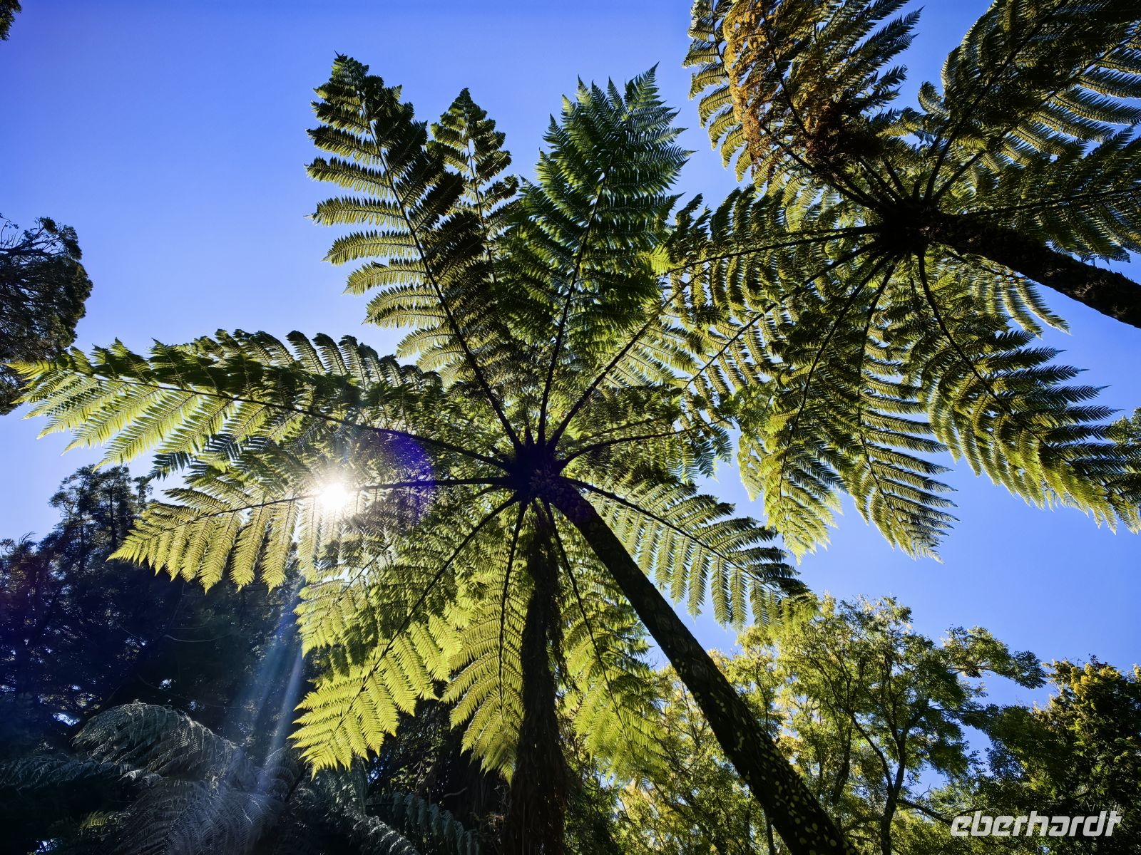 Es ist bereits Mittag geworden und wir beschließen, die Stadt nun auf eigene Faust zu entdecken. Den Lambton Quay bummeln wir entlang und fahren mit dem berühmten roten Cable Car aus dem Jahre 1922 auf den Hügel hinauf. Hier oben hat man erneut einen fantastischen Blick auf die Stadt und bei einem kühlen Bier und Wein genießen wir das Wetter und den Ausblick. Im botanischen Garten zirpen die Grillen, als gelte es, ein Orchester zu übertönen. Die Baumfarne schaukeln mit ihren riesigen Blättern in der Sonne, der Rhododendron ist meterhoch, der Acapantus in Neuseeland eher Heckenpflanze als wohlgehütete einzelne Topfpflanze, wie in europäischen Breiten. Nachdem wir durch beleuchtete Tunnel mit dem Cable Car den Hügel wieder hinunter gefahren sind, entscheiden sich einige fürs Shopping, andere für einen Bummel entlang der Hafenpromenade.
