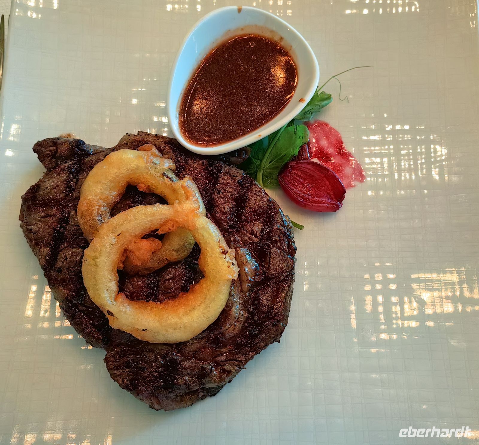 Am Abend finden wir uns im Spezialitätenrestaurant Pinnacle Grill ein und sind nach den Fleisch- und Fischspezialitäten so gesättigt, daß wir ermattet in unsere Betten gleiten.