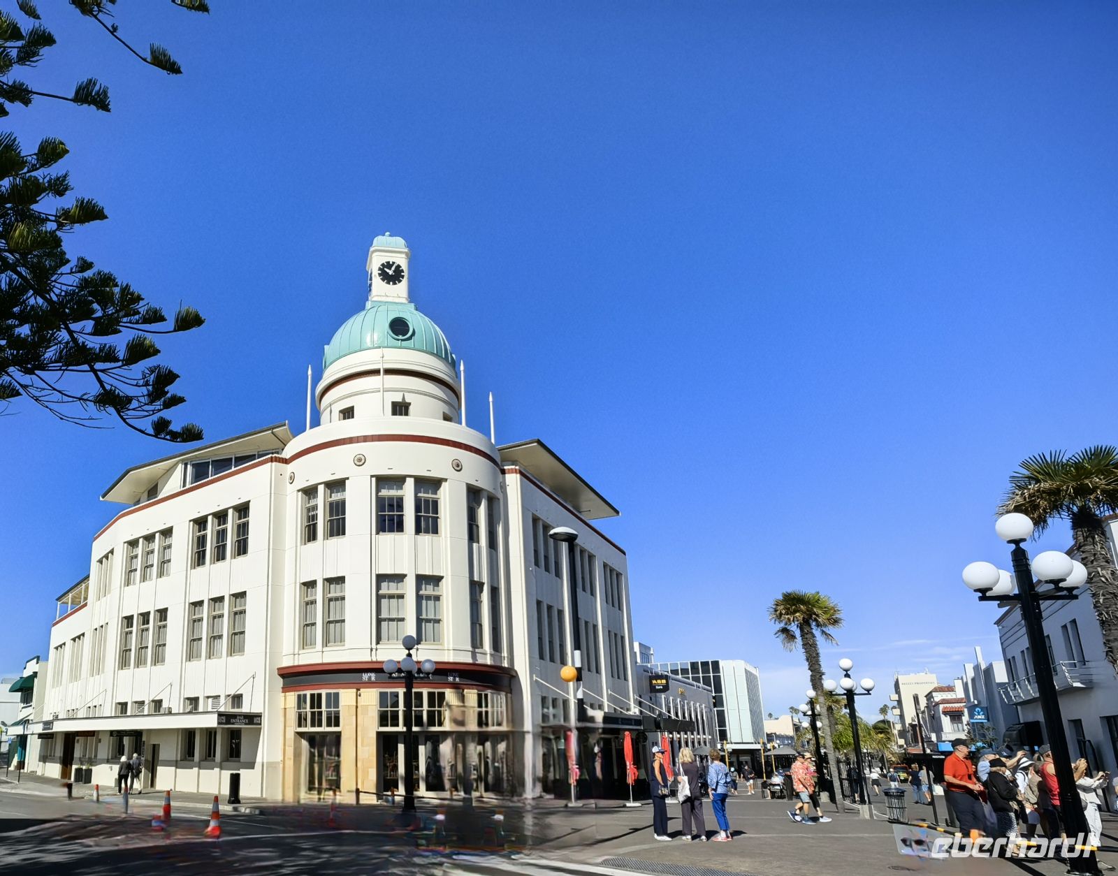 Durch das Erdbeben wurde der Erdboden um teilweise um bis zu 2,7 Meter angehoben, so daß aus der Ahuriri-Lagune, sowie aus den großen Wattgebieten 40 Quadratkilometer Neuland entstanden. Obwohl damals eher wirtschaftliche Flaute herrschte, entschied man sich für den Neuaufbau und heutzutage erfreuen sich sowohl die Einwohner, wie auch die Besucher an einem ganz eigenen Art Deco Stil der Gebäude und an einer sehr gepflegten und wundervoll bepflanzten Strandpromenade.