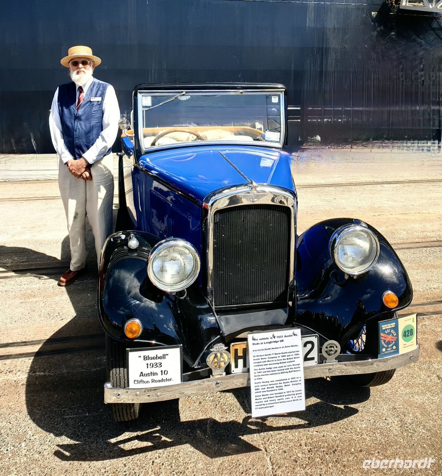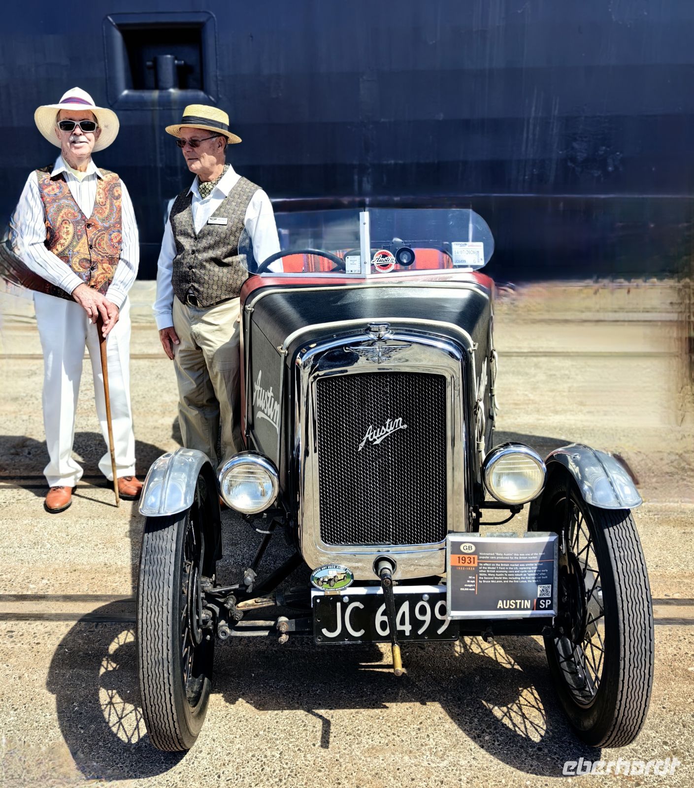 Als wir zum Schiff zurückkehren, haben sich dort mehrere Einwohner Napiers mit ihren Oldtimern eingefunden, um uns zu verabschieden und eine Jazzband spielt Musik aus den 1930er Jahren.