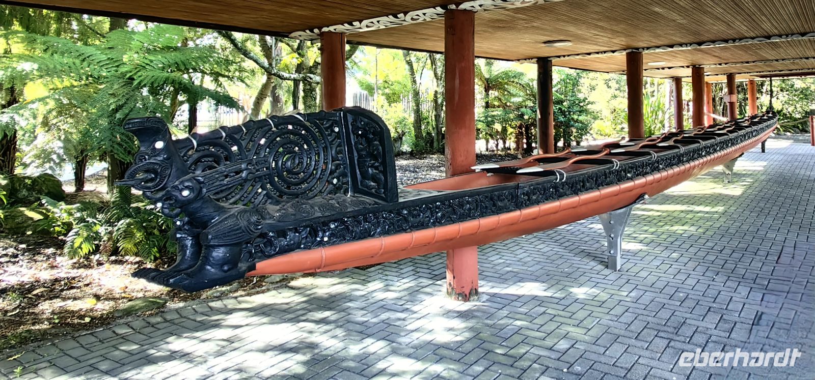 Mit einem Tenderboot verlassen wir unser Schiff heute und erreichen nach zwanzigminütiger Schaukelei Waitangi. Hier wurde 1840 zwischen den Maori und den britischen Repräsentanten der berühmte Friedensvertrag, der sogenannte Maori Chiefs den Treaty of Waitangi geschlossen, der die Zukunft des Landes entscheidend prägen sollte.