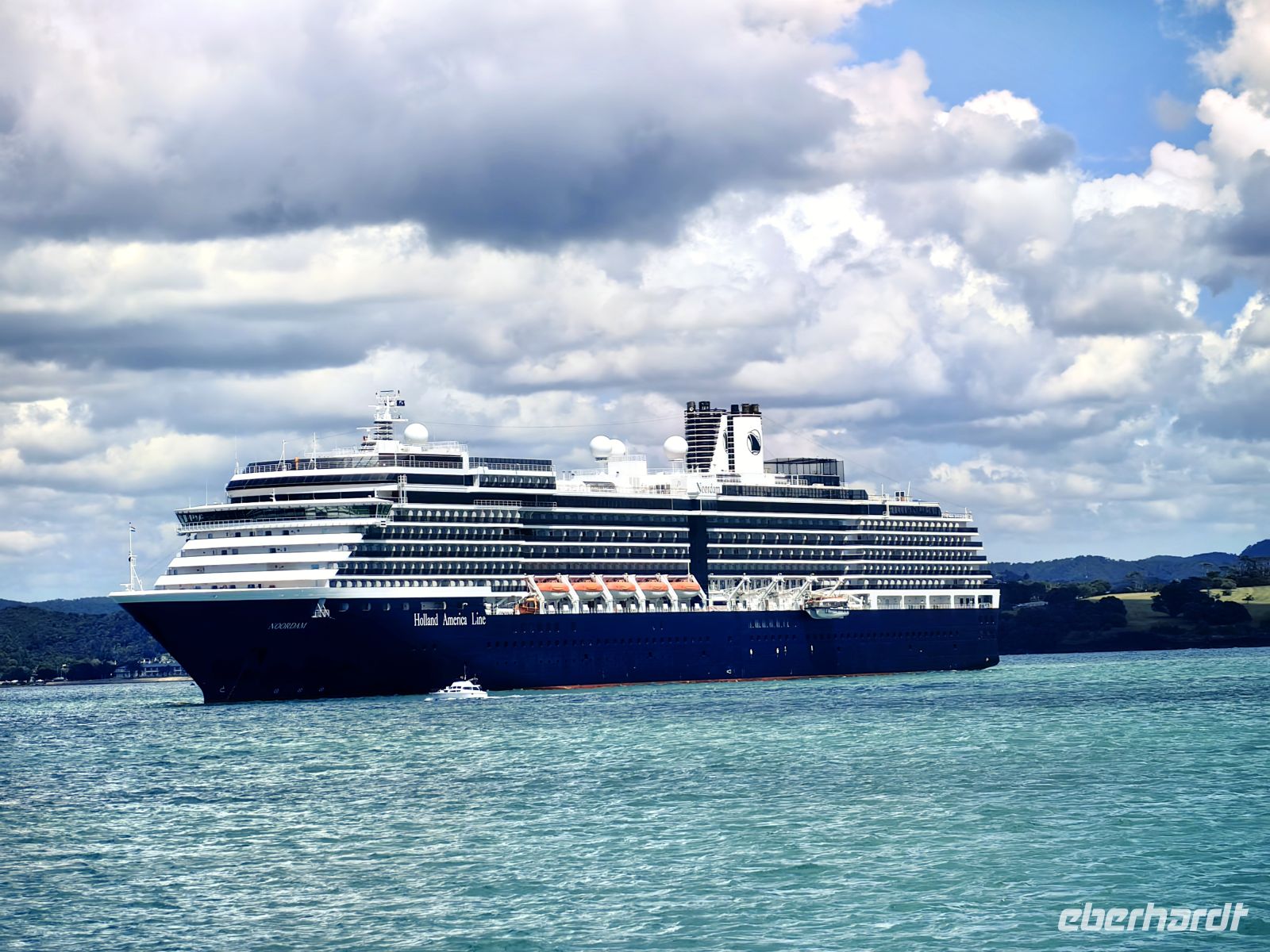Unser absolut traumhaftes Vorprogramm in Australien liegt nun bereits hinter uns und wir gehen im Hafen von Sydney am Nachmittag aufs Schiff. Die MS Noordam liegt vor uns. Sie fast knapp 2.000 Gäste, was für ein Kreuzfahrtschiff heutzutage eher klein ist, die Länge des Schiffes beträgt 285 Meter und die Breite etwas über 30 Meter. Die nach der nördlichen Himmelsrichtung benannte Noordam besticht durch Kunstwerke in Museumsqualität und luxuriöse Kabinen.