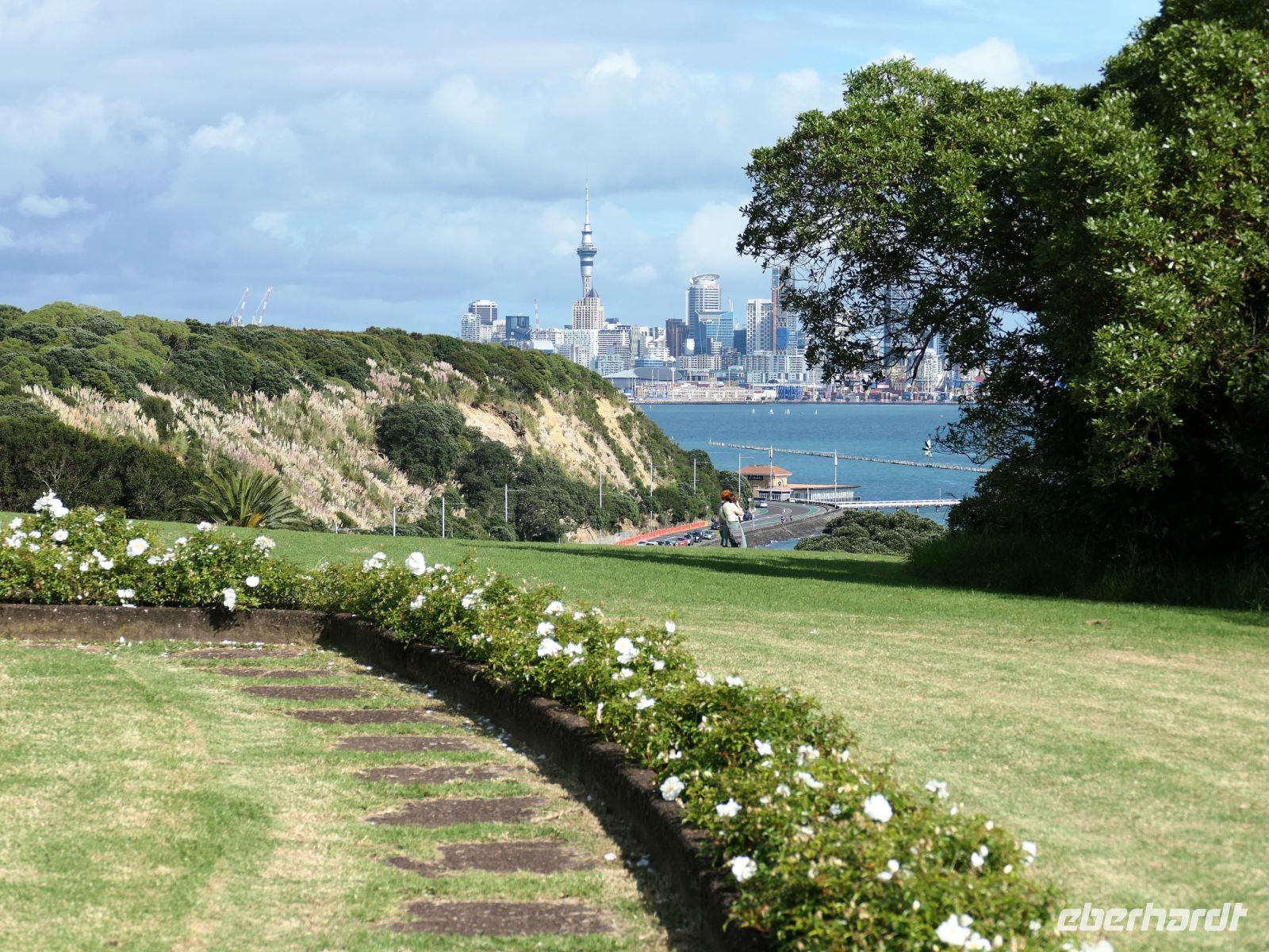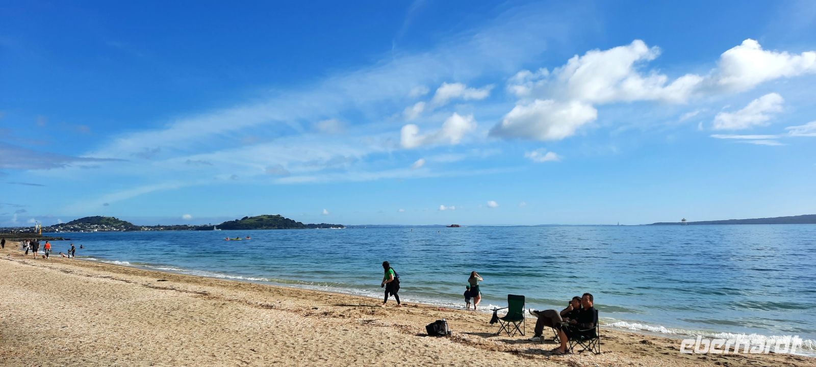 Erstaunlicherweise hatten alle die lange Anreise gut überstanden. Dennoch erlaubten wir uns heute, etwas länger zu schlafen. Der Tag empfing uns mit strahlender Sonne und herrlichstem Frühlingswetter (bei den Kiwis Herbst). Wir fuhren zunächst nach Mission Bay, einem noblen Küstenvorort von Auckland City. An der Strandpromenade unternahmen wir einen Spaziergang. Es war Sonntag und viele Kiwis waren unterwegs, genossen ebenfalls den Sonnenschein. Unweit befindet sich der Michael Joseph Savage Memorial Park (ehemaliger Premierminister, der sich sehr für soziale Zwecke einsetzte), wo wir einen super Ausblick auf die Buchten und die Skyline von Auckland hatten. Der Aussichtshügel, so erfuhren wir von Bernd, war Brennpunkt der Maori-Proteste, die sich gegen die Enteignung während der Kolonisierung wehrten. In Auckland City zurück, fuhren wir durch Downtown. Noch vor einigen Jahren grau und düster, wurde das Viertel durch kluge Stadtplanung wieder belebt. Auch die 8-spurige Auckland Harbour Bridge, die Auckland City und die nördlichen Stadtteile verbindet, war ein wichtiges Bauprojekt für den Verkehr. Auckland platzt aus den Nähten, ca. ¾ der Kiwi-Bevölkerung leben in der Region. Im Waitemata Harbour Tausende Segelboote und Yachten, im Hintergrund die beeindruckende Skyline. Kein Wunder, warum Auckland Stadt der Segel genannt wird. An der quirligen Promenade verbrachten wir unsere Mittagspause, wie auch viele andere an diesem Sonnentag. Am Nachmittag unternahmen wir einen Überraschungs-Ausflug an die Westküste. Unser Ziel war der Muriwai Beach, wo eine Basstölpel Kolonie zu Hause ist. Leider waren alle Zugänge zum Strand und somit zu den Basstölpen gesperrt. Der Tropensturm und die Überschwemmungen verursachten auch hier massive Erdrutsche. Eine nette Polizistin gab uns einen Geheimtipp. Wir fuhren nach Te Henga. Ein wunderschöner Strandspaziergang am rustikalen und Menschen leeren Strand, Bethells Beach war eine gelungene Abwechslung. Am späten Nachmittag waren wir in unserem Hotel zurück. Ein wunderschöner Tag neigte sich dem Ende. Beim gemeinsamen Abendessen im Hotel speisten wir a la carte und besprachen den Reiseverlauf der nächsten Tage. Wir waren im Kiwi-Land angekommen.