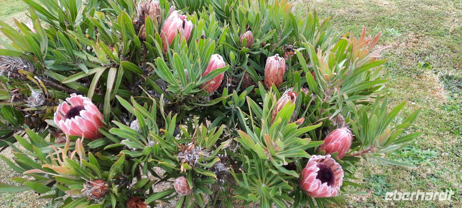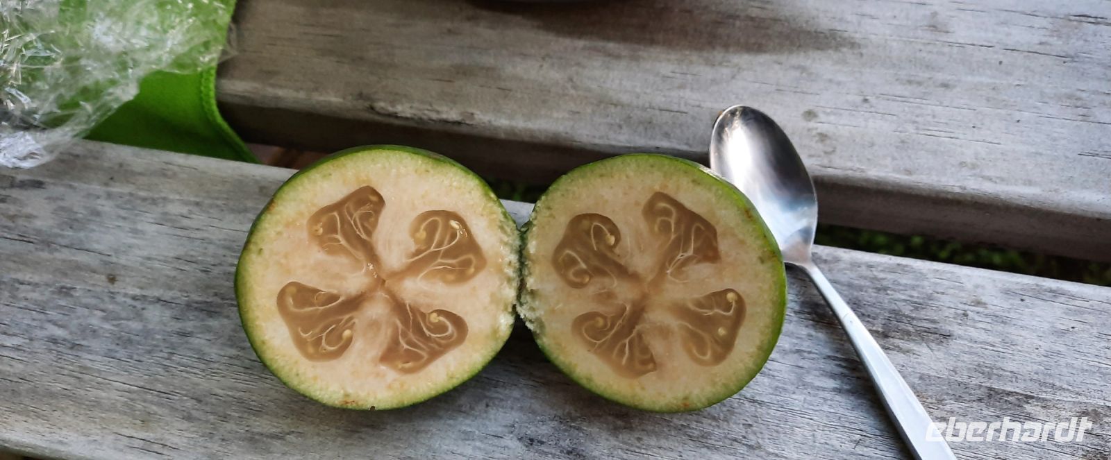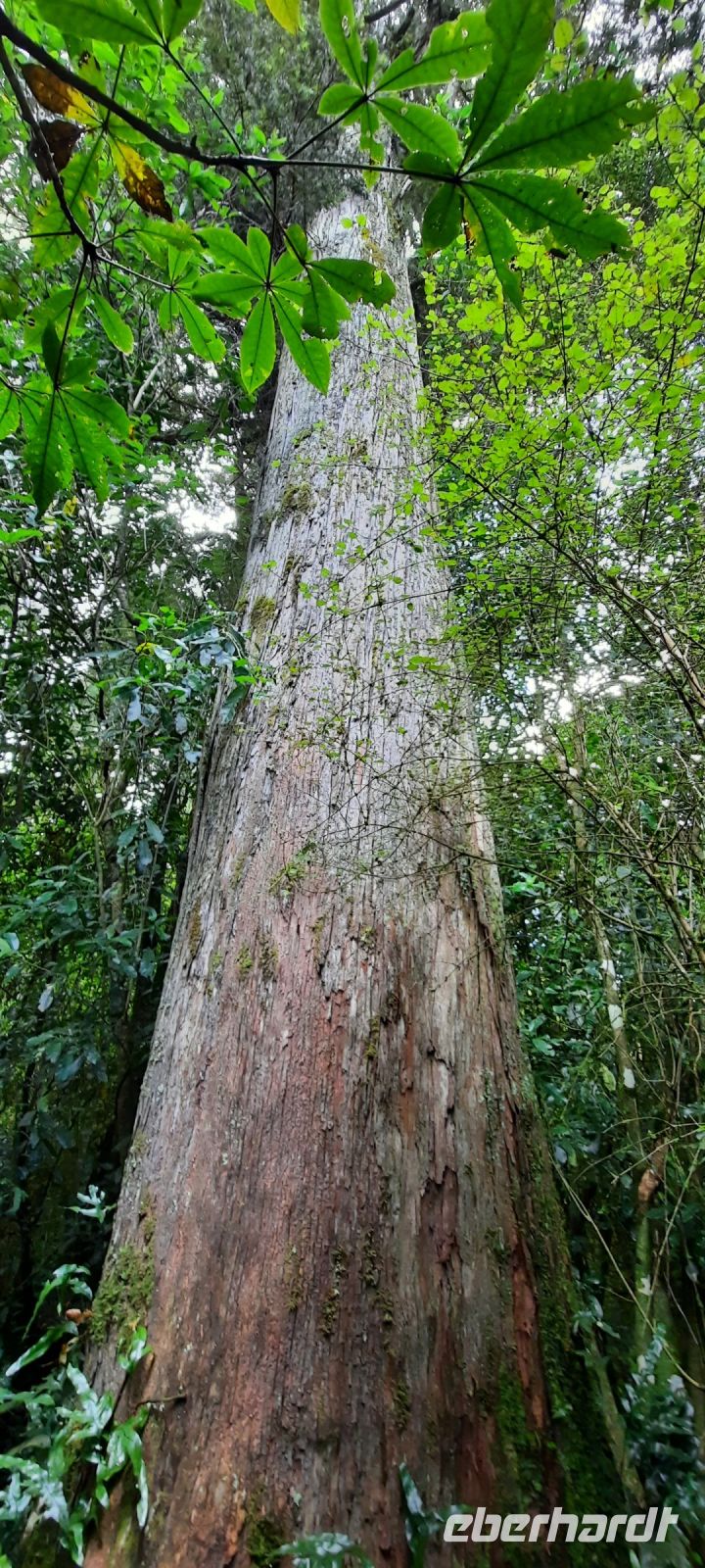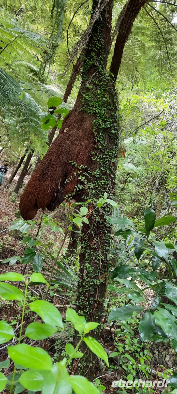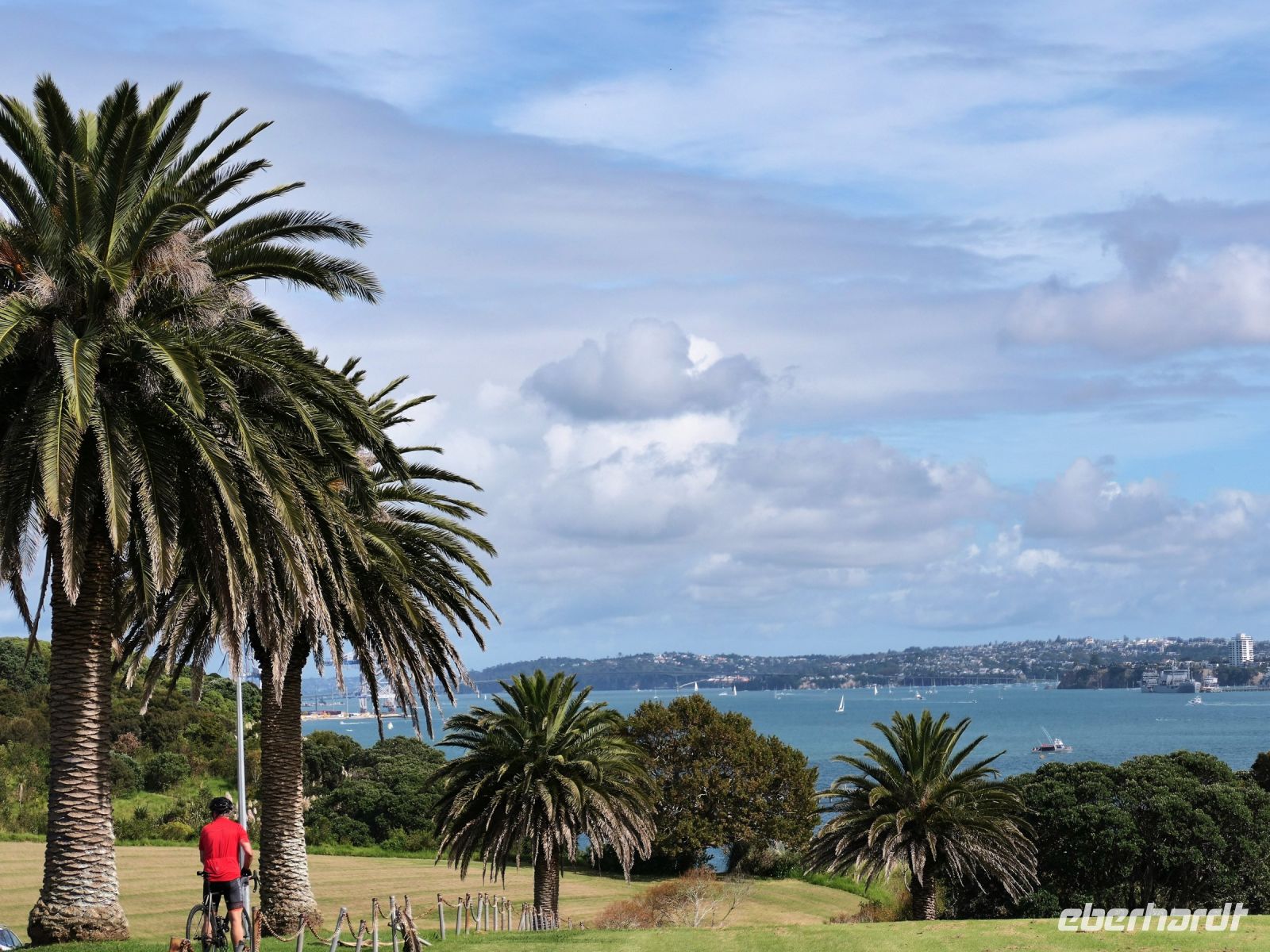 Gefrühstückt wurde, wie in den Motels üblich, individuell in den Zimmern. Die reichlichen Zutaten dafür erhielten wir am Vortag und füllten die Kühlschränke. Auch Eier gehörten dazu, die sorgten bei einigen Gästen für eine Überraschung (denn sie waren nicht vorgekocht). Bei Sonnenschein fuhren wir in nördliche Richtung. An einer Kiwi-Plantage stoppten wir. Die Plantage versteckte sich hinter einer mind. 10 m hohen, akkurat geschnittenen Hecke. Die Kiwi wurde erst Anfang des 20. Jhd. aus China eingeführt. Dort nennt man sie chinesische Stachelbeere. Leider beginnt die Erntesaison erst Ende April, so gab es in den neuseeländischen Supermärkten nur die teure Variante aus Italien. Dafür entdeckten wir eine für uns neue Frucht: die Feijoas waren schon reif. Sie sehen aus wie kleine Avocados, schmeckten aber süß mit einem leicht säuerlichen Touch. Am sonnigen Hahei Beach steckten wir unsere Füße ins Wasser und in den Sand, ließen die Seele baumeln. Die Mittagspause verbrachten wir in Whitianga (mit F) an der Mercury Bay. Am Nachmittag wanderten wir durch den dichten Regenwald auf dem Whenuakite Kauri Walk, den wir nur mit sauberen Schuhen betreten durften. Neuseeland achtet sehr auf den Schutz seiner endemischen Flora. Zurück in Tairua entführte Bernd einige Reisegäste auf den Hausberg Paku Hill, während Annett in der Küche des Ferienhauses werkelte und das anstehende Eberhardt BBQ vorbereitete. Am Abend trafen sich alle zum gemütlichen Beisammensein im Garten. Reiseleiter Bernd brillierte als Grillmeister, Annett war für den Gästeservice und die Bar verantwortlich. Der Abwasch war Dank Spülmaschine schnell erledigt und zu später Stunde sagten wir Gute Nacht!