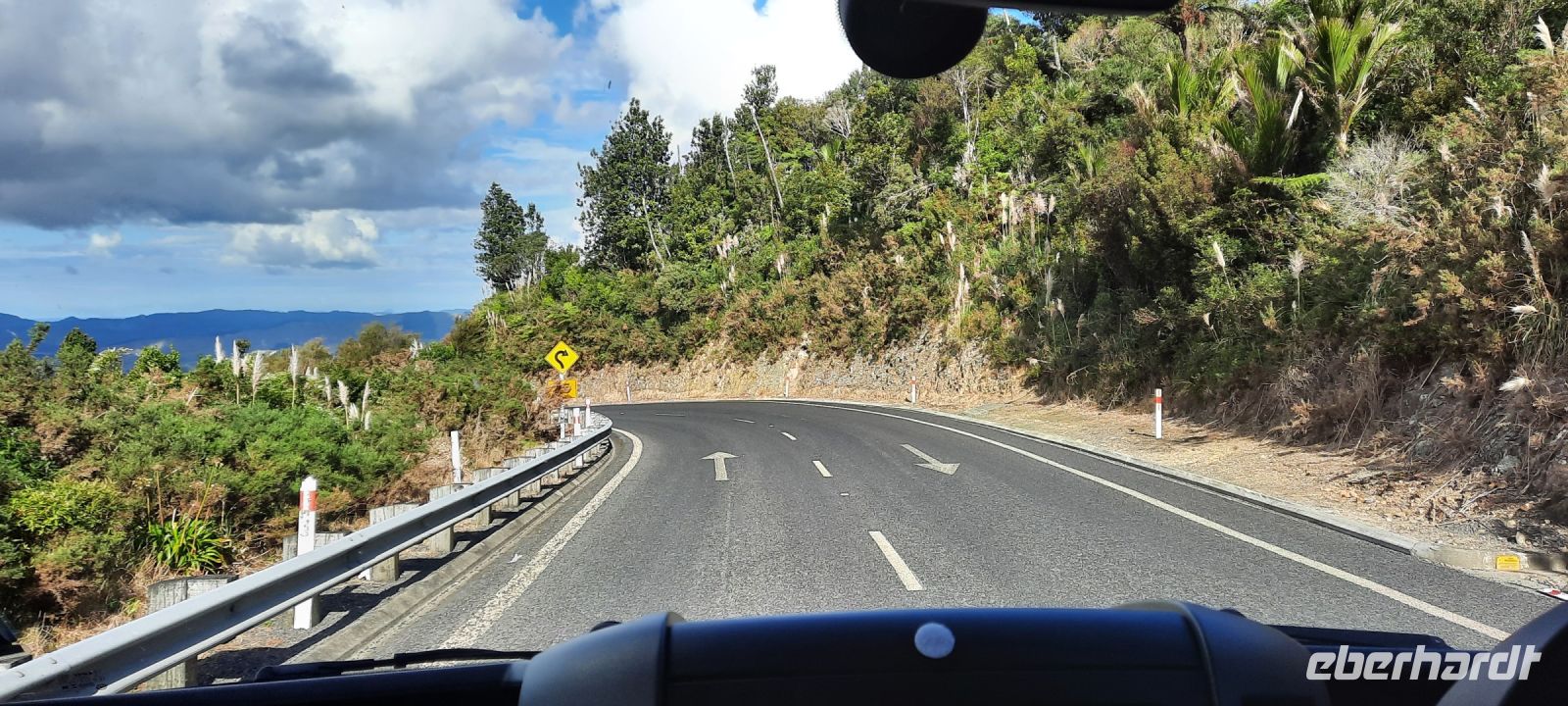 Ursprünglich war die Weiterreise entlang der Ostküste nach Opotiki, Gisborne und Napier geplant. Diese Route war durch den Tropensturm stark beeinträchtigt und nicht befahrbar.
