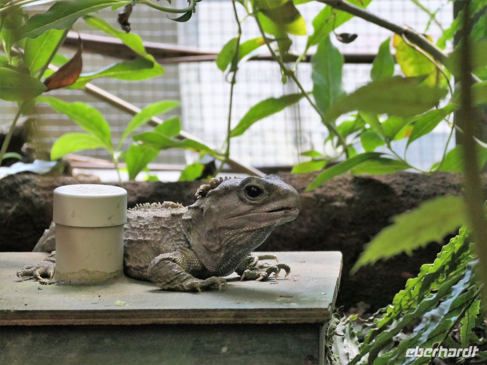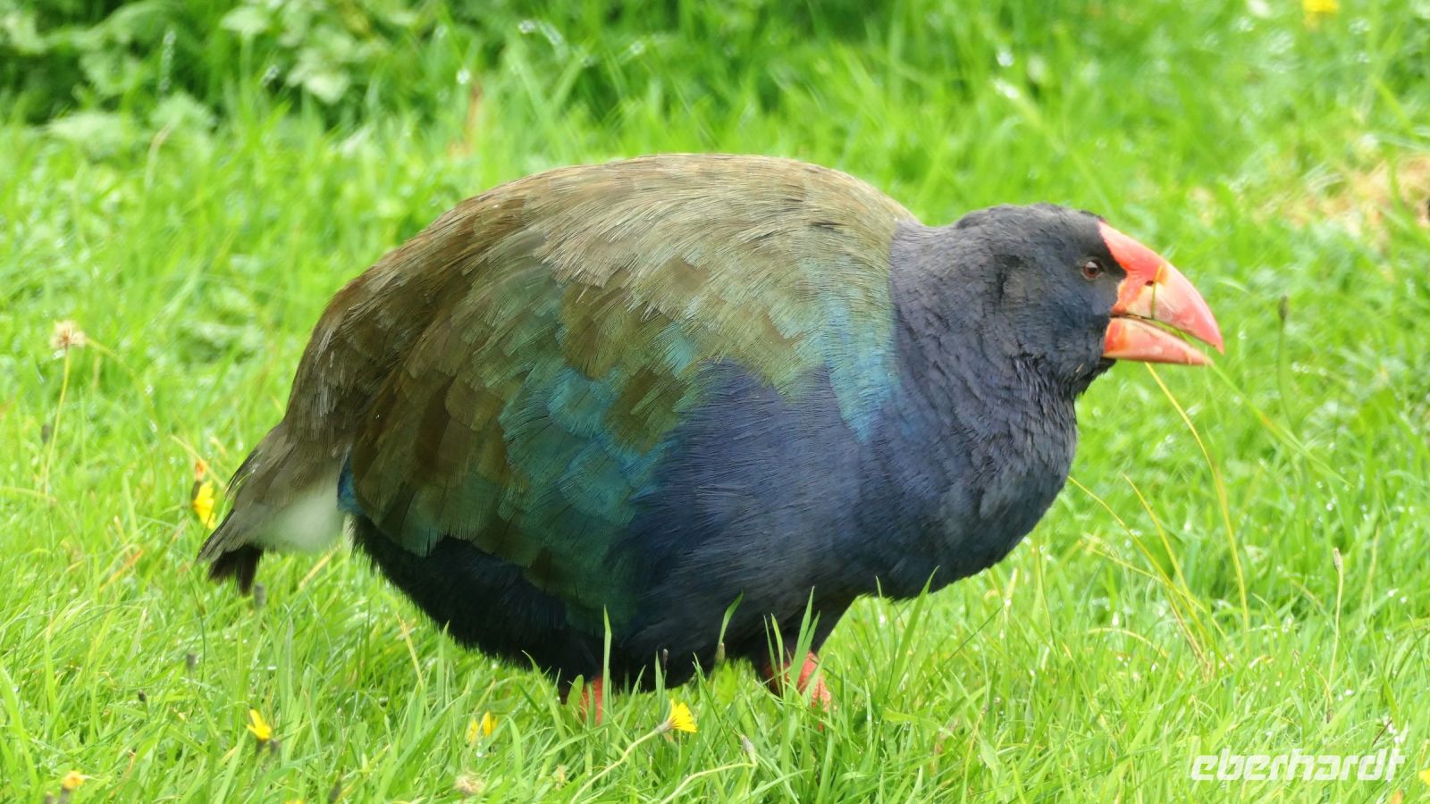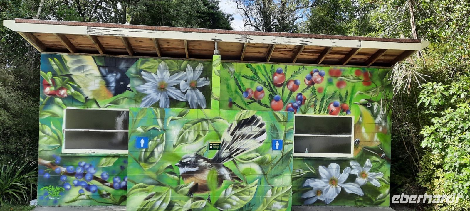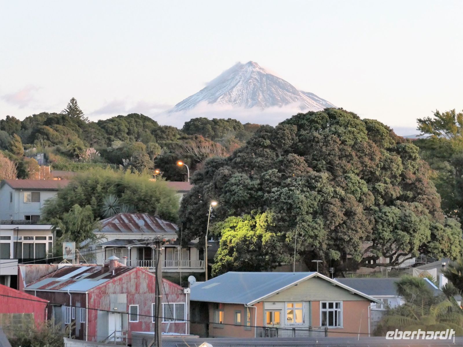 Der neue Tag begann mit Sonnenschein und einen freien Blick auf den Mount Taranaki. Der über 2.500 m hohe Vulkan ist auch als Mount Egmont bekannt. So wolkenfrei und im Sonnenschein präsentiert er sich meist nie, aber wenn Engel reisen! Spontan entschieden wir uns, den kleinen Umweg zum Eingang des Nationalparks (ein Wanderparadies) zu nehmen. Von den Aussichtsplattformen genossen wir einen umwerfenden Blick auf den gewaltigen Berg, der uns noch einige Zeit auf unserer Weiterfahrt verfolgte. In der wunderschönen Parkanlage am See Virginia in Whanganui verbrachten wir eine entspannte Pause. Über die grünen Wiesen stolzierten die lustigen Pukekos (Sumpfhuhn). Die Farben Grün (Landschaft), Blau (Himmel) und Weiß (Wolken) dominierten auf unserer Weiterfahrt, eine faszinierende Landschaft zog vorüber. Am Nachmittag besuchten wir das Pukaha National Wildlife Centre, einem ca. 950 ha geschützten Waldgebiet mit Aufzuchtstation einiger der am stärksten bedrohten Vögel in Neuseeland. Hier begaben wir uns auf einen Spaziergang mit einer Maori, die uns zunächst einen Einblick in die Maori-Holzschnitzkunst gab. Tanemahuta (Gott des Waldes) und Tangaroa (Meeresgott) wachen über diese Region, beide sind Söhne von Rangi (Vater des Himmels) und Papa (Mutter Erde). In der Maori Mythologie tragen auch Vulkane Namen von den Göttern. Spannende Legenden ranken sich um Liebe, Macht und Intrigen. So auch um Taranaki, dessen Liebe zu Pihanga unerfüllt blieb. Im Streit mit Tongario zog er in die Nähe vom heutigen New Plymouth fort. Diese Geschichten gefallen uns doch wesentlich besser als die wissenschaftlich nüchterne, geologische Fassung zur Entstehung dieser Vulkanlandschaften. Später fühlte sich Mr. Kaka (Waldpapagei) durch unsere Audienz etwas gestört, seine Geschäftszeit war schon vorbei. Dafür waren die riesigen Süßwasseraale (NZ Langflossenaal), die bis 100 Jahre alt werden können, umso geselliger. Auch sahen wir einen Tui. Nicht der Ferienflieger ist gemeint, sondern der neuseeländische blau-grüne Vogel mit seinen 2 weißen Bommeln am Hals. Auch der blaugraue Kokako mit dem markanten blauen Lappen unterm Schnabel und der Tieke ließen sich kurz blicken bzw. hören Tie_ke_ke_ke…. Doch nun Vorsicht Kiwi! 2 Exemplare sahen wir im Kiwi Haus, in der Hoffnung später auf Stewart Island Kiwis in freier Natur zu sehen. Ein Tuatara wurde uns ebenfalls vorgestellt, eine endemische Brückenechse, die als lebendes Fossil gilt. Tuatara heißt auch ein Bier einer Brauerei bei Wellington. Das Glas der Bierflaschen fasst sich an wie die Schuppen der Echse. Der Geschmack ist interessant, für mich eher fossil. Am frühen Abend erreichten wir unser typisches Motel in Masterton.