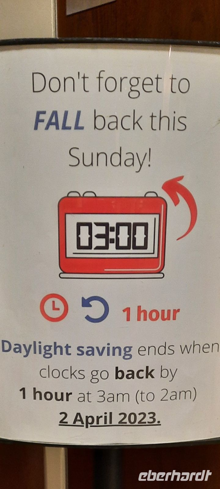 PS: In der Nacht zum Sonntag wurden die Uhren in Deutschland 1 h vorgestellt, also hatten wir nur noch 11 h Vorsprung in Neuseeland.