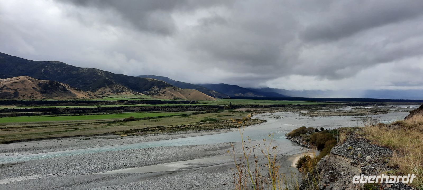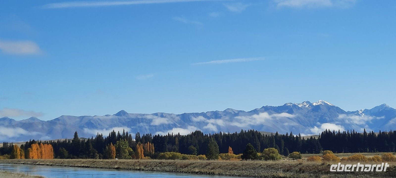 Nach einem super Frühstück in unseren Suiten verließen wir Murchison. Auf unserem Weg hielten wir am Maruia Wasserfall, den am sonnigen Morgen ein Regenbogen überspannte. Entlang des Flusslaufes veränderte sich die Landschaft. Wir durchfuhren Buchenwälder mit riesigen Bäumen und über den ca. 900 m hohen Lewis Pass, umringt von den über 1.500 m hohen Bergketten der Neuseeländischen Alpen. Auf einem Rundwanderweg entdeckten wir die Flora dieser alpinen Landschaft, durchzogen von kleinen Bächen und Seen, in denen sich die mächtigen Berge spiegelten. Das Panorama mit den majestetischen Berge war unbeschreiblich. Von weiten sahen wir sogar die schneebedeckten Gipfel (über 2.300 m) des Nelson Lake Nationalparks – ein besonderer Genuss für Augen und Seele. Eine weitere Auszeit gönnten wir uns in Hanmer Springs mit Blick über die Waiau Schlucht. Ein gutes Stück weiter überquerten wir den türkisblauen Raikaia River. Die letzten Kilometer zu unserem heutigen Ziel lagen vor uns: Methven, der Wintersportort in Neuseeland. Rund um den Hausberg Mount Hutt befindet sich ein beliebtes Skigebiet.Im Ski Time Hotel bezogen wir unsere Zimmer. Das Paket mit vergessenen Dingen und mehr aus Wellington nahmen die Besitzer glücklich in Empfang. Am Abend trafen wir uns im gemütlichen Restaurant, wo das Kaminfeuer brasselte. Die dezente Osterdeko gab uns den leisen Hinweis, dass heute Karfreitag ist. A la carte speisten wir vorzüglich, nicht nur Fisch.