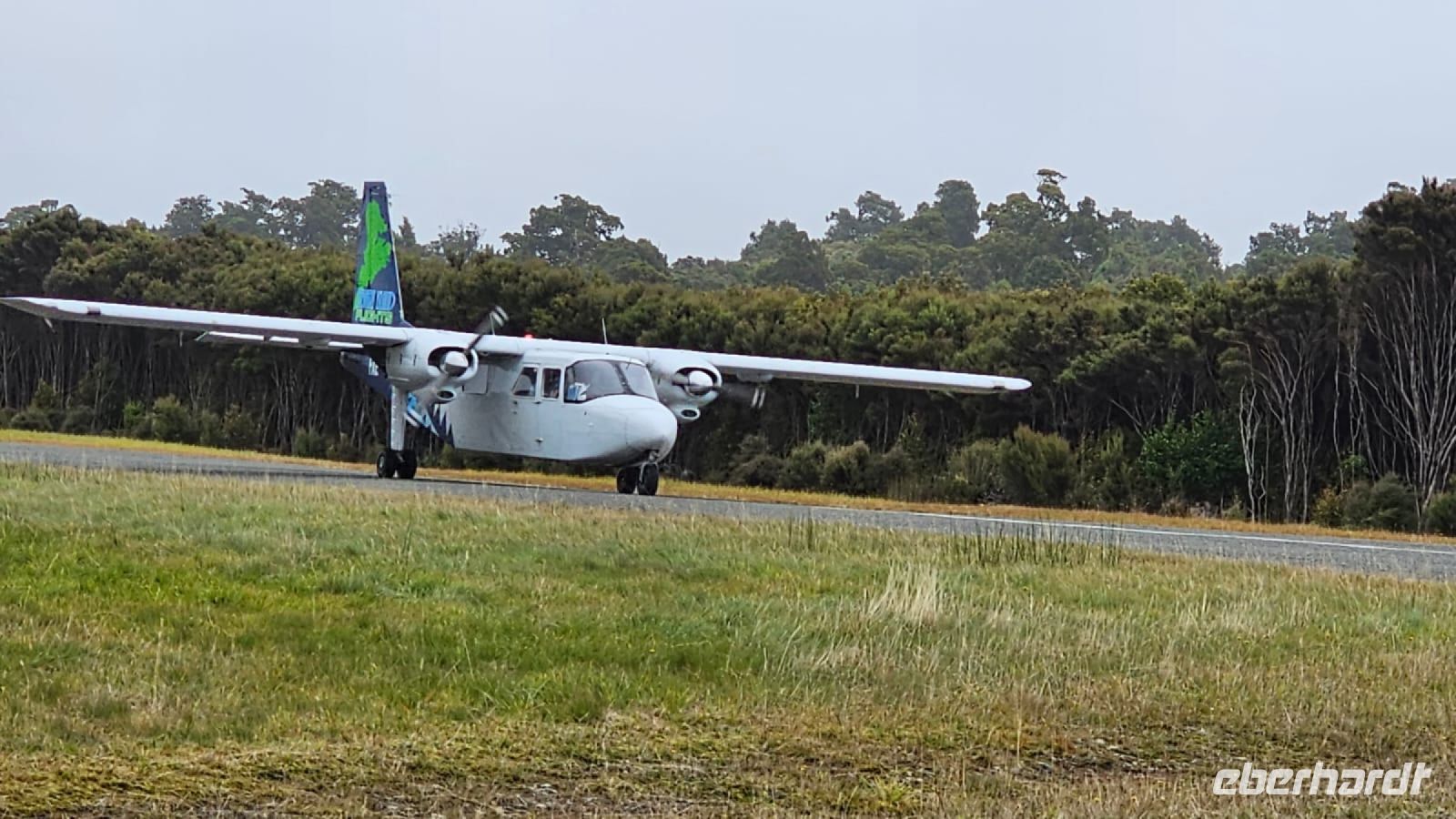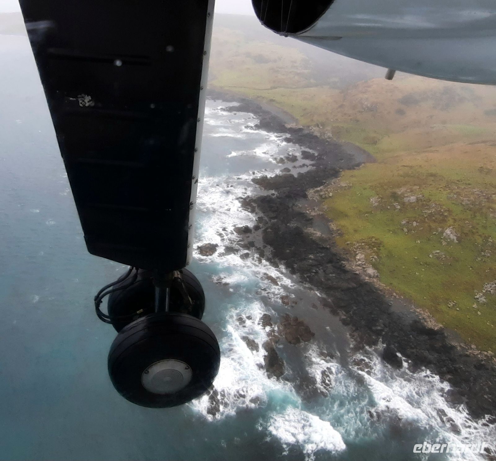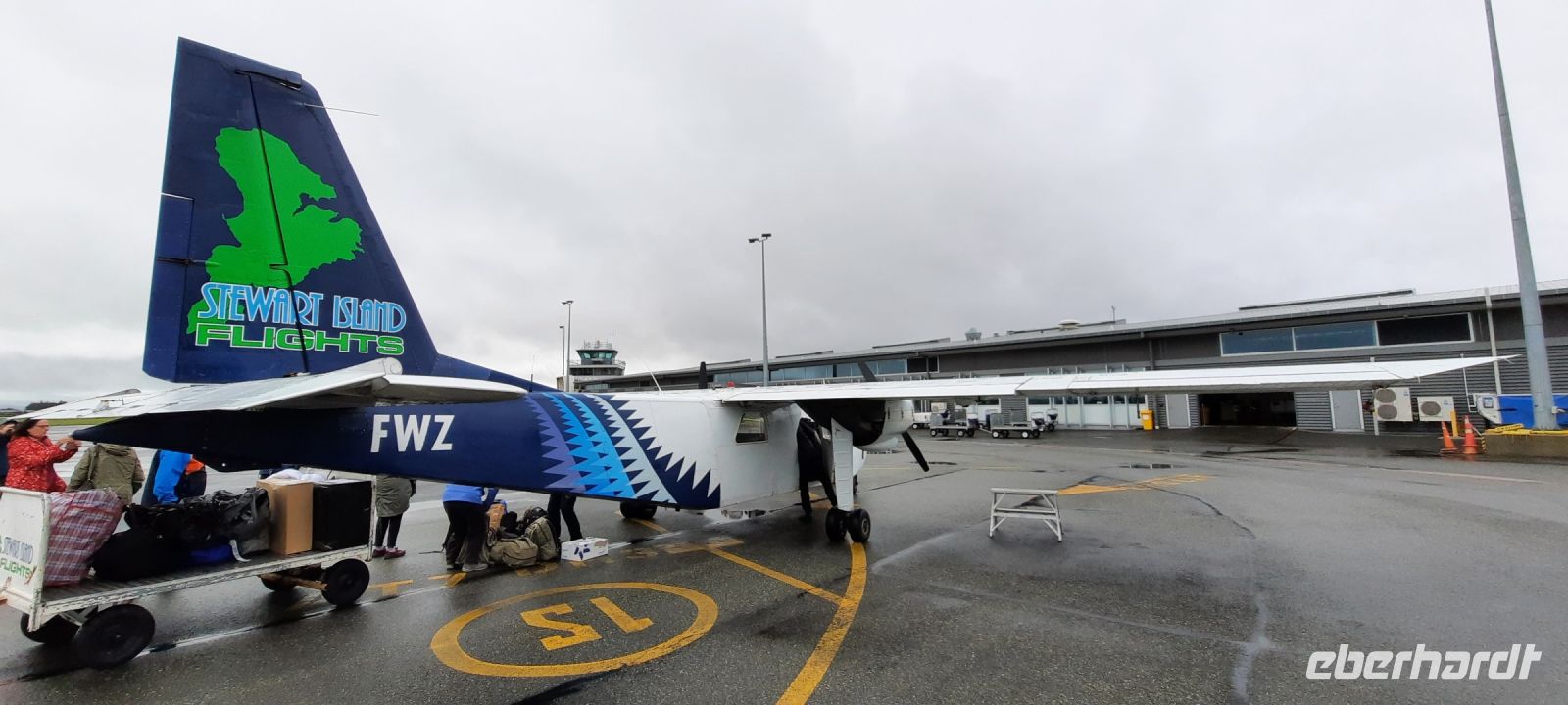 Wir durchquerten Balclutha, mit Beinamen The Big River Town. Kein Wunder, denn der wasserreichste Fluss Neuseelands, der Clutha fließt durch die Stadt. Später truckten wir an der stürmisch-nebligen Pazifikküste entlang. Auf einer steilen Langzunge unternahmen wir unseren Osterspaziergang zum Nugget Point. Vom Leuchtturm blickte wir auf die schroffe, wildromantische Küste. Im beschaulichen Owaka war die Welt noch in bester Ordnung: Zutritt zum kleinen Supermarkt nur mit sauberen Schuhen! Was uns in Neuseeland, selbst den winzigsten Ortschaften immer wieder auffiel: die Sauberkeit der öffentlichen Anlagen wie kostenfreie Toiletten, coole Spielplätze und Parks sowie Elektrotankstellen. In Invercargill, dem fast südlichsten Ende der Südinsel parkten wir unser Whaka (mit den Koffern) am Flughafen und reisten mit leichtem Gepäck weiter. In 2 Kleinflugzeugen flogen wir ca. 20 min (ca. 35 km) nach Stewart Island und landeten sicher auf dem kleinen Airstrip in Oban. Stewart Island ist die drittgrößte Insel Neuseelands und ein wahres Naturparadies. Ca. 85 % der Insel stehen unter besonderen Schutz des Rakiura Nationalparks. Oban ist der einzige, richtig bewohnte Ort auf den ca. 1.680 km². Das Bay Motel mit Blick auf den kleinen Hafen der Halbmond Bucht war unser Zuhause für die nächsten beiden Nächte. Am frühen Abend bummelten wir über die „Mainroad“ zum Hafen und verschafften uns einen Überblick über das verschlafene Oban: ein paar kleine Cafès und Shops, ein gut bestückter Supermarkt, ein Hotel mit Pub, ein Museum und wir.