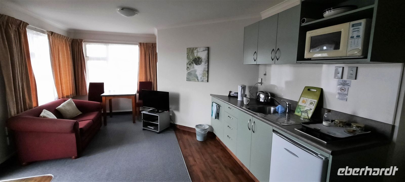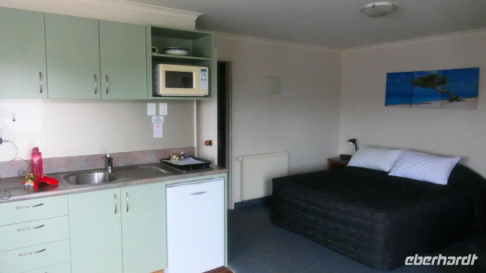 Der erste Langstreckenflug (ca. 12 h) führte uns nach Singapore, wo wir verspätet landeten. Uhren schnell 7 Stunden vorgestellt, nun war es bereits morgens 8 Uhr, und zügiger Marsch zum nächsten Gate für den Weiterflug (weitere 10 h) nach Auckland. Das Gate befand sich glücklicherweise im gleichen Terminal. Während des langen Fluges kreisten die Gedanken: Gräbt man sich in Frankfurt durch die Erdkugel sind es nur knapp 13.000 km und man kommt im eiskalten Pazifik an, ca. 1.000 km vor der neuseeländischen Küste. Da ist Fliegen doch bequemer! Um Mitternacht landeten wir in Auckland, die Uhren um weitere 5 h vorgestellt. Alle Koffer hatten es auch geschafft. Die Einreise verlief problemlos, nur ich musste zur intensiveren Kontrolle. Die deklarierten Wanderschuhe hatte ich aber vorsorglich im Rucksack verstaut, so dass mir das Öffnen meines Koffer erspart blieb. Von Bernd, unserem Reiseleiter, wurden wir herzlich empfangen. Mit unserem Mercedes Sprinter ging es anschließend flott durch die leeren Straßen zu unserem Hotel, Check in und Gute Nacht – es waren lange Anreisetage.