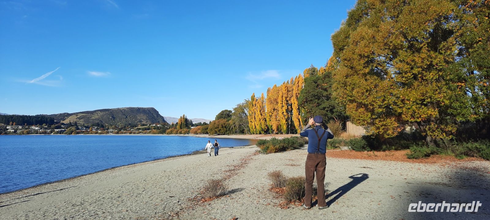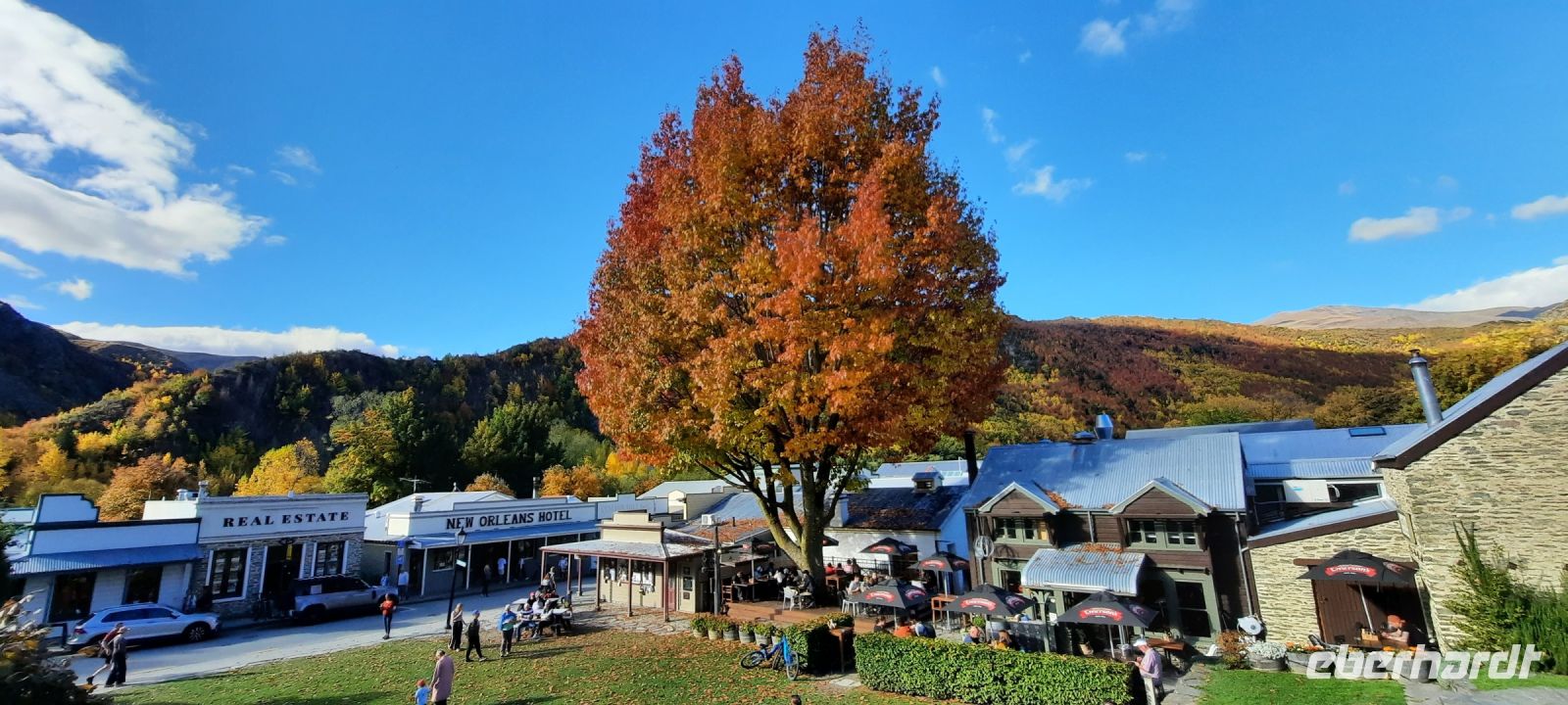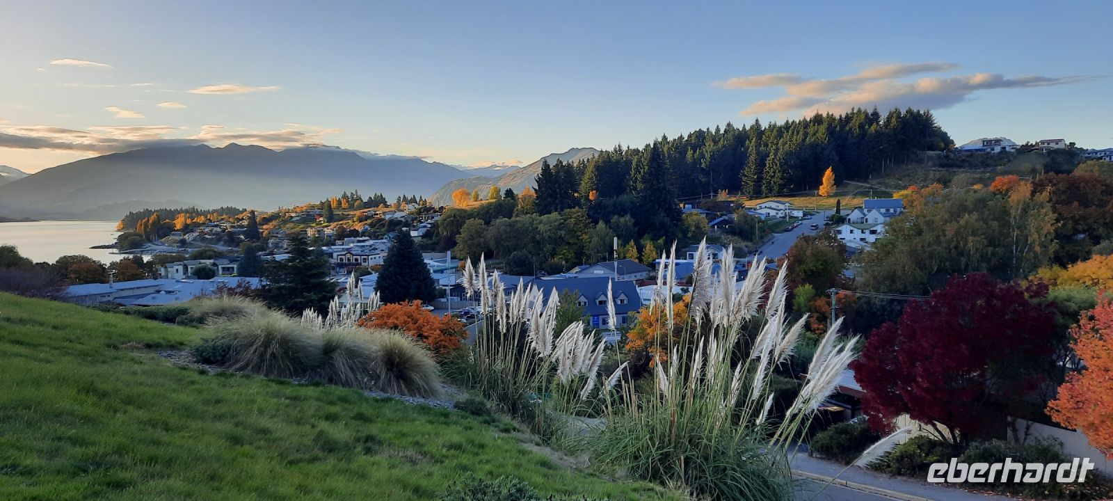 Nach zwei erlebnisreichen Tagen verabschiedeten wir uns von Te Anau. Von Sonnenschein begleitet (wenn Engel reisen) fuhren wir ins Innere der Südinsel zurück. Unseren ersten Boxenstopp legten wir in Kingston auf südlichsten Zipfel des Lake Wakapitu ein. Der kleine Bahnhof versprüht noch den Glanz vergangener Zeit. Auf der Panoramastraße entlang des malerischen Ostufers gelangten wir ins belebte und sonnige Queenstown, dem neuseelänischen St. Moritz. Hier verbrachten wir einen längeren Aufenthalt und gleichzeitig unsere Mittagspause. Später trackten wir zur alten Goldgräberstadt Arrowtown, golden war auch das Wetter hier. Die kurvige Straße über die Crowne Range bot Gelegenheit für mehrere Fotostopps, so schön war es hier. Ein Halt im nostalgischen Cardrona Valley war ebenfalls ein Muss. Am Ende des Tages waren wir uns einig: ein wunderbarer, farbenprächtiger Spätsommertag = Indian Summer in Neuseeland. Noch rechtzeitig konnten wir den faszinierenden Sonnenuntergang in Wanaka am gleichnamigen See erleben. In der Stadt herrschte auch am Abend reges Treiben, welches jeder auf seine Weise erlebte.