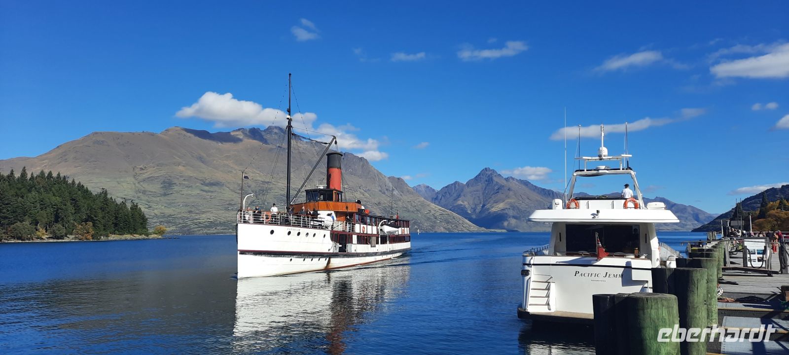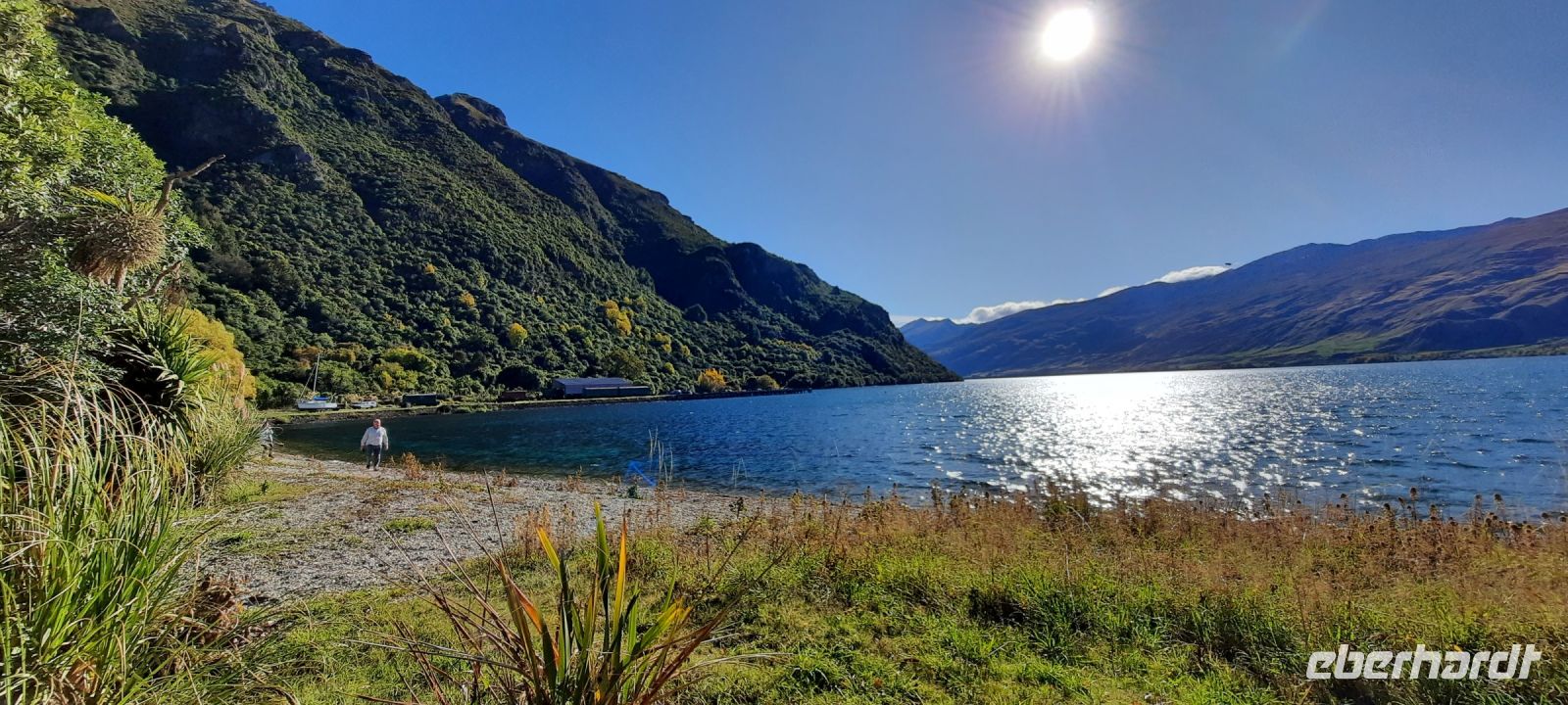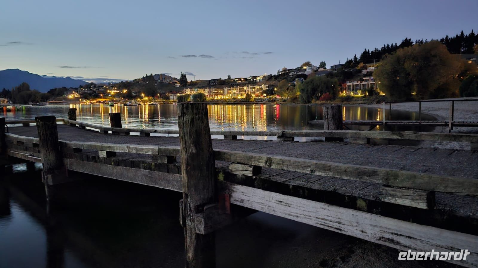 Nach zwei erlebnisreichen Tagen verabschiedeten wir uns von Te Anau. Von Sonnenschein begleitet (wenn Engel reisen) fuhren wir ins Innere der Südinsel zurück. Unseren ersten Boxenstopp legten wir in Kingston auf südlichsten Zipfel des Lake Wakapitu ein. Der kleine Bahnhof versprüht noch den Glanz vergangener Zeit. Auf der Panoramastraße entlang des malerischen Ostufers gelangten wir ins belebte und sonnige Queenstown, dem neuseelänischen St. Moritz. Hier verbrachten wir einen längeren Aufenthalt und gleichzeitig unsere Mittagspause. Später trackten wir zur alten Goldgräberstadt Arrowtown, golden war auch das Wetter hier. Die kurvige Straße über die Crowne Range bot Gelegenheit für mehrere Fotostopps, so schön war es hier. Ein Halt im nostalgischen Cardrona Valley war ebenfalls ein Muss. Am Ende des Tages waren wir uns einig: ein wunderbarer, farbenprächtiger Spätsommertag = Indian Summer in Neuseeland. Noch rechtzeitig konnten wir den faszinierenden Sonnenuntergang in Wanaka am gleichnamigen See erleben. In der Stadt herrschte auch am Abend reges Treiben, welches jeder auf seine Weise erlebte.