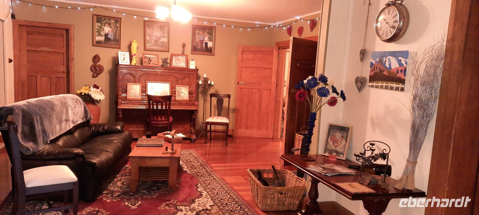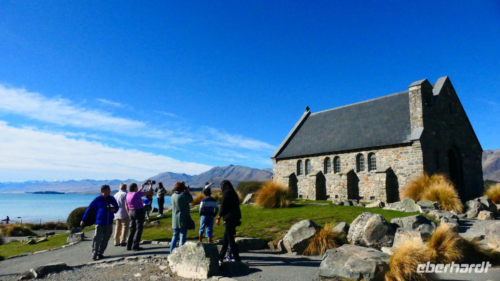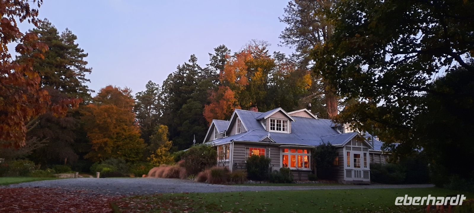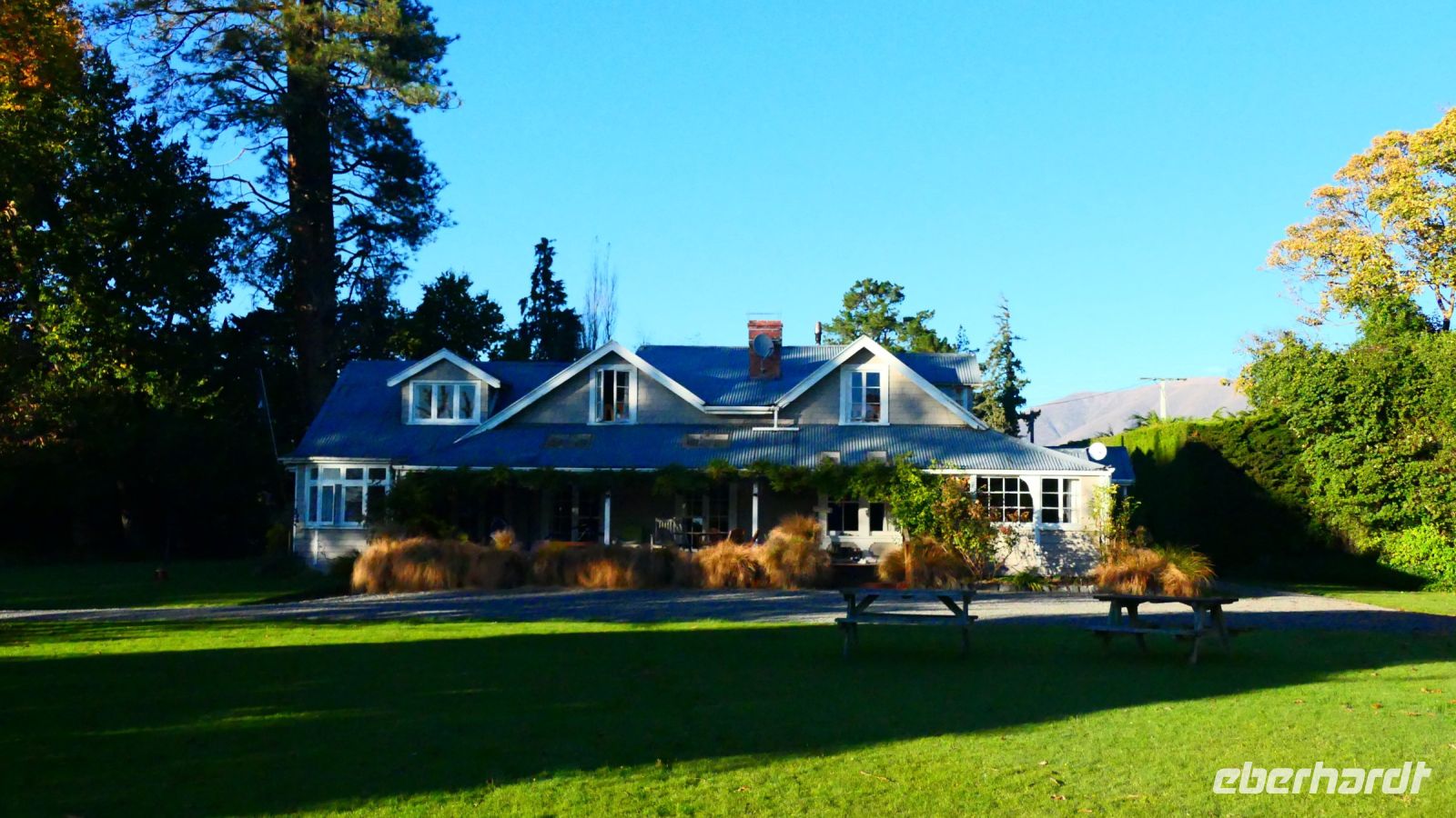 Über den, mit Wolken behangenen Lindis Pass fuhren wir gen Norden durch die Canterbury Region. Nach einem Boxenstopp in Omarama ein weiteres Fotomotiv: die Clay Cliffs. Durch die Mackenzie Hochebene, dem Merino Country gelangten wir an den Mt. Cook Nationalpark zum Lake Pukaki, der durch Kanäle mit dem Gletschersee Lake Tekapo verbunden ist. Immer wieder fantastische Blicke auf die alpine Landschaft mit dem schneebedeckten Mount Cook, dem höchsten Berg Neuseelands (3.724 m) erhaschen wir. Unsere Mittagspause verbrachten wir auf dem über 1000 m hohen Mount John mit genialem Panoramablick auf die alpine Bergwelt und den Lake Tekapo. Unten am See war die Kirche des guten Hirten ein Pflichtbesuch. Kurze Zeit später, bei Fairlie, wurden wir von Elsie, Dog und Oliver empfangen. Auf ihrer ca. 10.000 Hektar großen, privaten Farm mit 3.000 Schafen und 200 Kühen erhielten wir einen authentischen Einblick in das normale Farmleben. Wir erfuhren, dass die Schafe hier nur 1x im Jahr geschoren werden, von 4.500 Lämmern ca. 4.000 auf dem Grill landen und die aufdringlichen Wallabys ein echtes Problem sind. Gummistiefel gehören zur Alltagsbekleidung und zwar nur die, mit dem roten Schaft! Selbst der ca. 2jährige Oliver trägt sie und nimmt das Gatter für die Jungschafe wie selbstverständlich in Besitz. Zudem hat er dabei den größten, frei liegenden Lauftstall. Dabei unterstützte er tatkräftig die Arbeit der Hirtehunde. Nach diesem wirklich realistischen Besuch mussten wir weiter, denn wir wurden für unsere vorletzte Nacht erwartet. Im beschaulichen Albury trennten sich unsere Wege. Während Bernd und ein Teil der Gruppe auf eine andere Farm weiterzog, wurden die anderen mit Annett von ihrer Gastfamilie (Julie mit Ehemann und reitbegeisterter Tochter Briannah) herzlich begrüßt. Das Opawa Homestead ist eine der ältesten Farmen in diesem Gebiet und bietet Touristen ganz individuelle Übernachtungen in familiärer Atmosphäre. Zugleich ist das gastfreundliche Opawa auch eine beliebte Eventlocation für die Locals. Elsie und Dog haben hier geheiratet. Wir erkundeten das idyllische Gelände und übten uns im Freiluft-Dame. Später saßen wir am Kamin, bei Wein und Bier, gemütlich beisammen und stöberten in alten Fotoalben. Das besondere Ambiente gab uns das Gefühl, zu Hause zu sein. Unsere Gastgeberin Julie hatte vorzüglich gekocht. Gemeinsam mit ihrer Familie speisten wir zu Abend, bevor wir uns Gute Nacht sagten. Jedes Zimmer war individuell und liebevoll gestaltet, mit einer persönlichen Note, eingerichtet. Ich bezog das kuschlige Zimmer des ehemaligen Hauptdieners, dessen Tochter damals das benachbarte, geräumige Zimmer bewohnte. Rückschlüsse auf die Geschichte sind reine Spekulation.