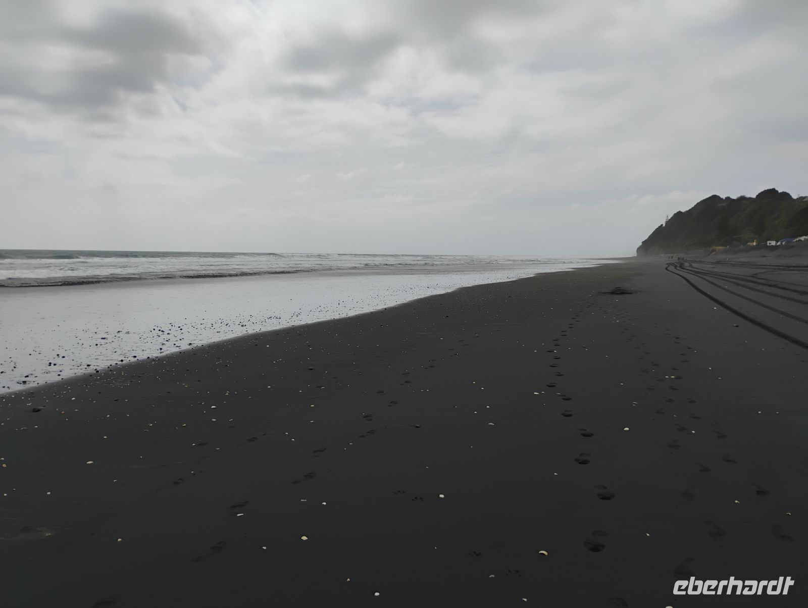Danach führte uns die Fahrt weiter Richtung Westen. An einem Strand an der Westküste machten wir noch einen kurzen Stopp – frische Meeresluft, dunkler Sand und eine ganz andere Stimmung als an der Ostküste.