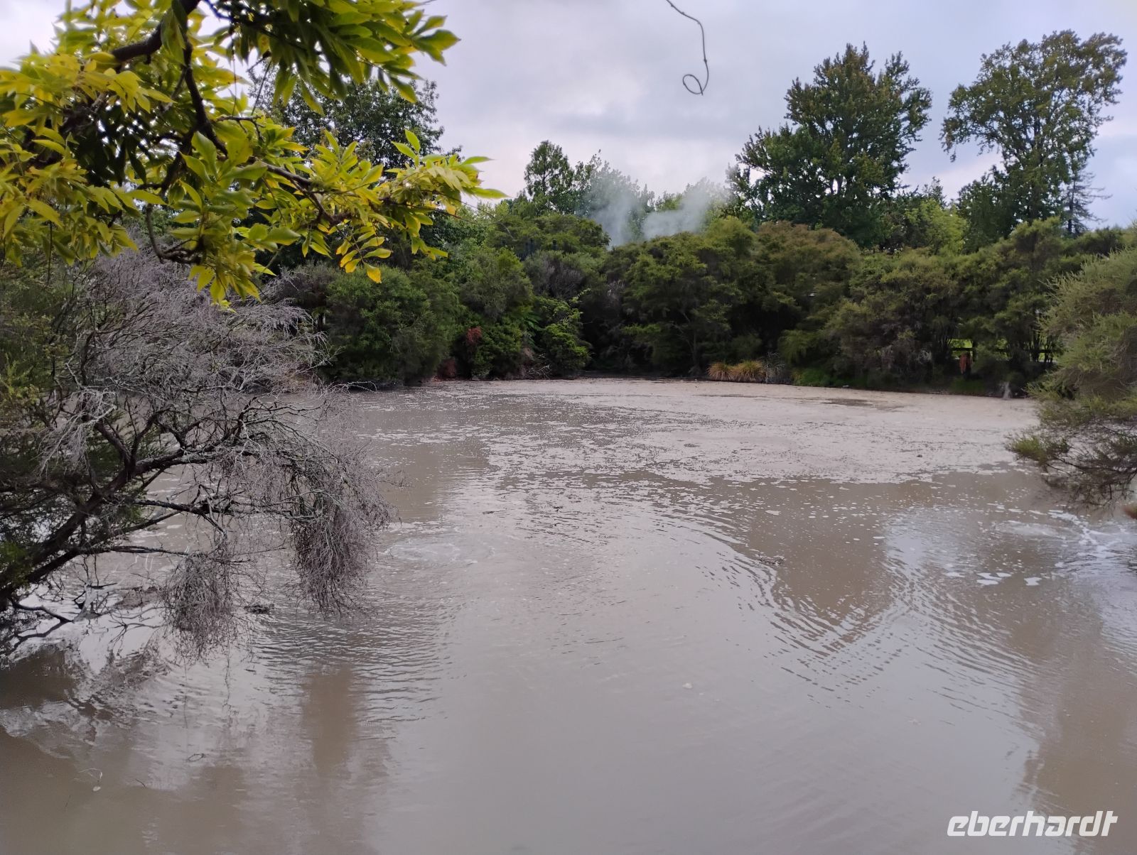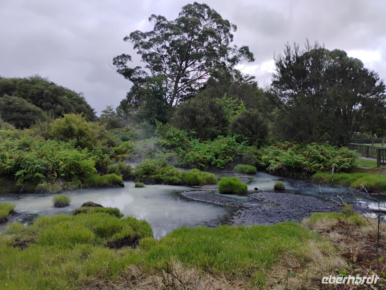 Da wir noch etwas mehr von der geologischen Aktivität sehen wollten, wurde die Abfahrt vorverlegt. Bereits kurz darauf spazierten wir durch den gepflegten Kuirau Park. Zwischen Dampfschwaden, blubbernden Schlammlöchern und schwefelhaltigen Becken wurde deutlich, wie sehr diese Stadt von Geothermie geprägt ist.