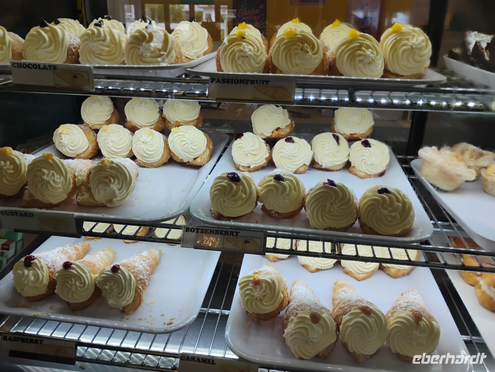 Die Mittagspause verbringen wir bei Viv's Kitchen, einem Café im amerikanischen Stil mit Sandwiches, Pies und als Spezialität den beliebten Cream Rolls.
