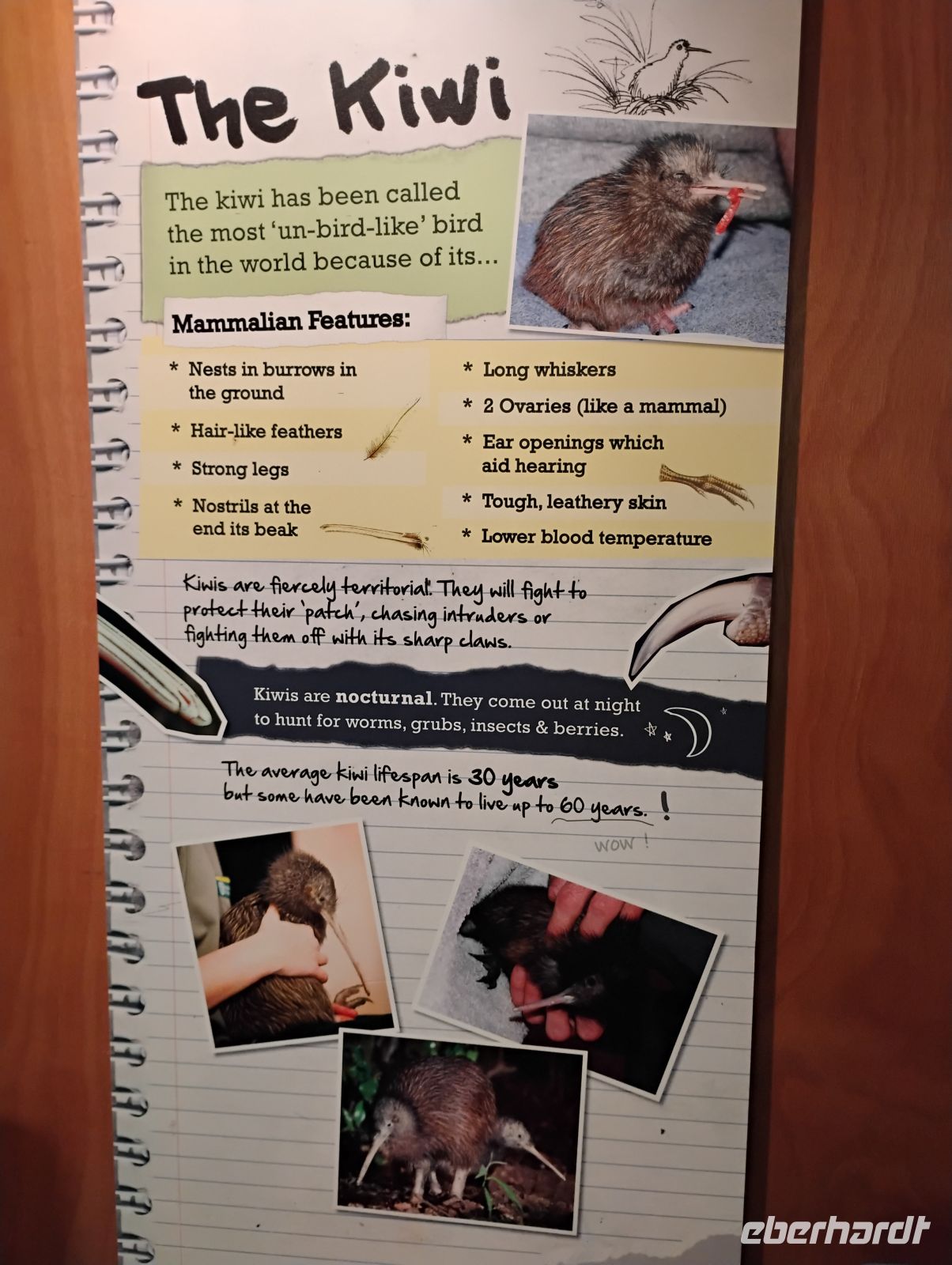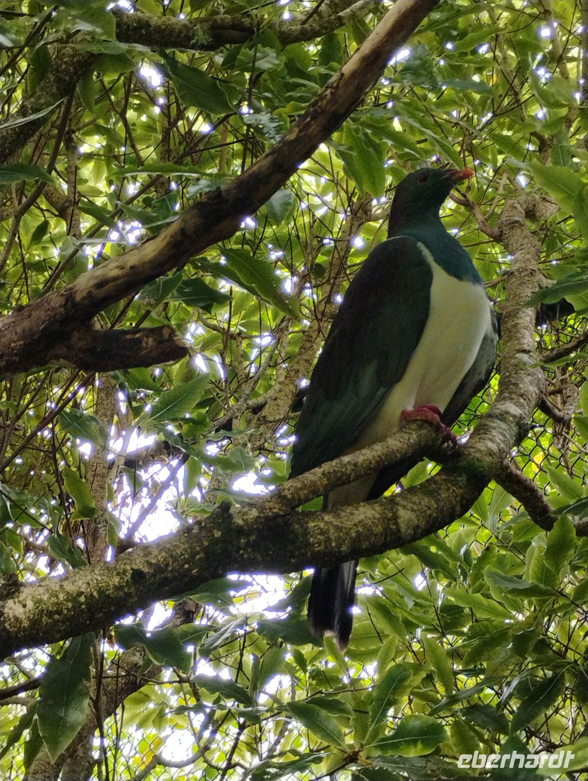 Wir beobachten unter anderem einen Kiwi sowie die neuseeländische Waldtaube. Der Tuatara bleibt leider verborgen. Anschließend besuchen wir noch das Visitor Centre.