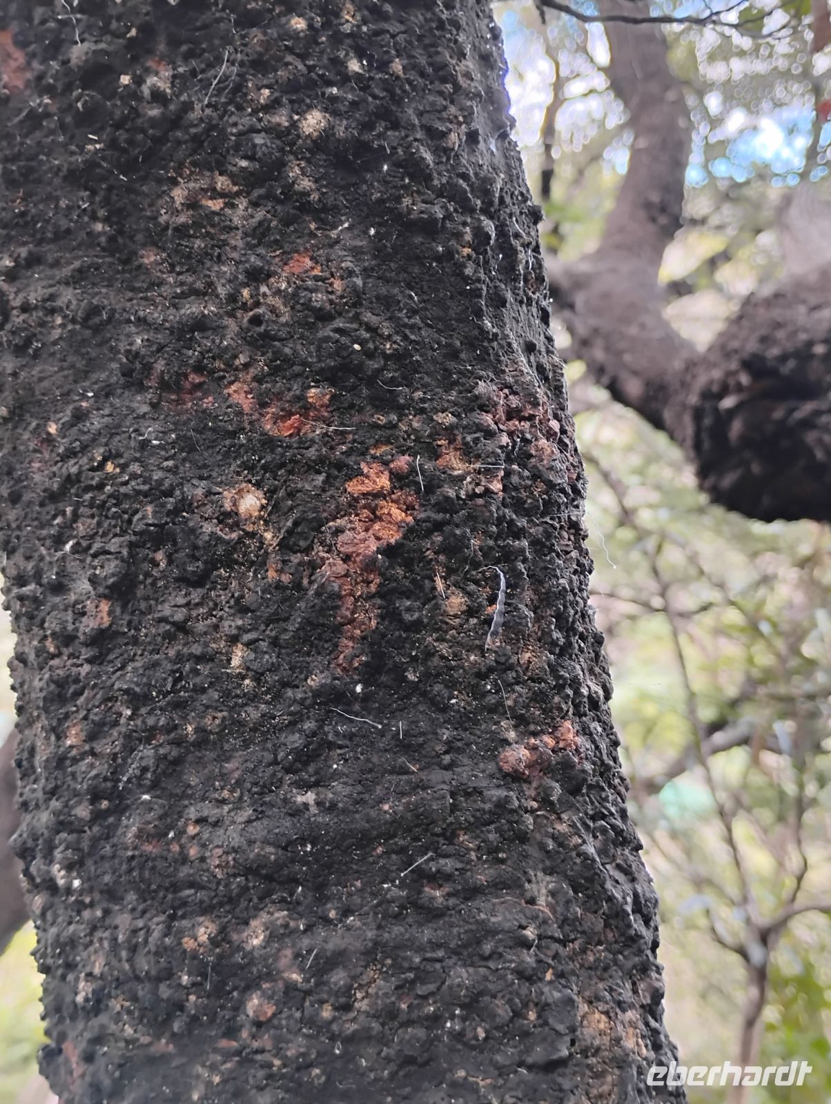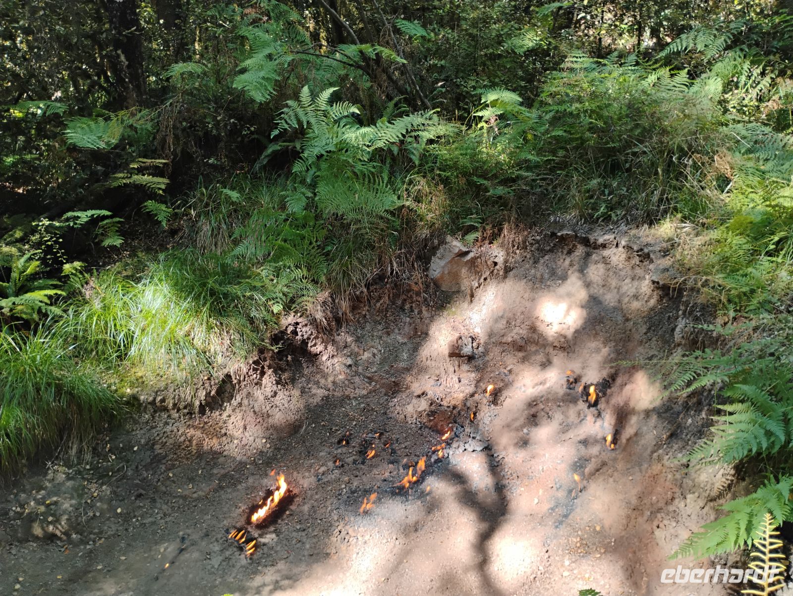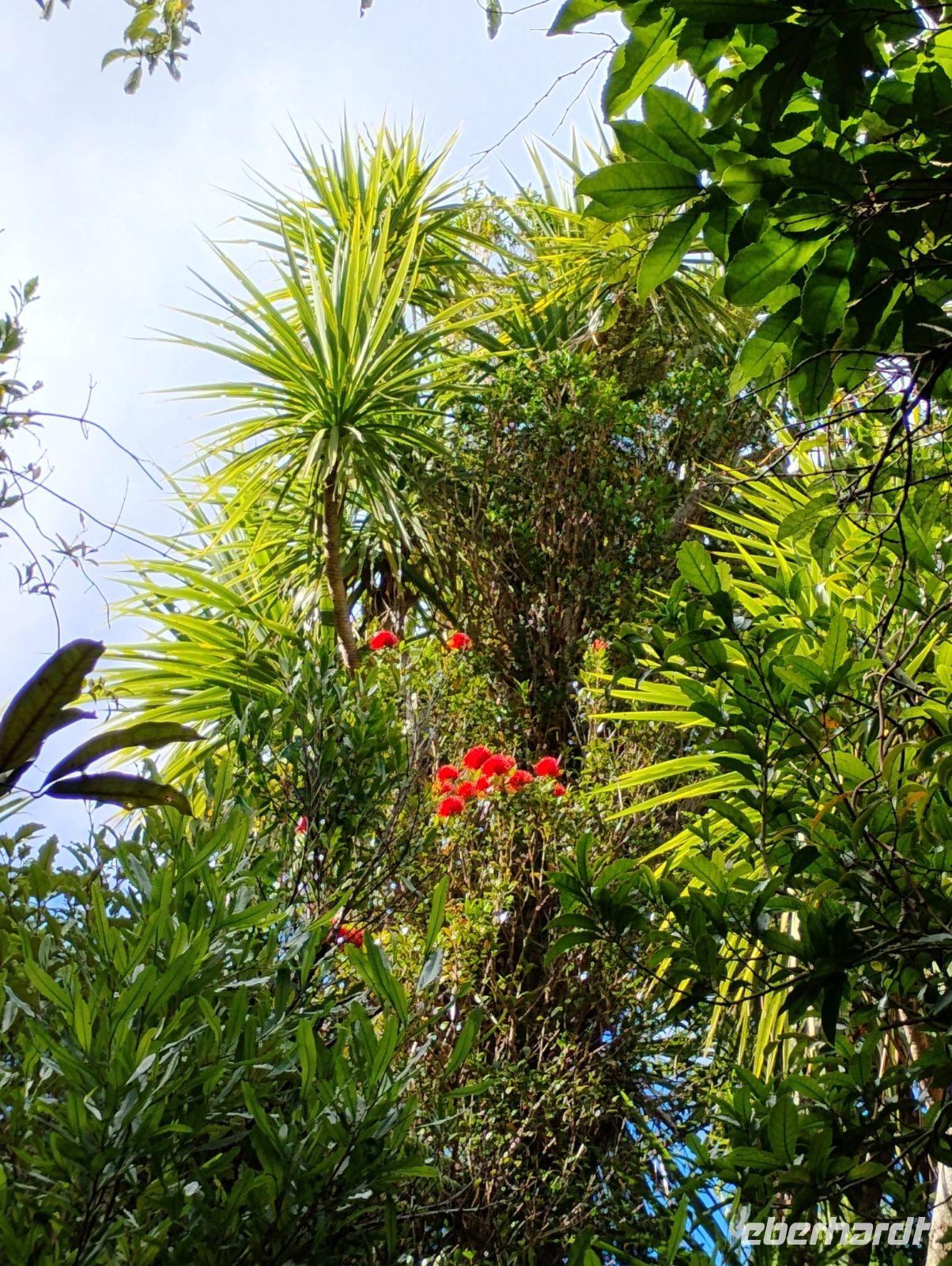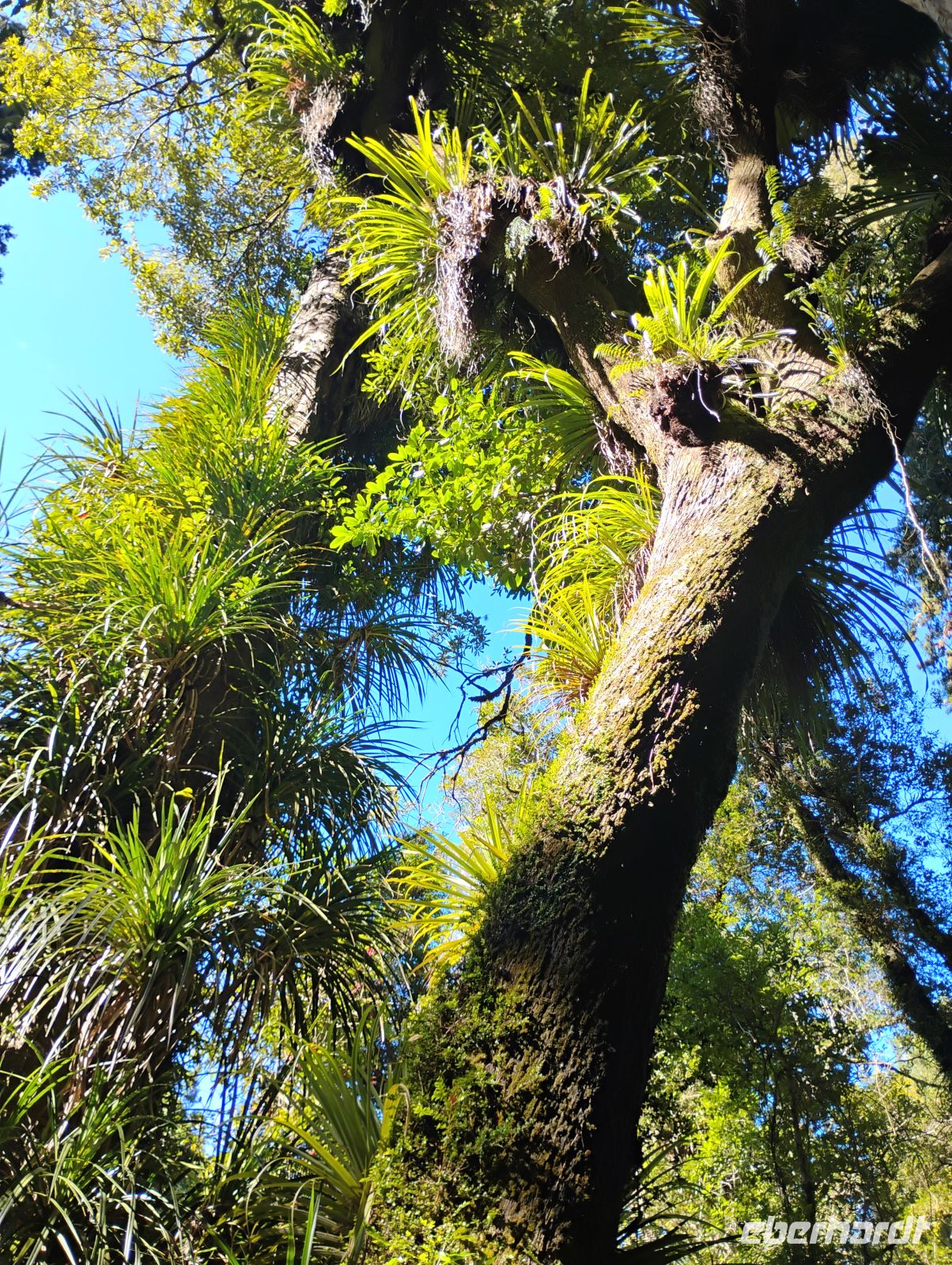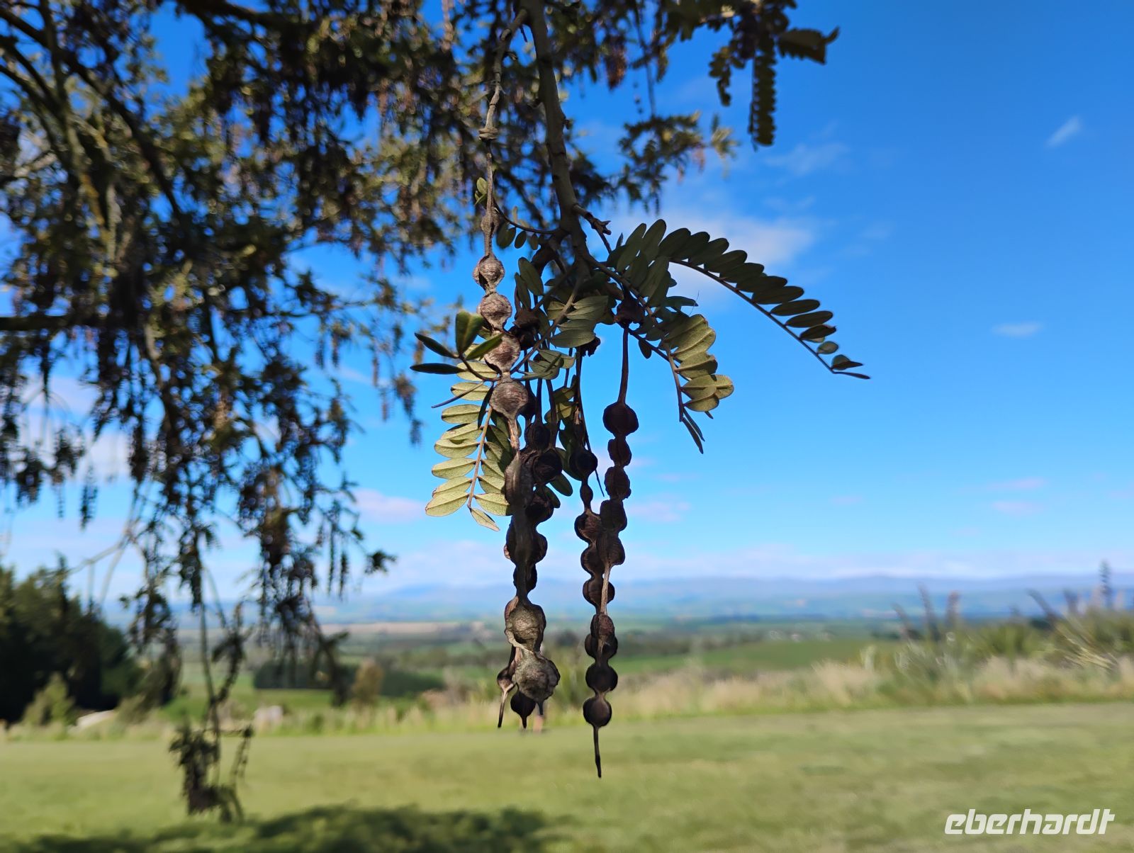 Begleitet wurden wir dabei von Sonja, Michaels Freundin, die uns einige Tage auf der Reise begleitet. Sie erklärte uns Spannendes zur heimischen Vegetation. An den neuseeländischen Buchen entdeckten wir die feinen Wachsfäden der Schildläuse, an deren Enden sich Honigtau bildet – eine wichtige Nahrungsquelle für einheimische Insekten, leider aber auch für eingeschleppte europäische Wespen. Manche Stämme wirkten schwarz gefärbt: Dort wächst Rußtaupilz auf dem zuckerreichen Honigtau. Auch eine Rātā konnten wir sehen, die oft hoch oben in einem anderen Baum keimt und mit der Zeit kräftige Wurzeln nach unten bildet, bis sie selbst zum dominierenden Baum wird. Daneben ragte eine Neuseeländische Keulenlilie (Cabbage Tree) in den Himmel – zwei ganz unterschiedliche, aber typische Vertreter dieser Landschaft.