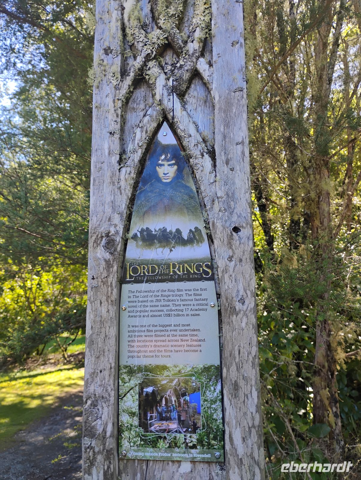 Im Kaitoke Regional Park besuchen wir die frühere Film-Location von „Rivendell“ (Bruchtal). Für die Dreharbeiten wurden hier temporäre Kulissen errichtet; heute erinnert vor allem ein schlichter Rahmen an den Standort des Elben-Tores. Die eigentliche Naturkulisse – dichter, ursprünglicher Wald – ist geblieben. Ohne Filmset wirkt der Ort wieder wie ein ganz normaler Regionalpark, doch mit etwas Fantasie lässt sich die Atmosphäre von Mittelerde noch erahnen.