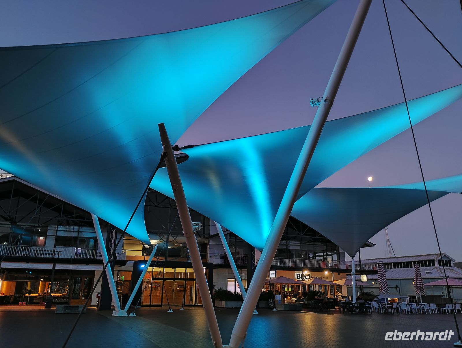 Als wir das Abendessen auf der verglasten Terrasse einnahmen, schlug das Wetter plötzlich um: starker Wind zog auf, und wir konnten beobachten, wie der Sturm die Bucht erfasste. Dabei machten wir uns schon Gedanken über die morgige Bootsfahrt und hoffen, dass sich das Wetter bis dahin beruhigen würde – auch wenn die Vorhersage eher anders aussieht.