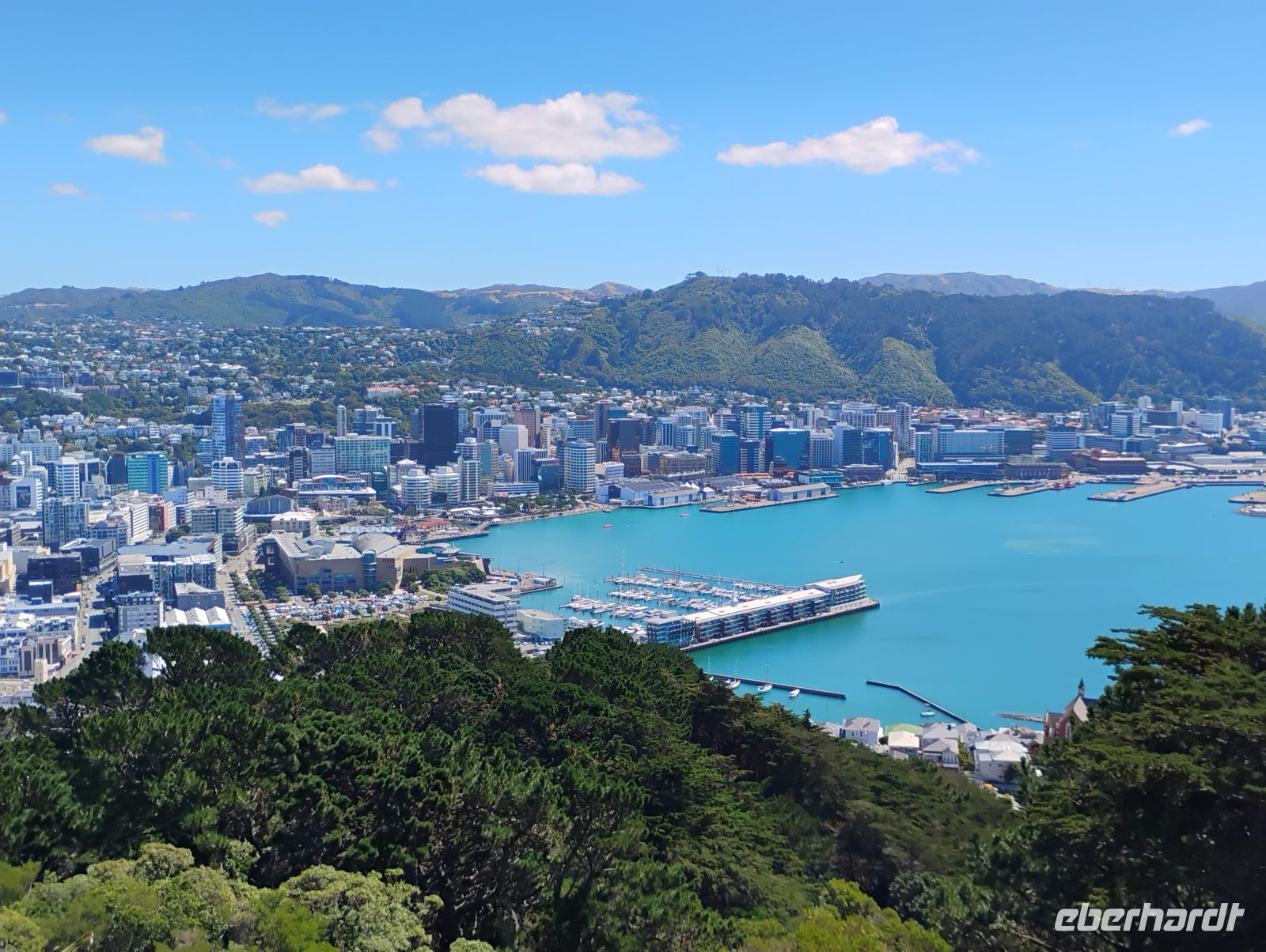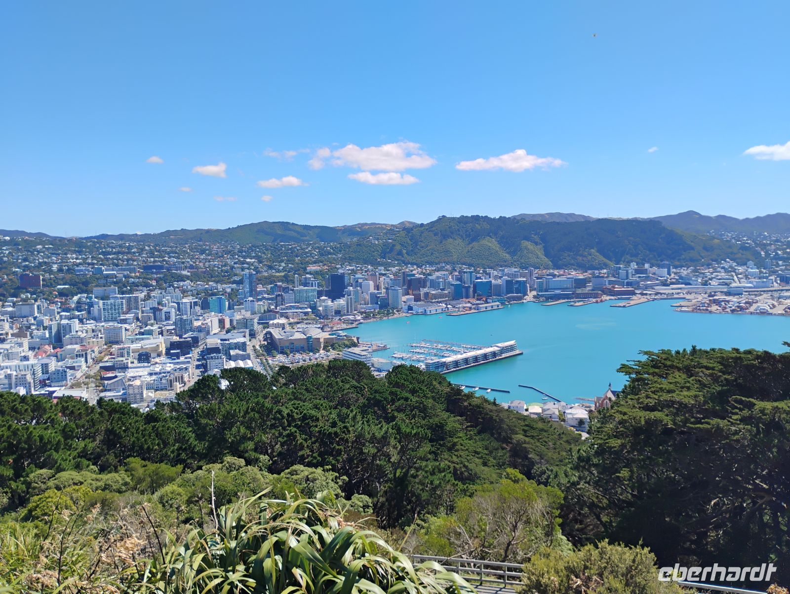 Nach dem Hotel-Check-in bleibt Zeit zur freien Verfügung. Einige besuchen das Nationalmuseum Museum of New Zealand Te Papa Tongarewa, andere gehen bummeln, spazieren am Wasser entlang oder fahren mit mir mit der Wellington Cable Car hinauf und spazieren durch den Botanischen Garten zurück in die Stadt.