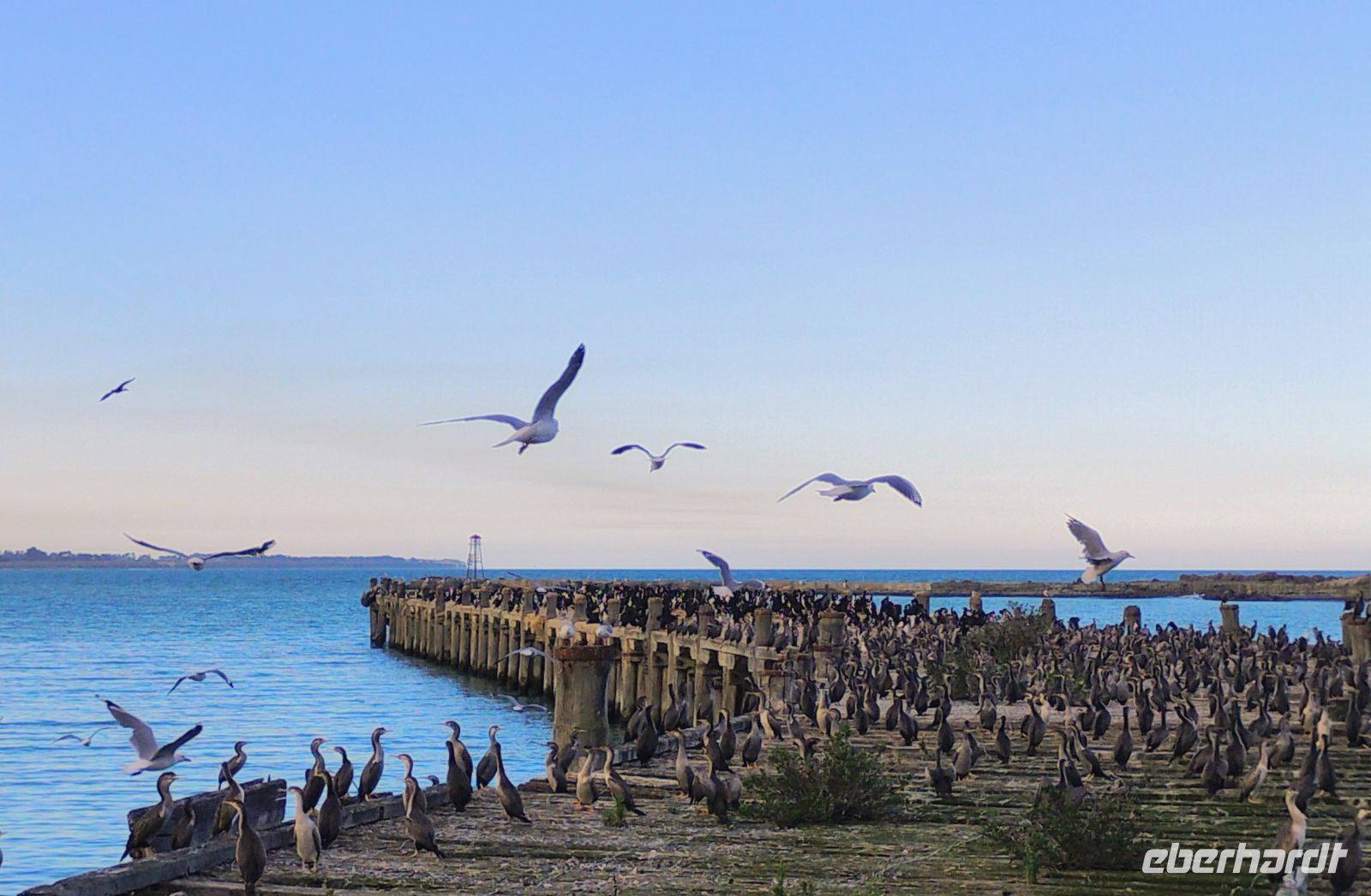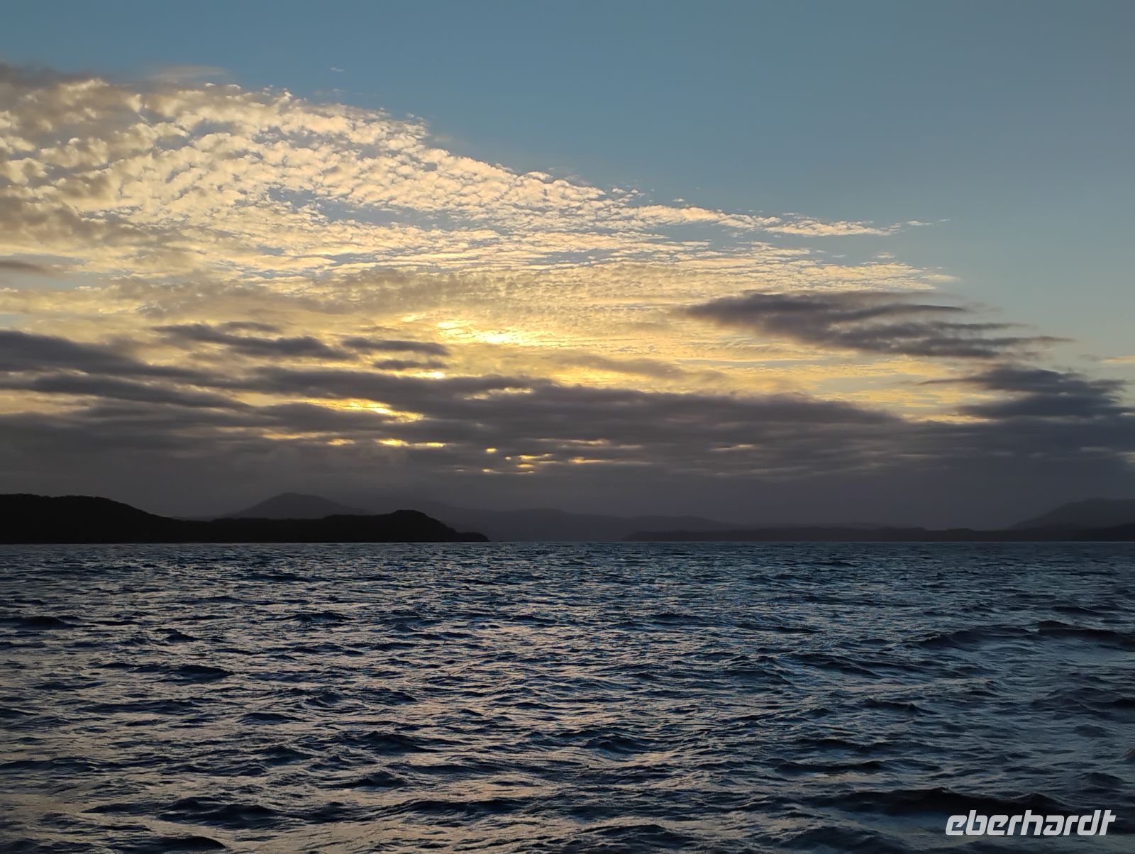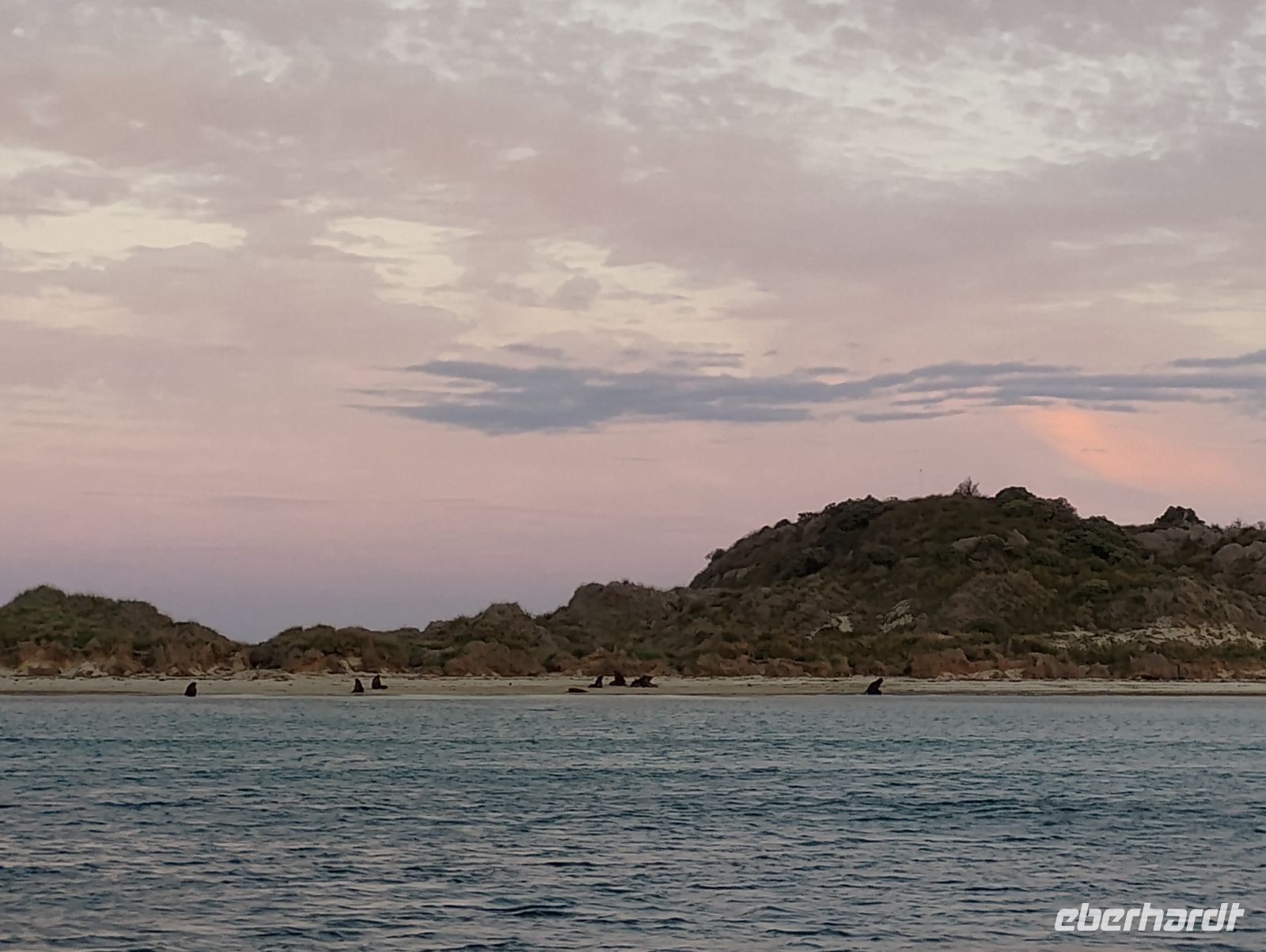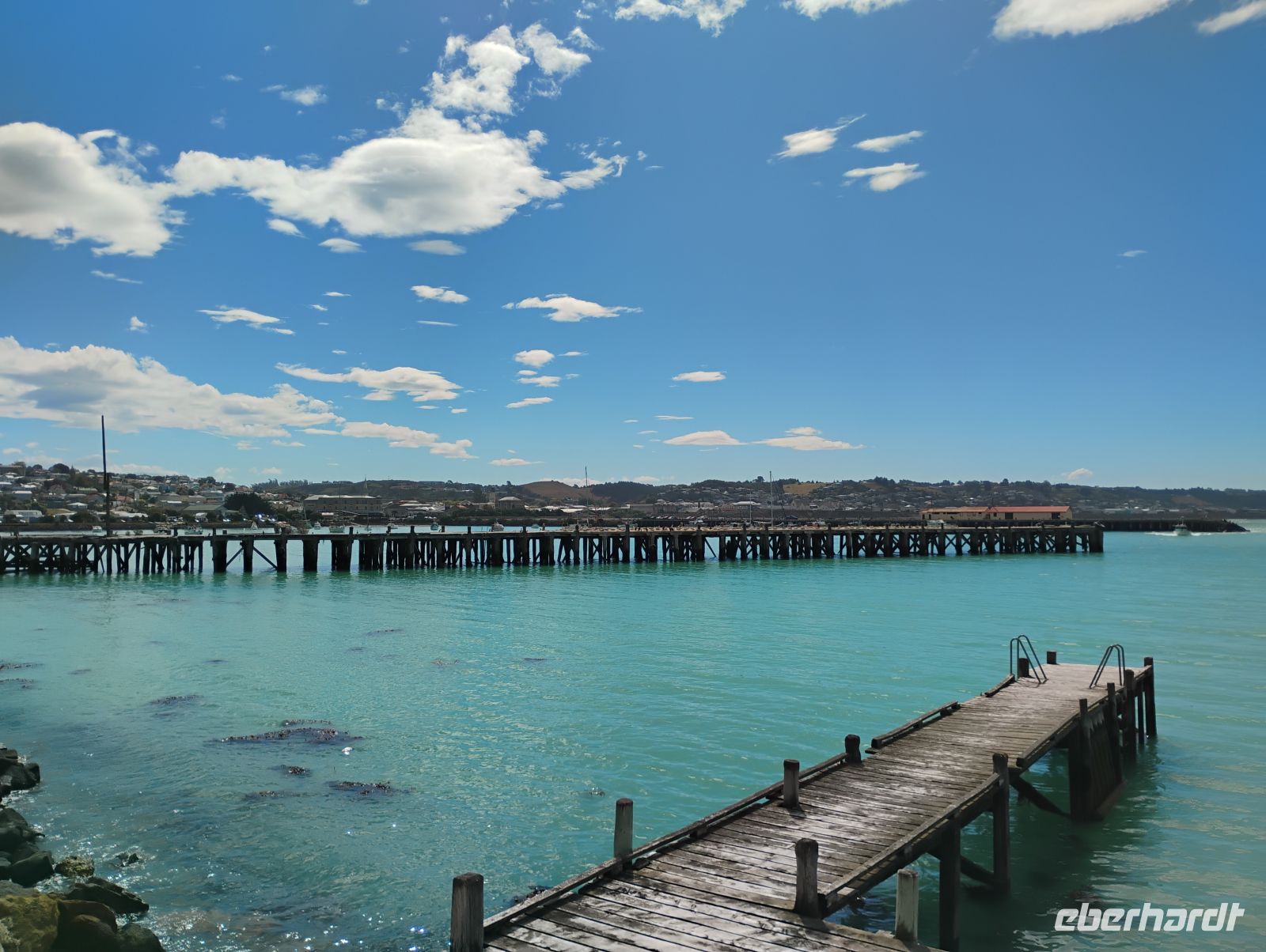 Danach gehen wir noch einmal zum Steg, wo wir für einen weiteren besonderen Programmpunkt einchecken: die Kiwi-Experience am Abend. Der Wind ist noch immer deutlich spürbar und auf dem offenen Meer macht sich die raue See bemerkbar.