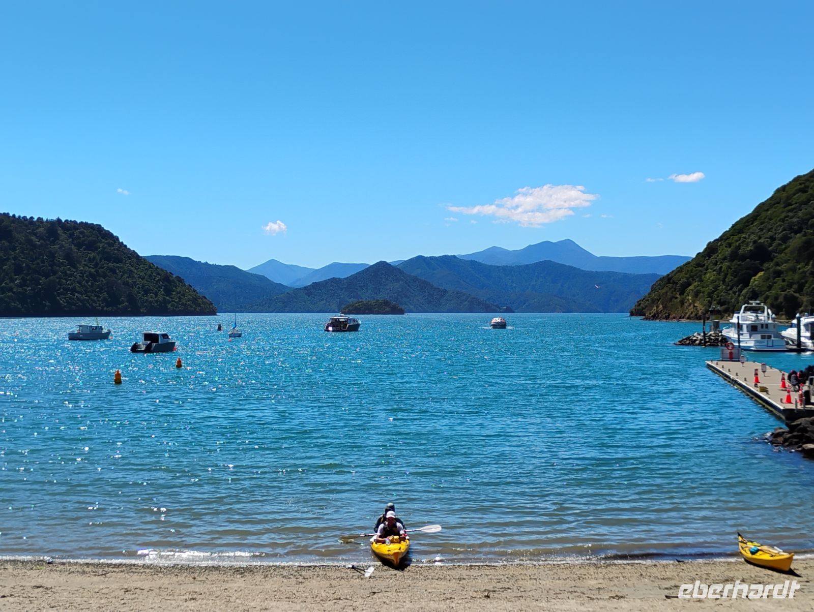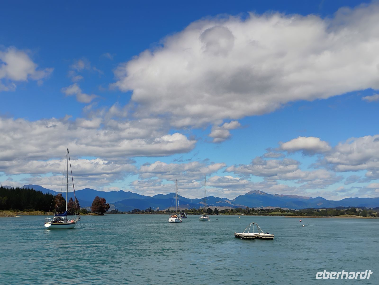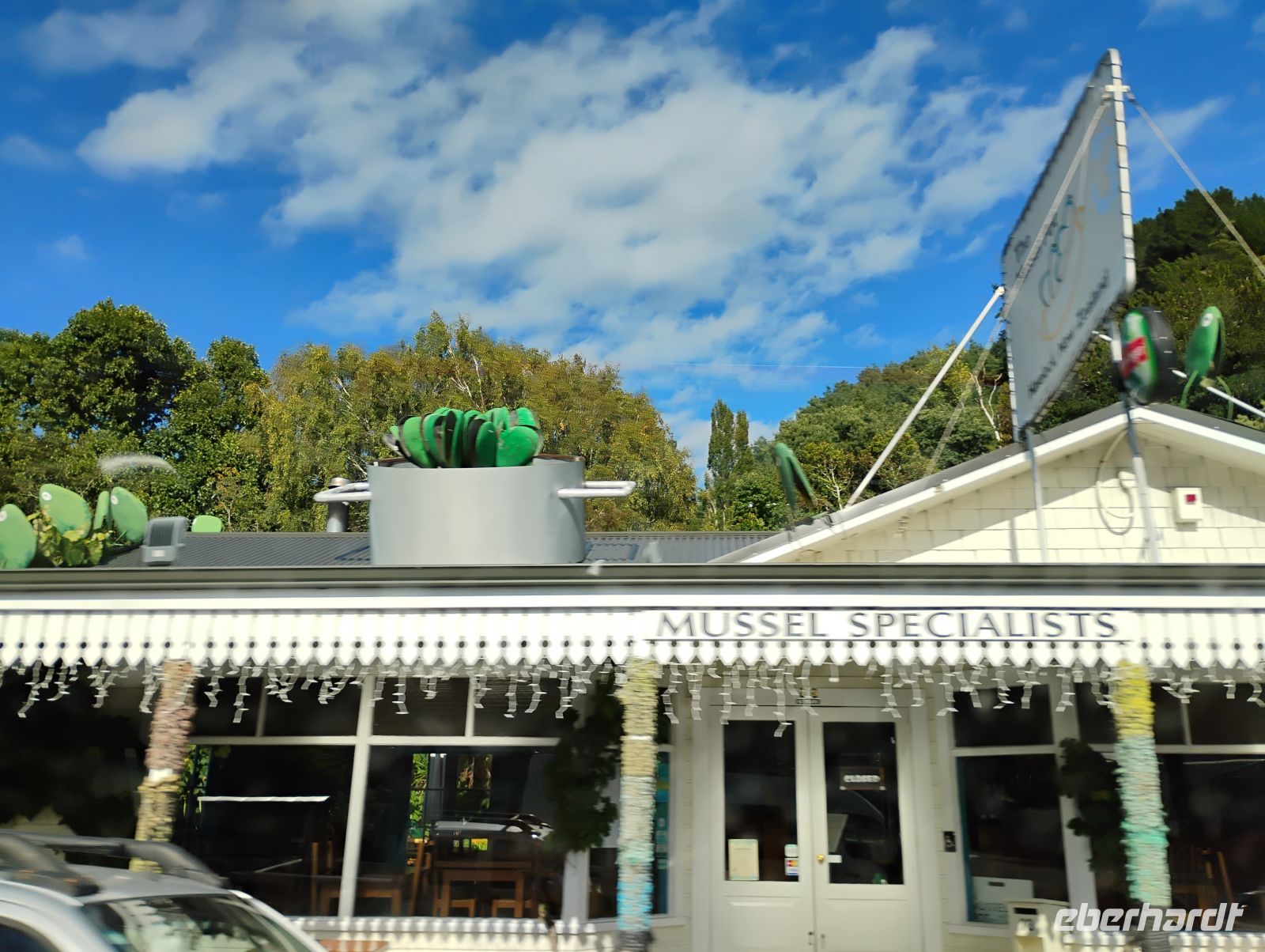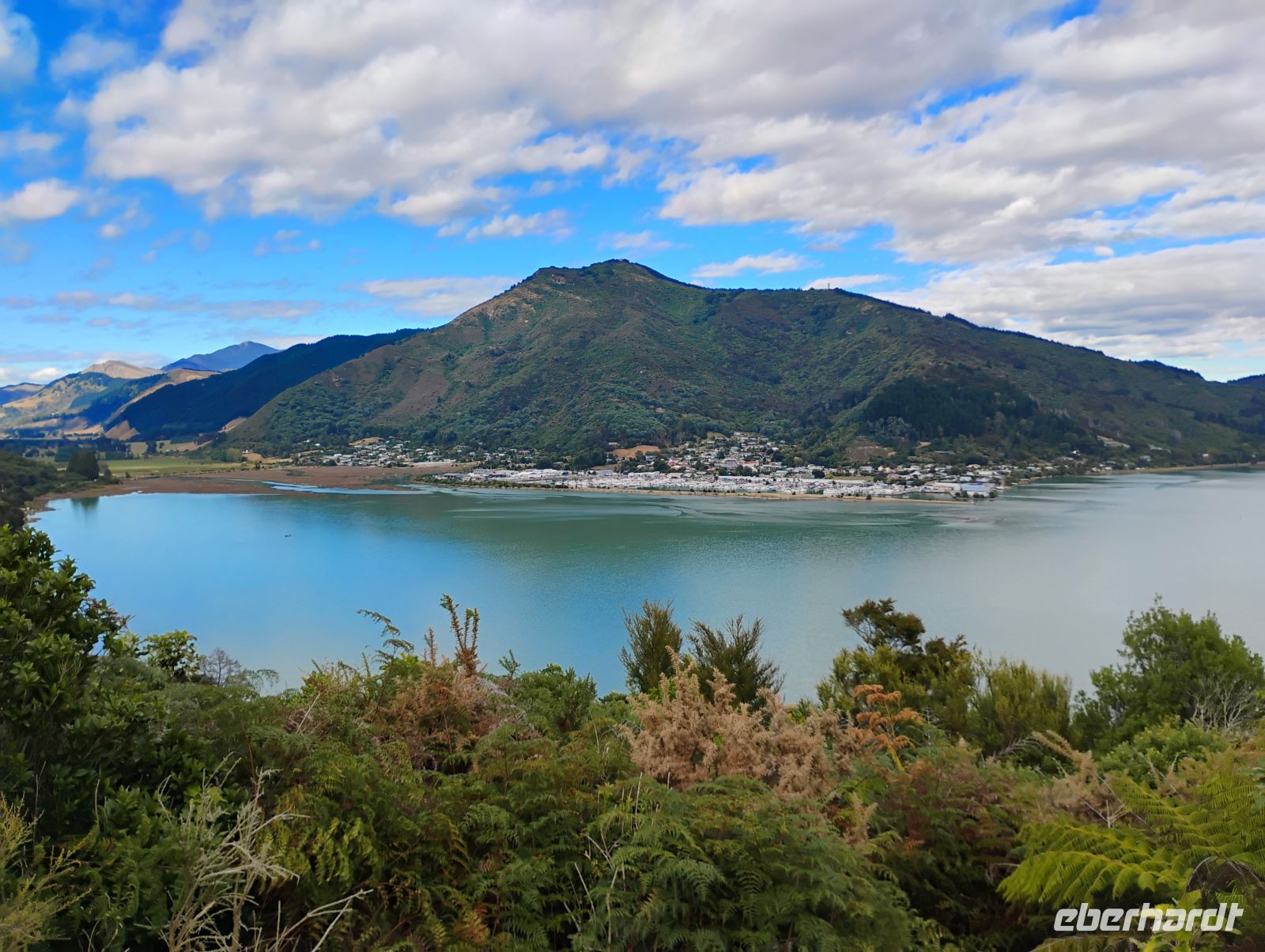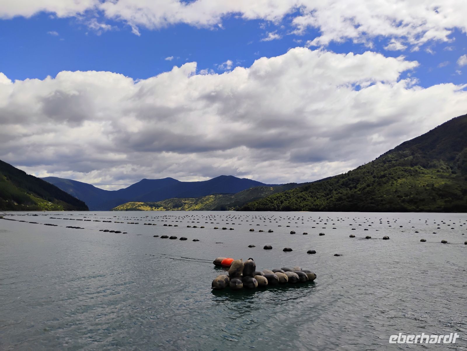 Ein erster Halt führte uns zum Cullen Point Scenic Reserve, wo sich noch einmal ein weiter Blick über die verzweigte Küstenlandschaft bot. Durch Havelock, bekannt als Zentrum der Grünlippenmuschel-Zucht, ging es weiter Richtung Nelson.