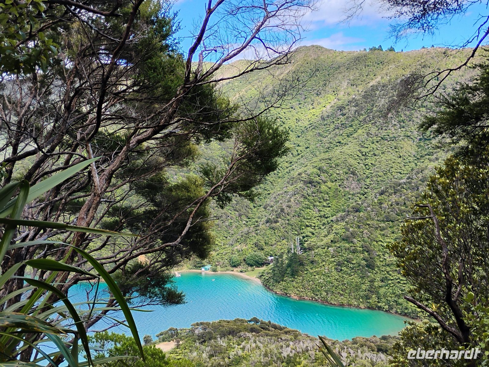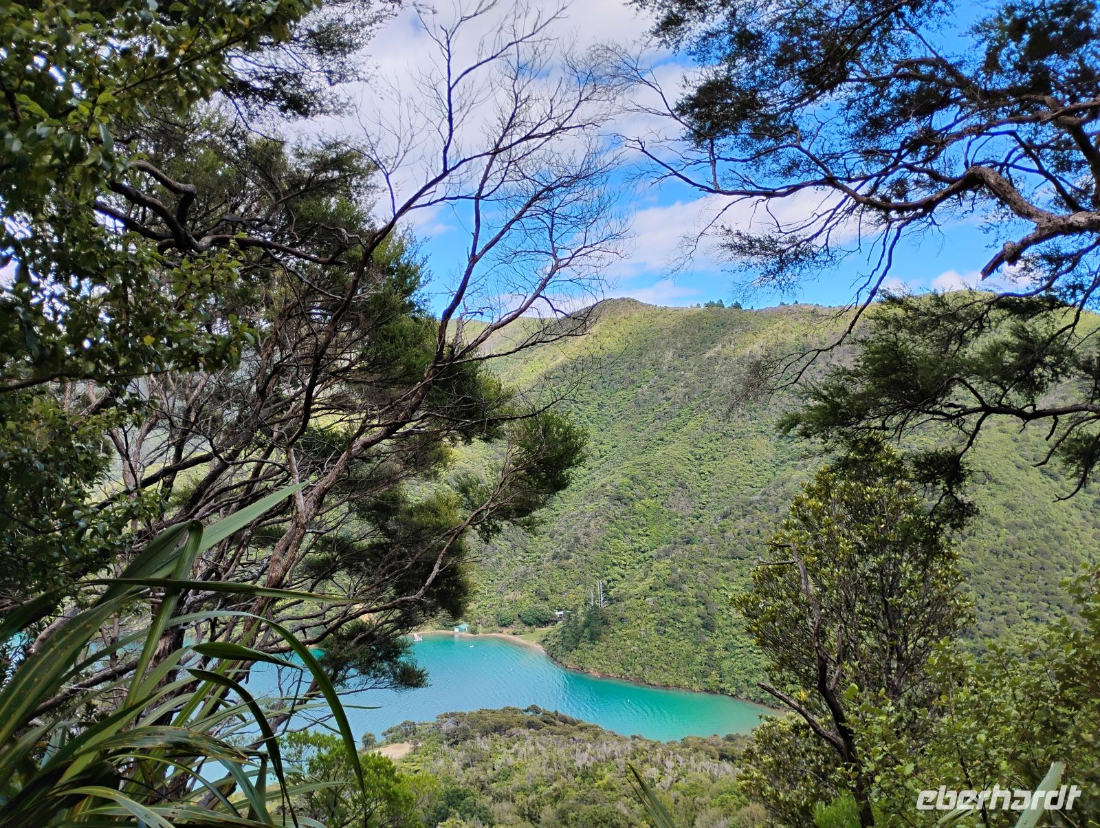 Nach dem Frühstück starteten wir direkt vom Resort zu einer etwa zweistündigen Wanderung auf einem Abschnitt des Queen Charlotte Track. Der insgesamt rund 73 Kilometer lange Weg wird normalerweise in drei bis fünf Tagen erwandert – wir genossen heute nur ein kleines Teilstück davon.