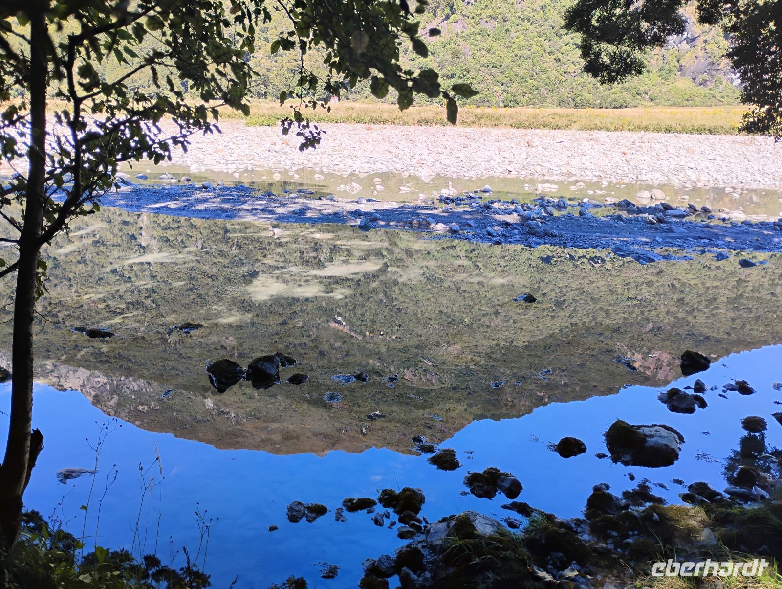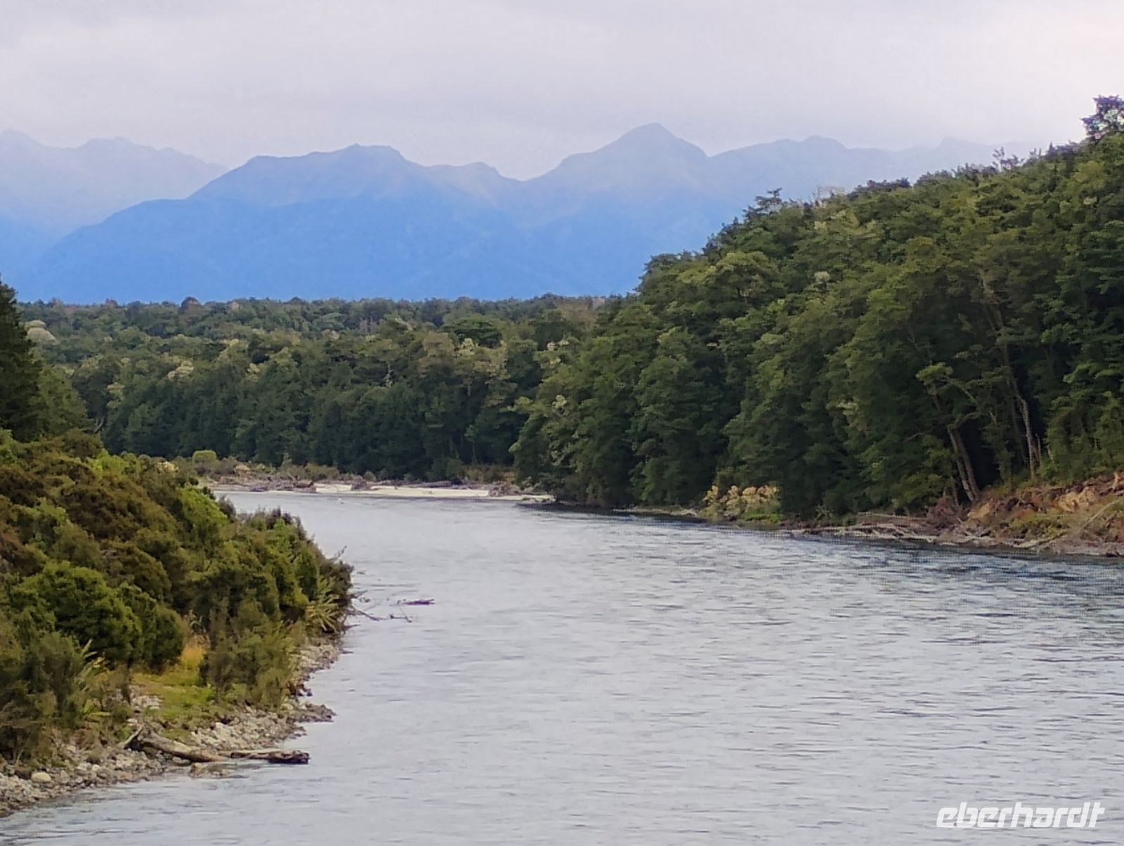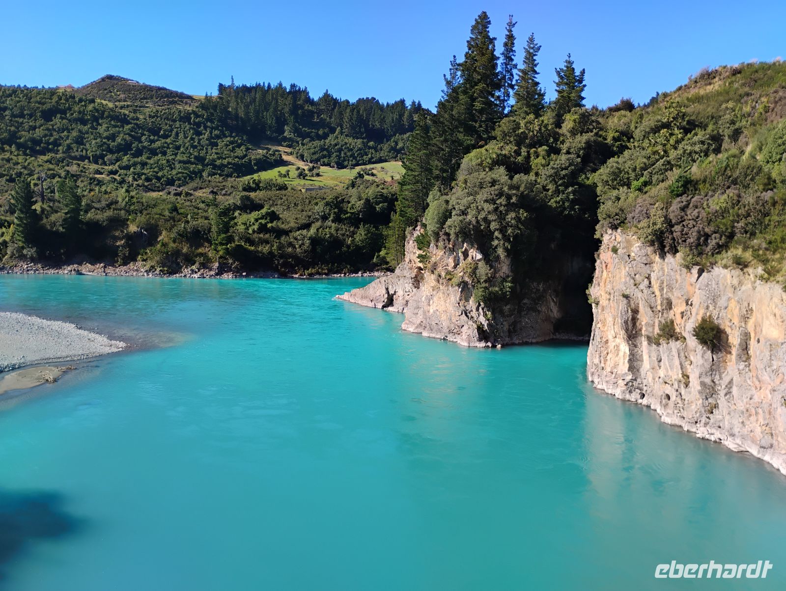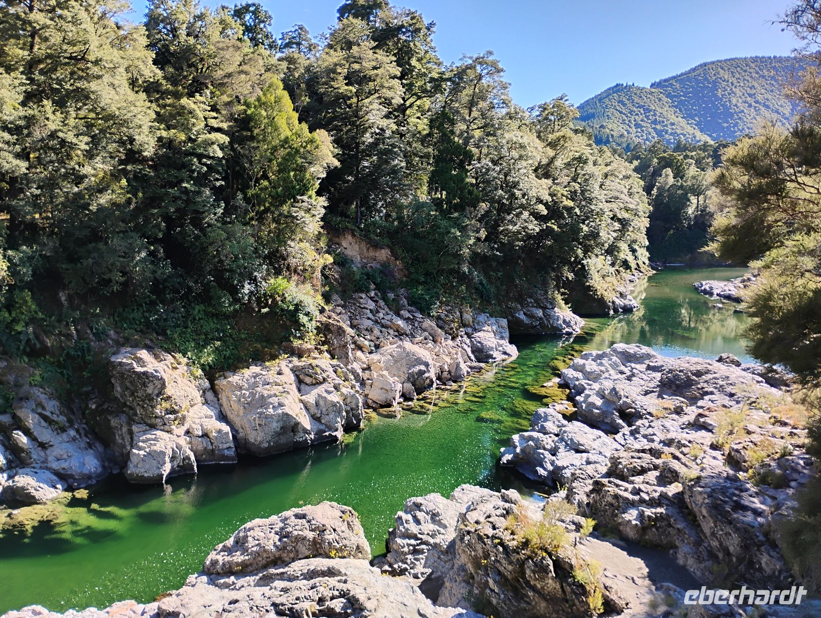 An der Pelorus Bridge legten wir eine kurze Pause ein. Die klare Flusslandschaft diente als Drehort für eine Szene aus der Hobbit-Verfilmung - ein idyllischer Ort, der auch ohne Filmkulisse beeindruckt.