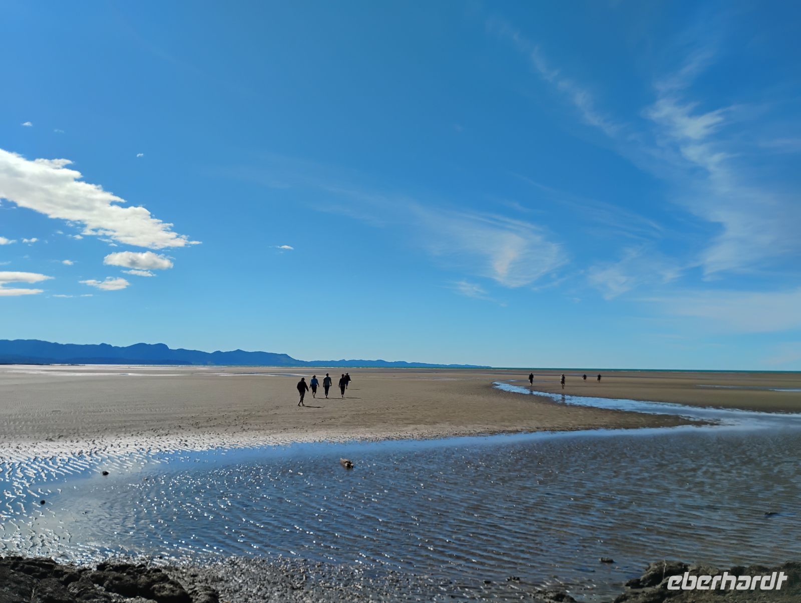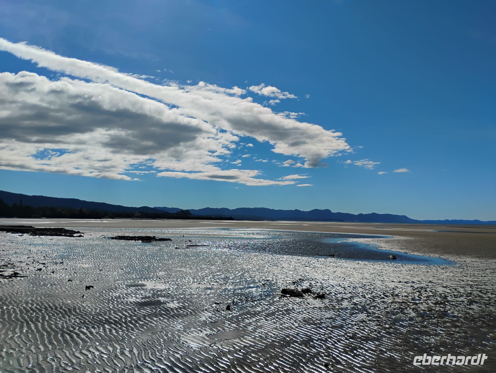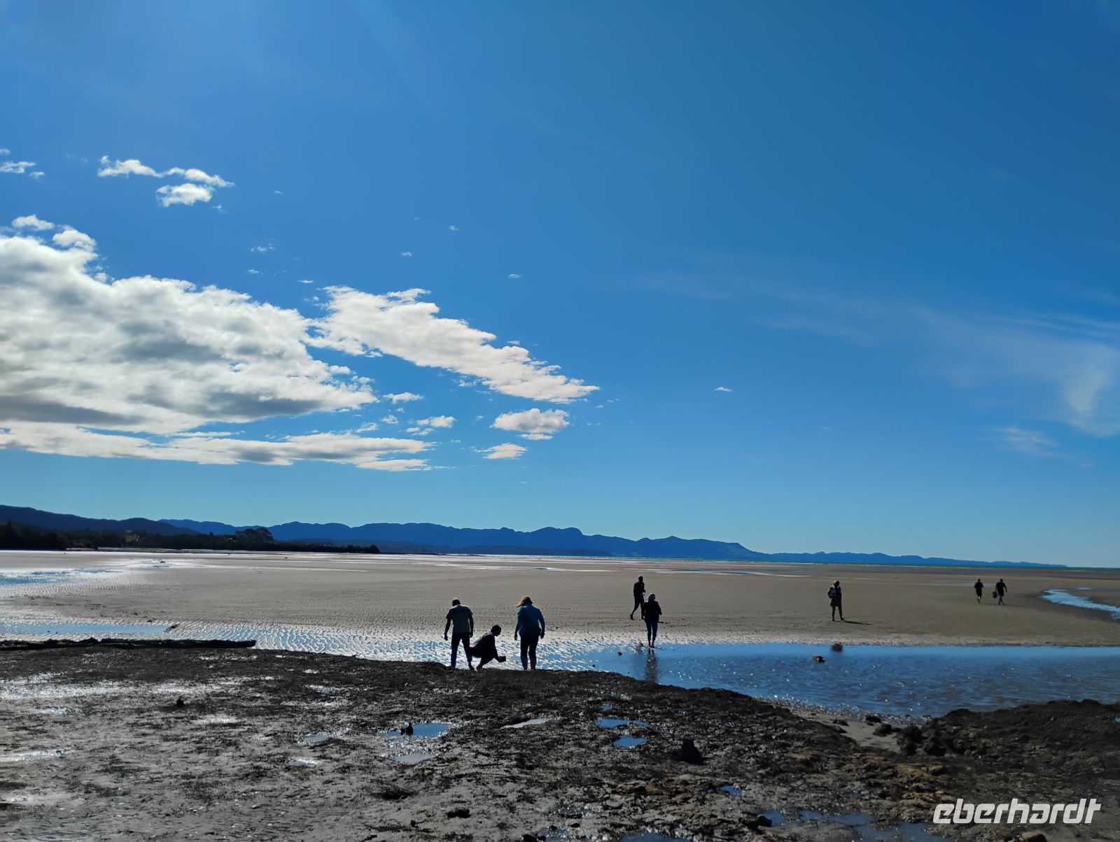 Nahe Takaka hielten wir an einem weitläufigen Strand. Bei Ebbe lassen sich hier tatsächlich Muscheln finden! Wir sammelten genügend für die Vorspeise unseres geplanten Grillabends.
