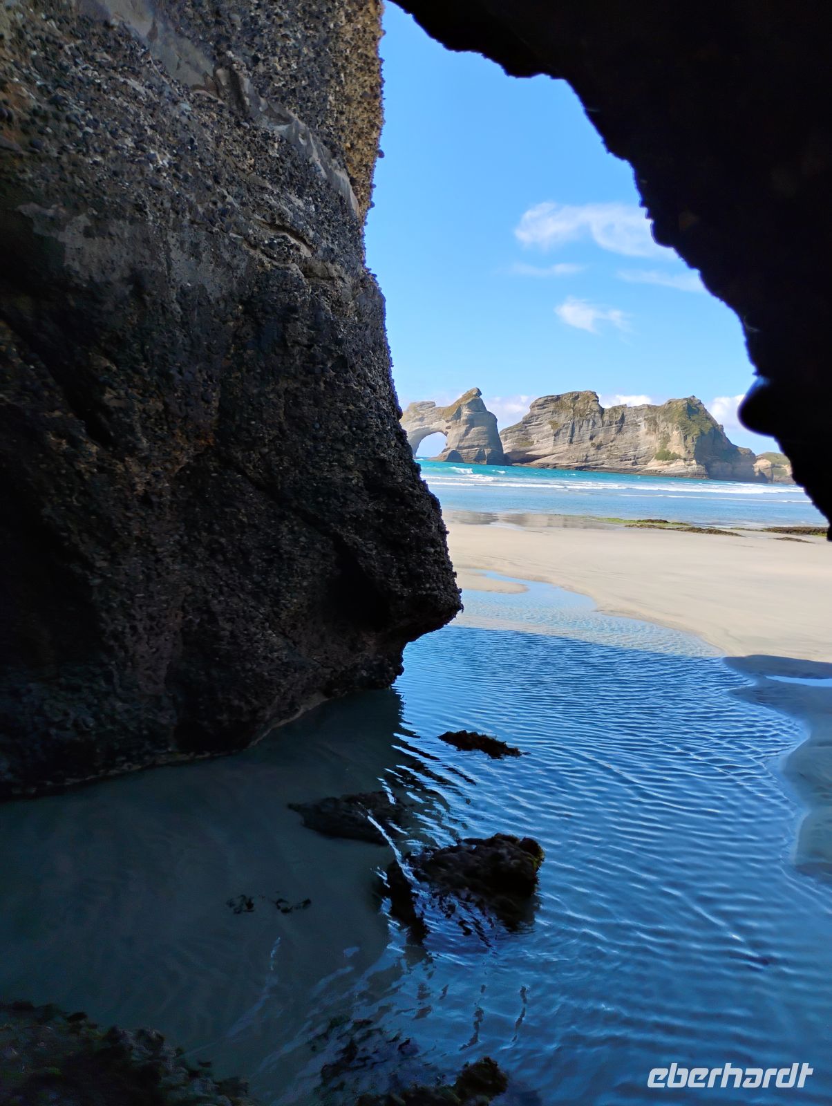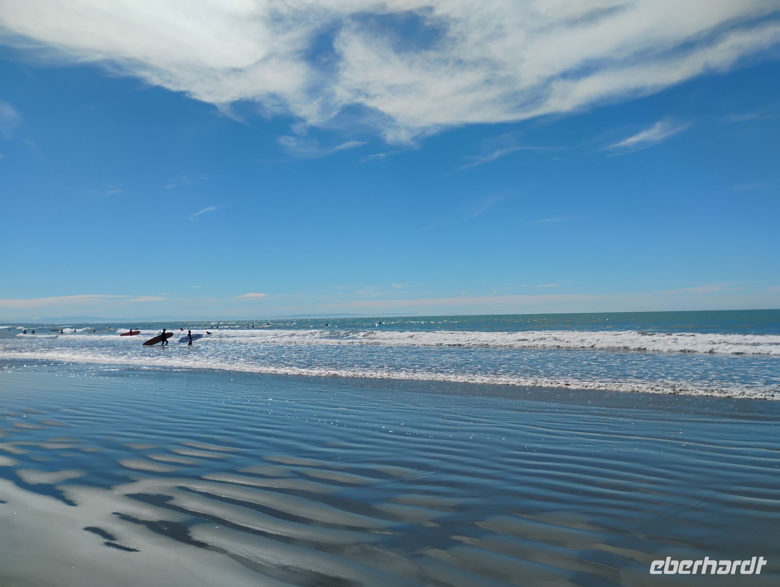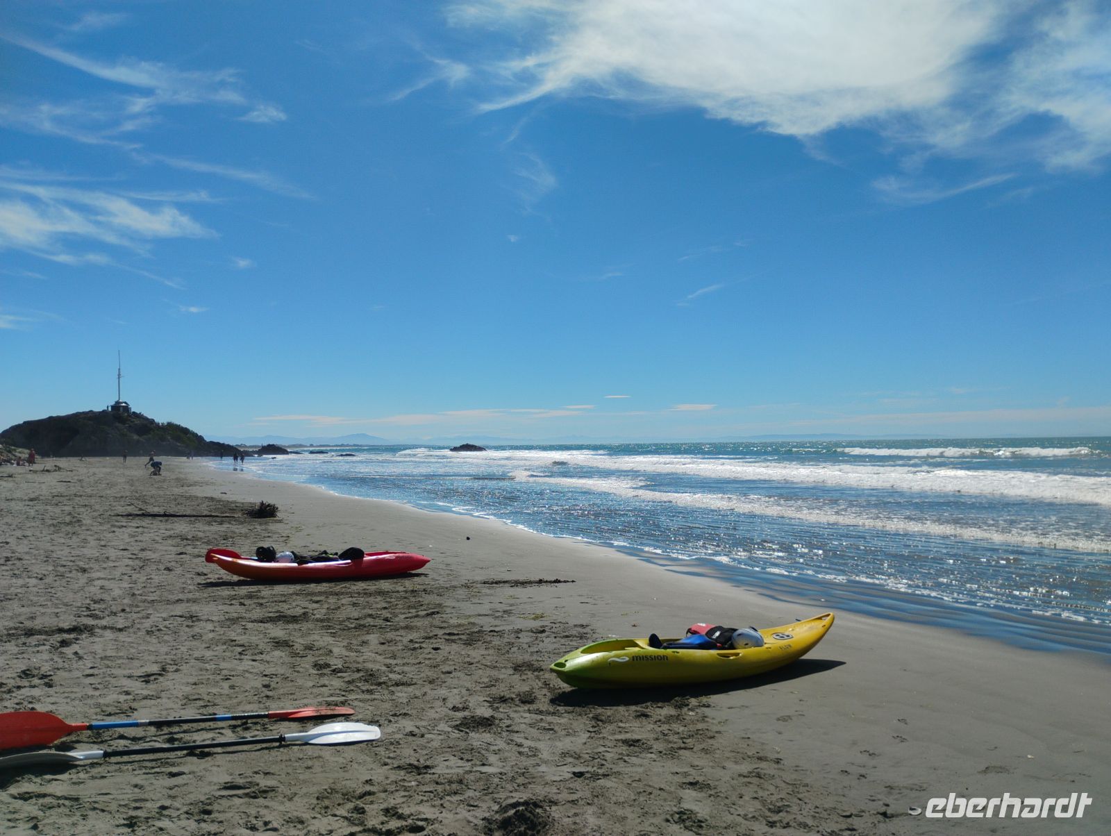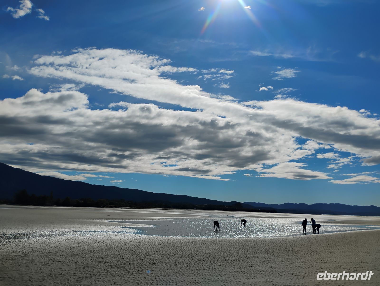 Nahe Takaka hielten wir an einem weitläufigen Strand. Bei Ebbe lassen sich hier tatsächlich Muscheln finden! Wir sammelten genügend für die Vorspeise unseres geplanten Grillabends.