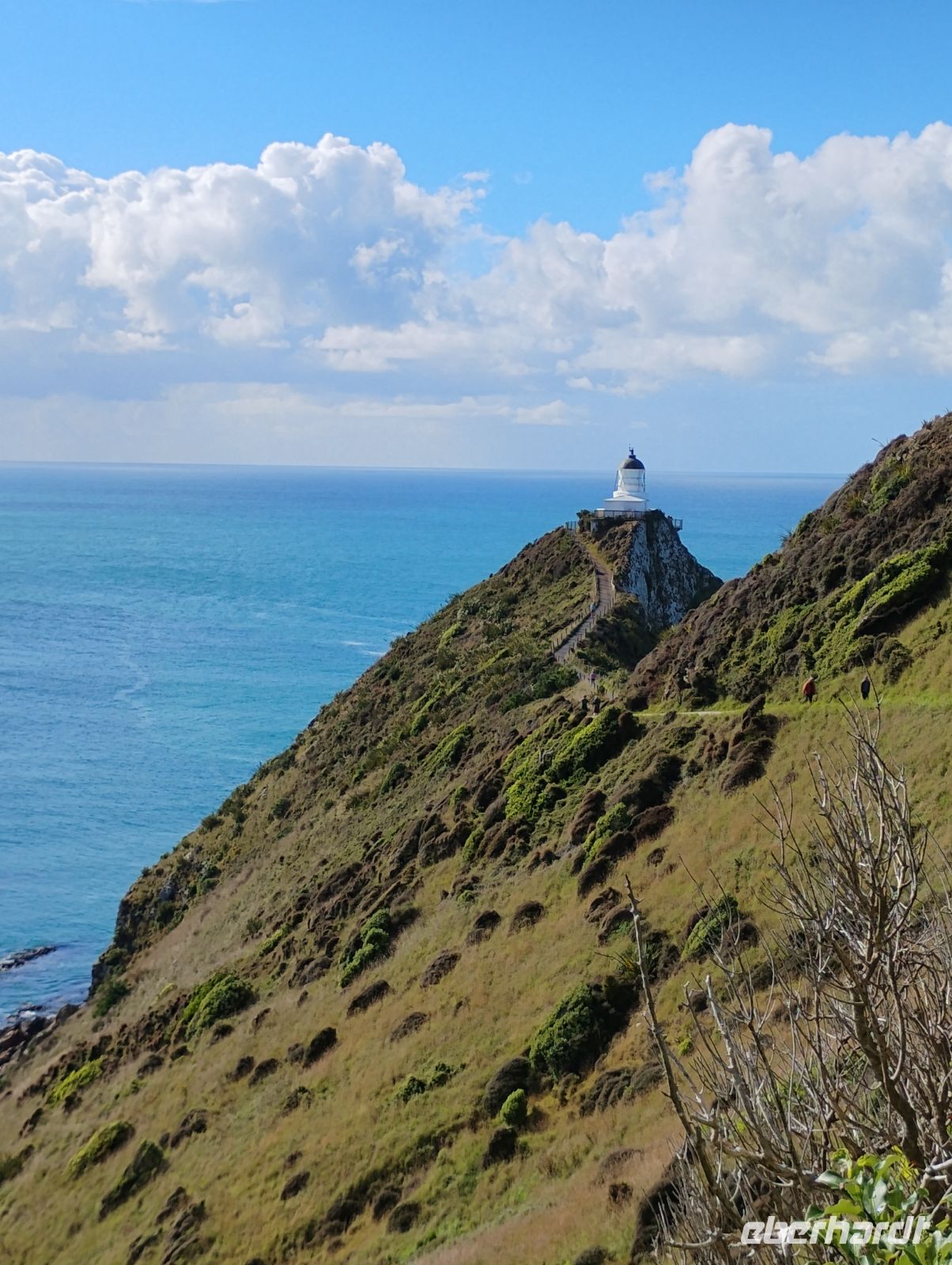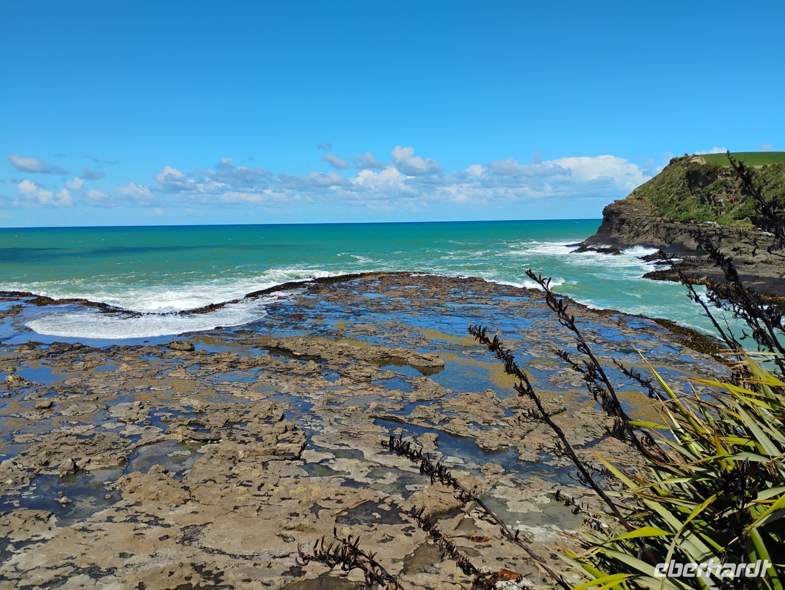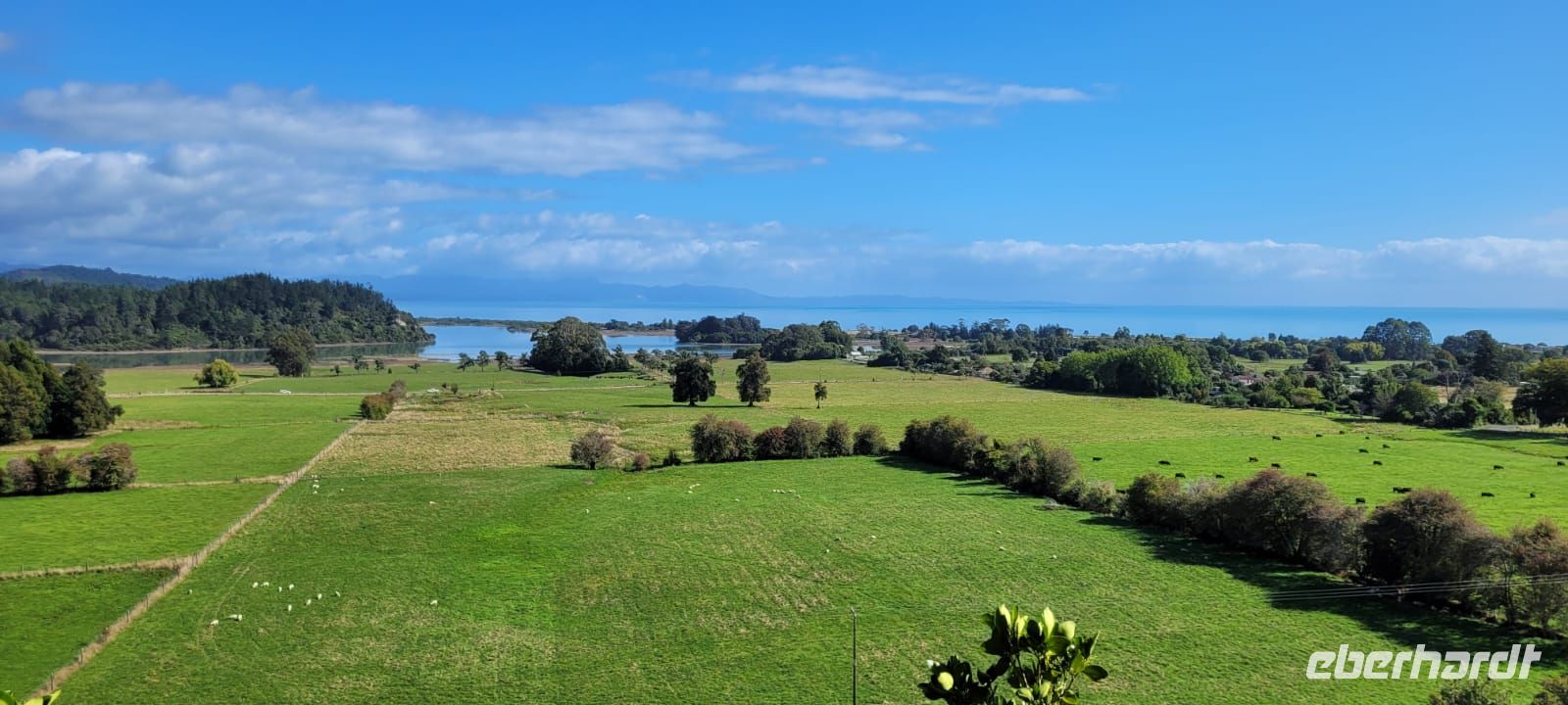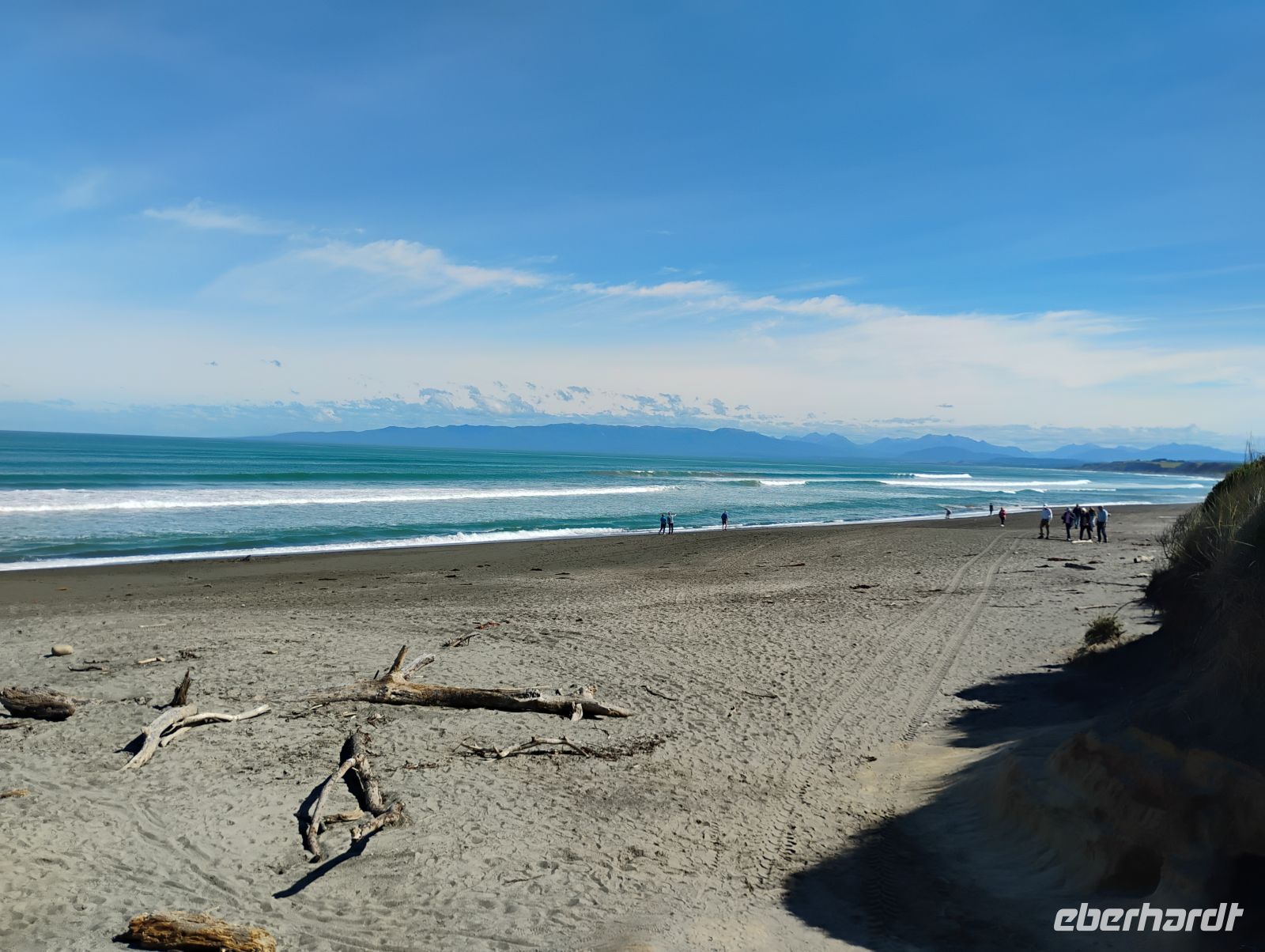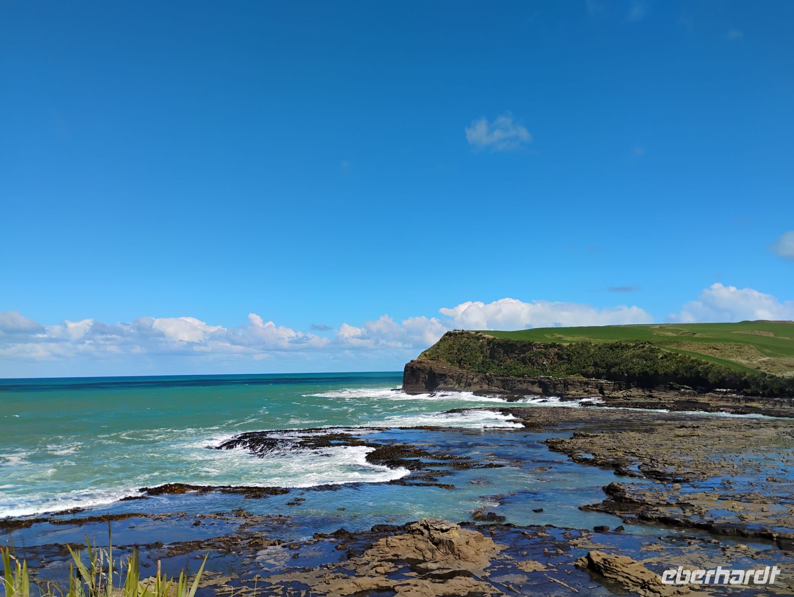 Am Nachmittag setzen wir unsere Fahrt fort. Die Landschaft bleibt abwechslungsreich: grüne Hügel, abgelegene Farmen, dichte Küstenvegetation und immer wieder weite Blicke über das Meer. Wir durchfahren eine der stilleren, aber besonders eindrucksvollen Regionen Neuseelands.