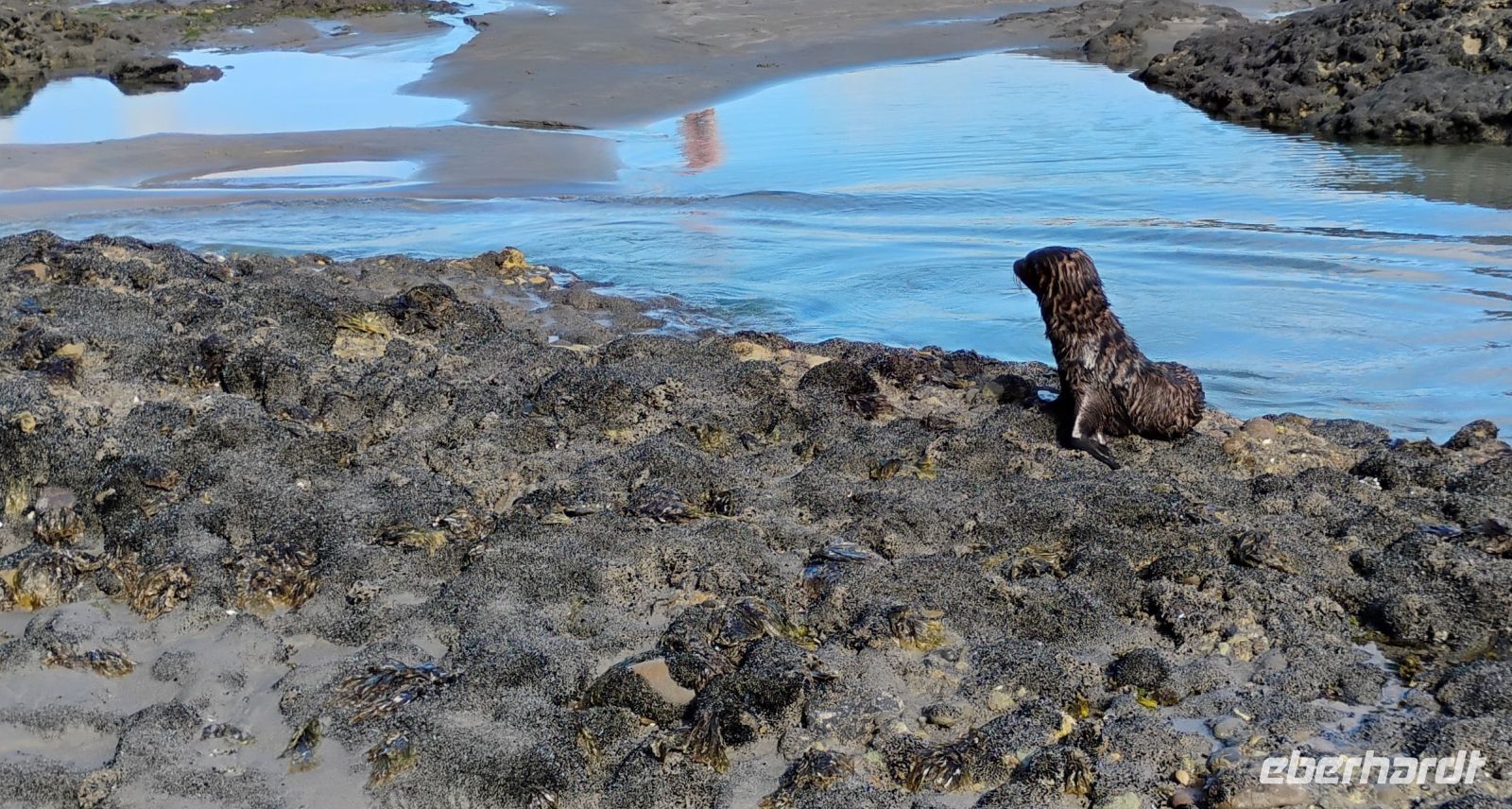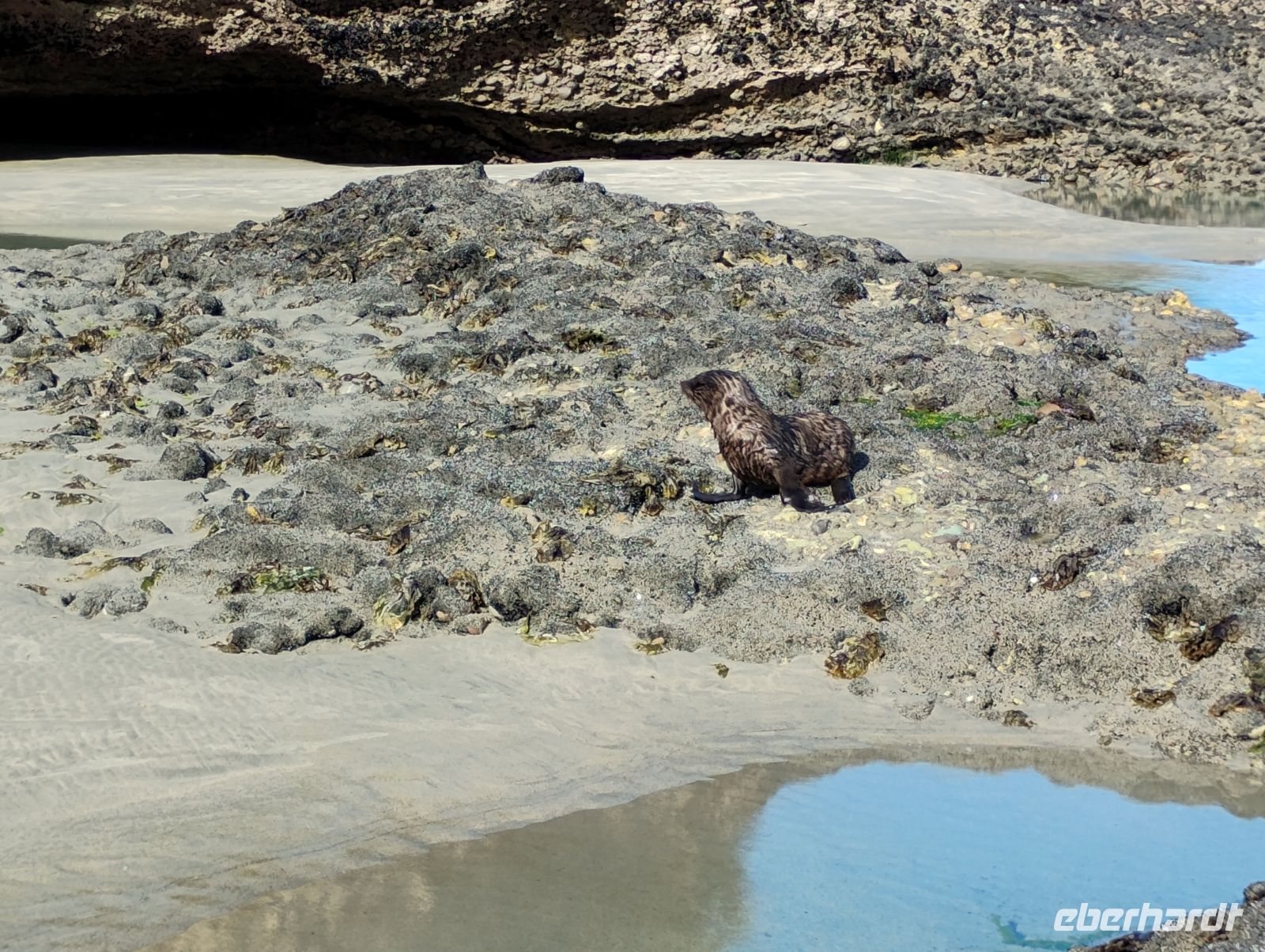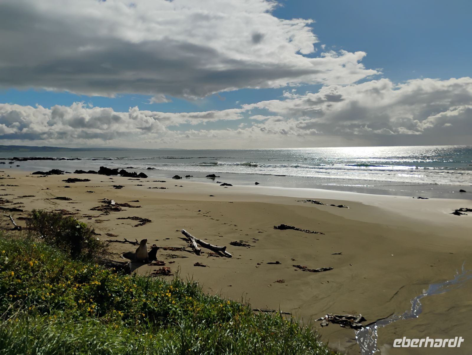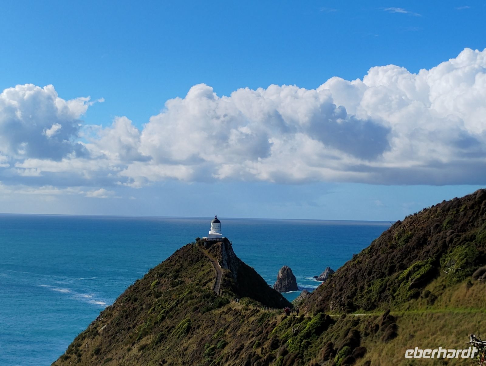 Kurz vor dem berühmten Nugget Point Lighthouse entdecken wir zwei Seelöwen am Strand und halten spontan an, das wollen wir natürlich fotografisch festhalten. Anschließend spazieren wir zum Leuchtturm. Unterwegs eröffnen sich immer wieder großartige Ausblicke auf die vorgelagerten Felseninseln, die „Nuggets“, die dem Kap ihren Namen gegeben haben.