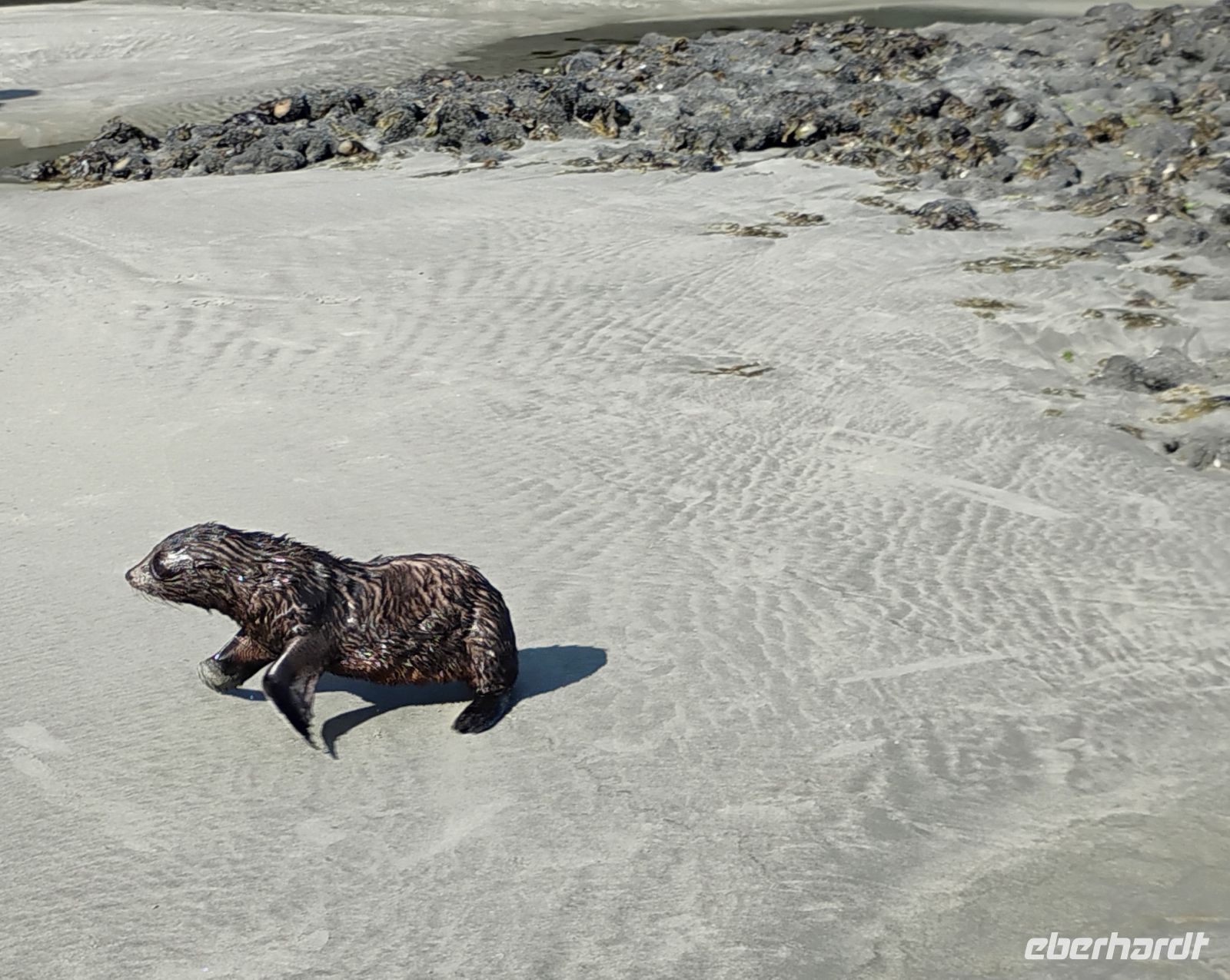 Schließlich erreichen wir eine abgelegene Bucht der Little Glory Cove. Am Strand entdecken wir zunächst einige Seelöwen, bevor unser Guide Natascha eine Einführung in das Leben des Kiwis gibt. Der Vogel ist in vieler Hinsicht ungewöhnlich, seine Merkmale erinnern teilweise eher an ein Säugetier als an einen Vogel.