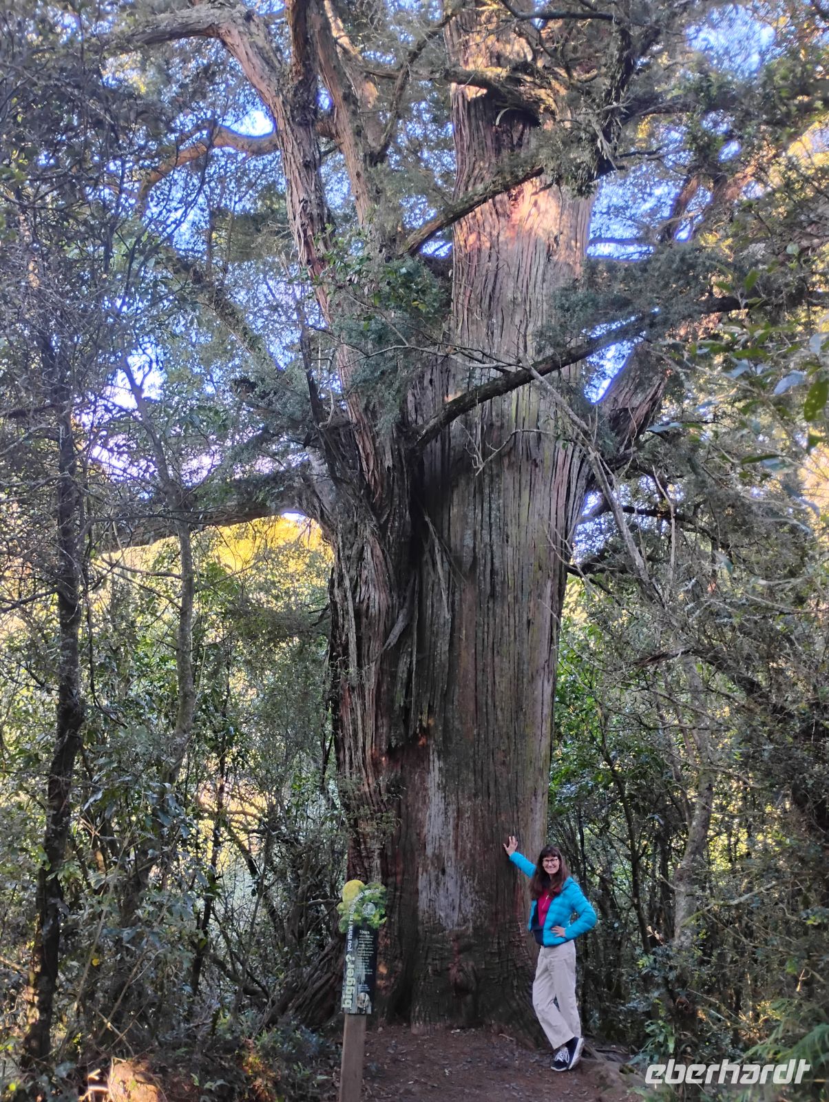 Unterwegs erfahren wir viel über die beeindruckenden Kauri-Bäume. Ihr Holz wurde früher unter anderem für Schiffsmasten verwendet, und das Harz – das sogenannte Kauri-Gummi – begründete einst eine eigene Industrie. Noch heute werden im Sumpfgebiet versunkene, jahrtausendealte „Swamp Kauri“ geborgen und zu hochwertigen Möbeln verarbeitet. Das Holz gilt als besonders edel und nahezu astfrei.