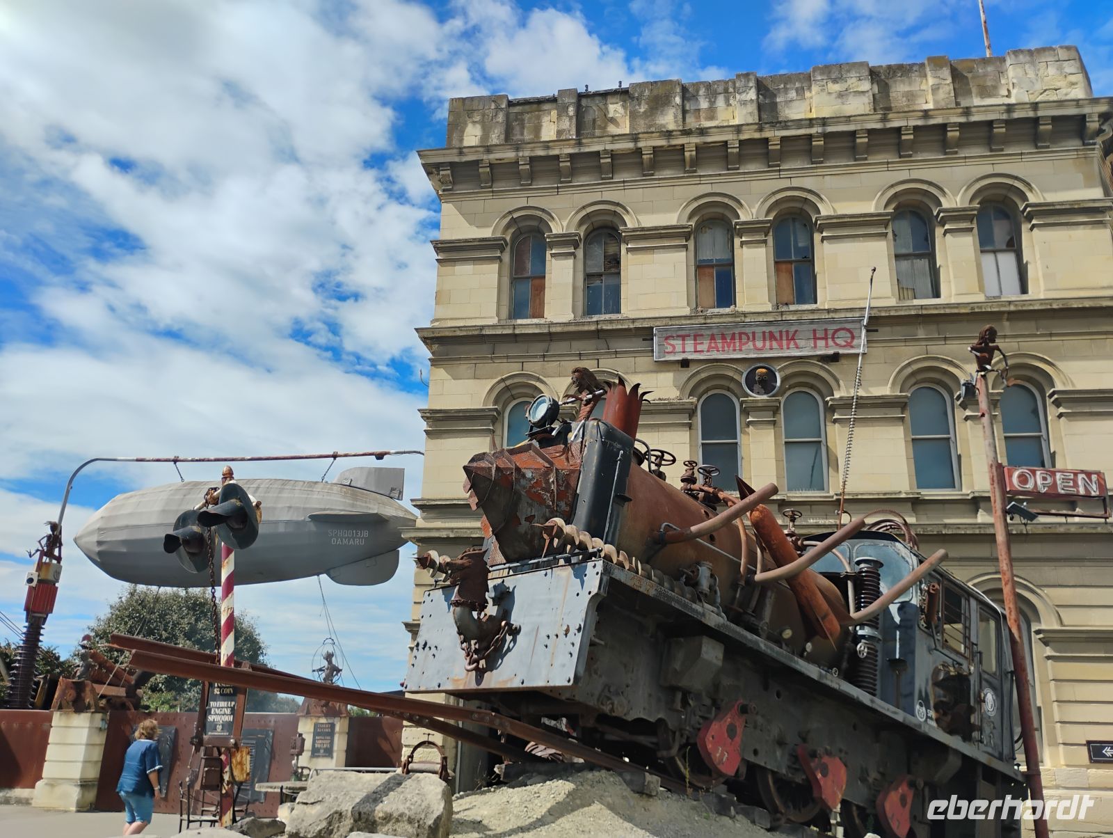 Ein kurzer Fotostopp führt uns zu Weta Workshop, wo Requisiten, Kostüme und Spezialeffekte für zahlreiche internationale Filmproduktionen entstehen. Besonders bekannt sind die detailreichen Figuren und Modelle, die hier entworfen und gefertigt werden.