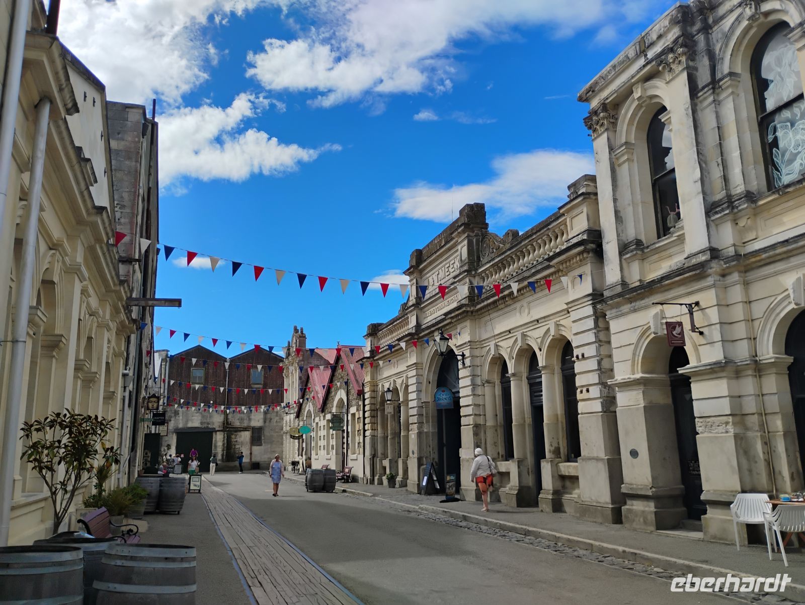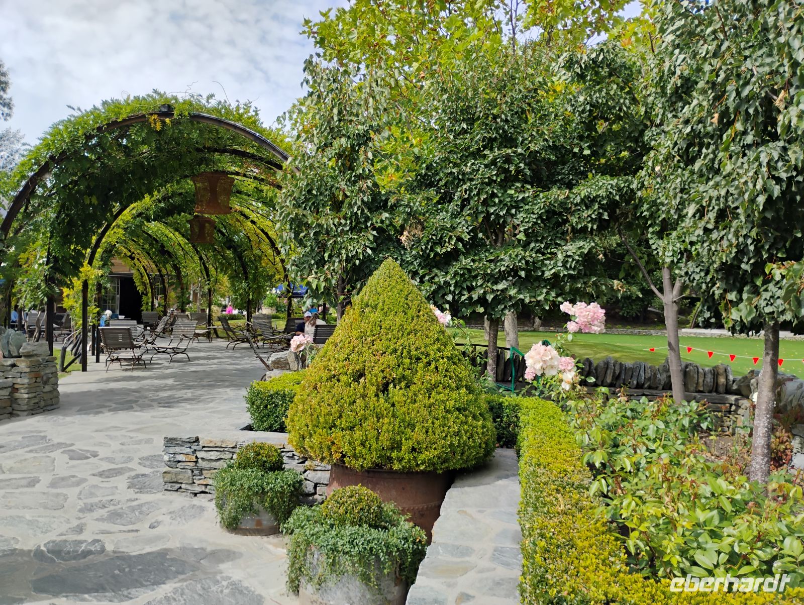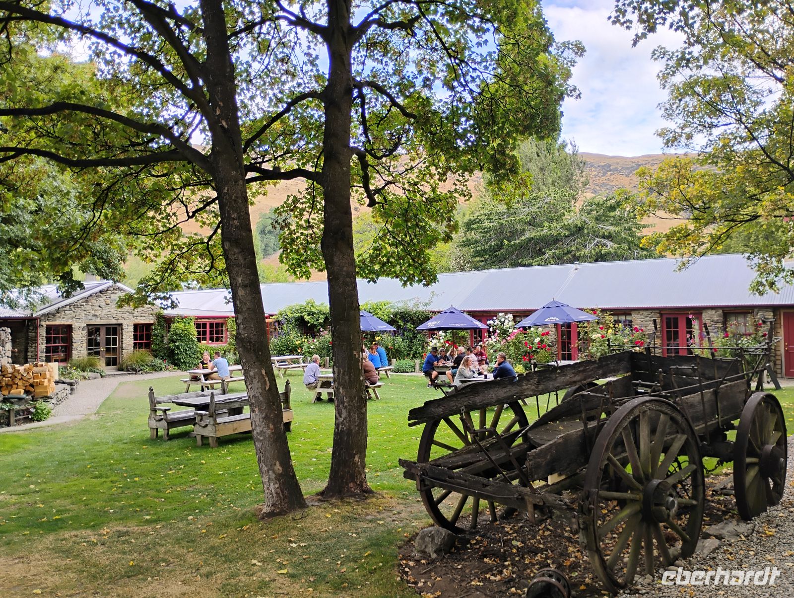 Zur Mittagspause fahren wir nach Ayrburn. Das liebevoll restaurierte historische Farmgelände ist heute eine gepflegte Parkanlage mit Restaurants, Café, Bäckerei und Eisdiele – ein angenehmer Ort für eine entspannte Pause.