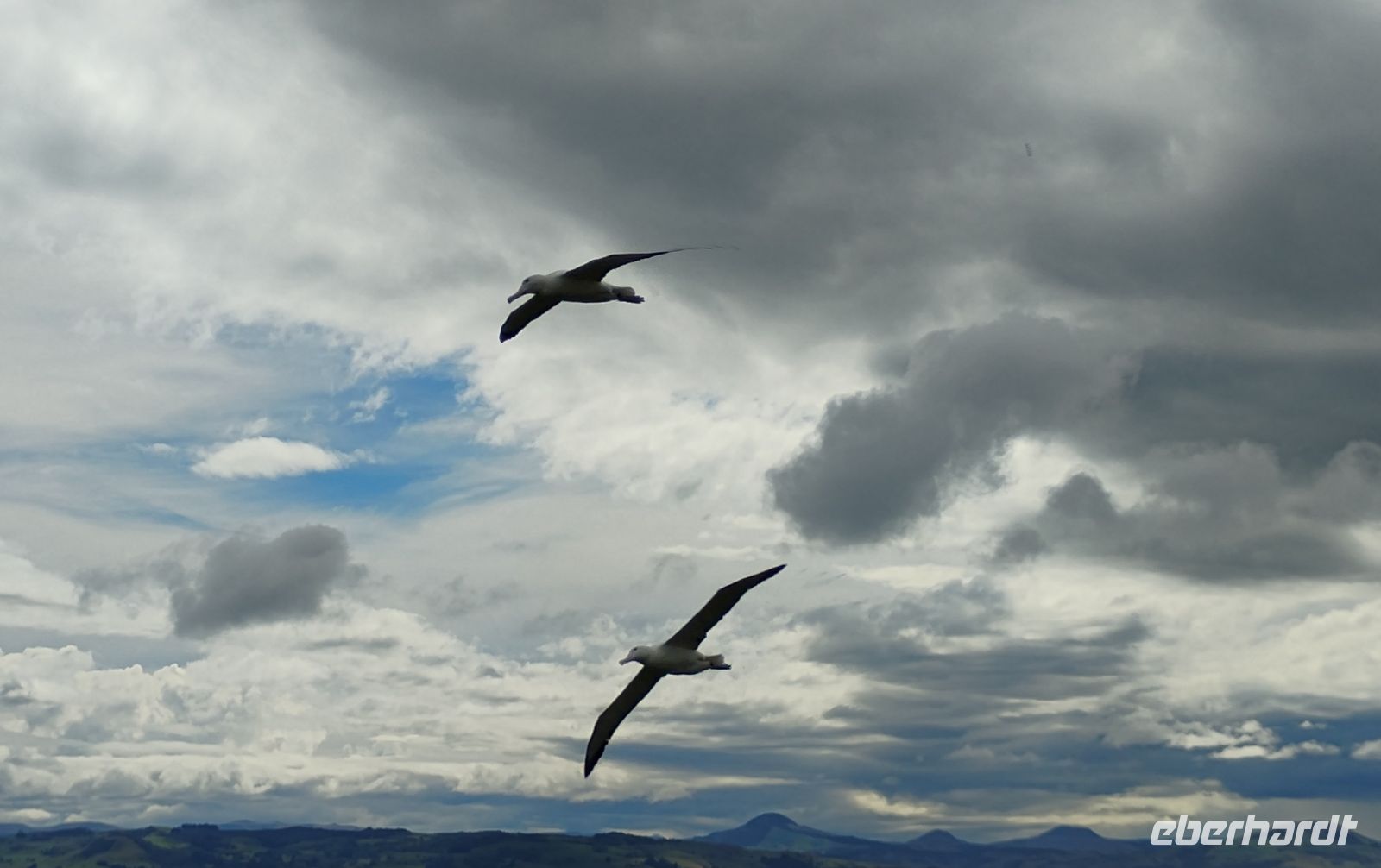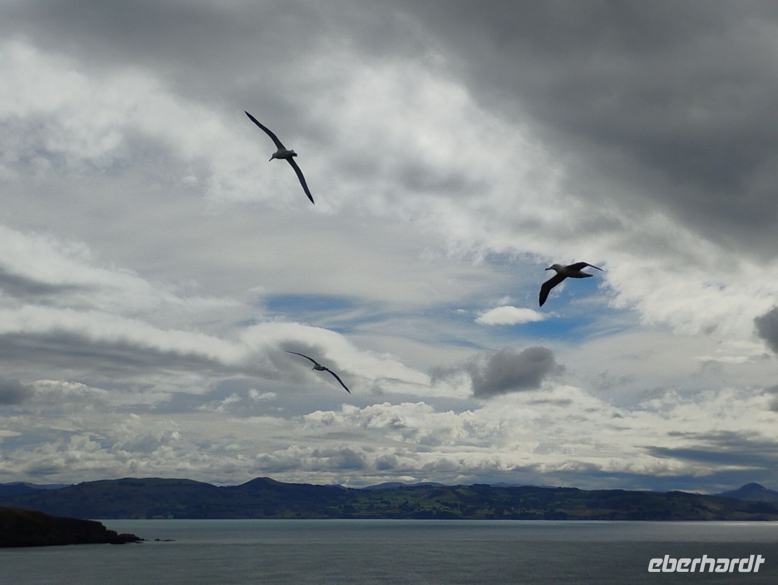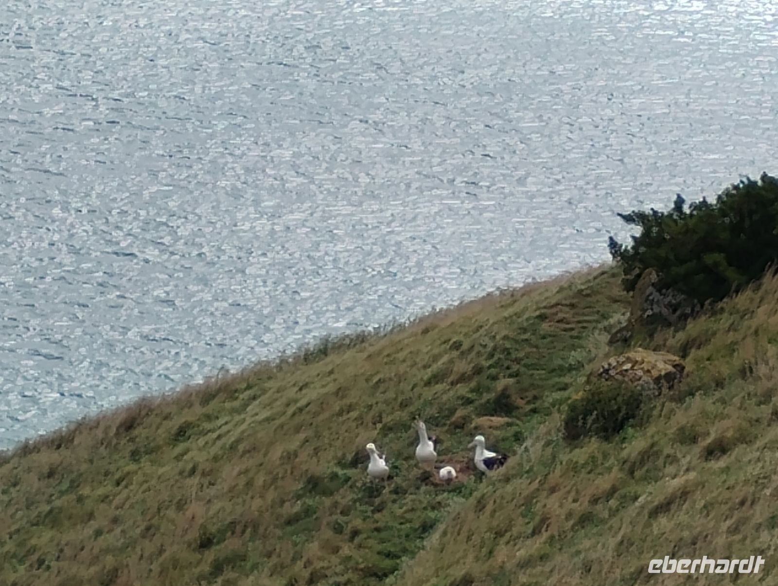 Unterwegs legen wir mehrere kurze Stopps ein, um nach Tieren Ausschau zu halten. Mit Ferngläsern ausgerüstet halten wir zunächst vor Bench Island um nach dem seltenen Gelbaugenpinguin Ausschau. Tatsächlich können wir einen entdecken. Wenig später beobachten wir neuseeländische Pelzrobben am Flat Rock, während über uns mehrere Albatrosse im warmen Licht des Sonnenuntergangs ihre Kreise ziehen. Auch Kormorane sitzen auf den Felsen entlang der Küste.