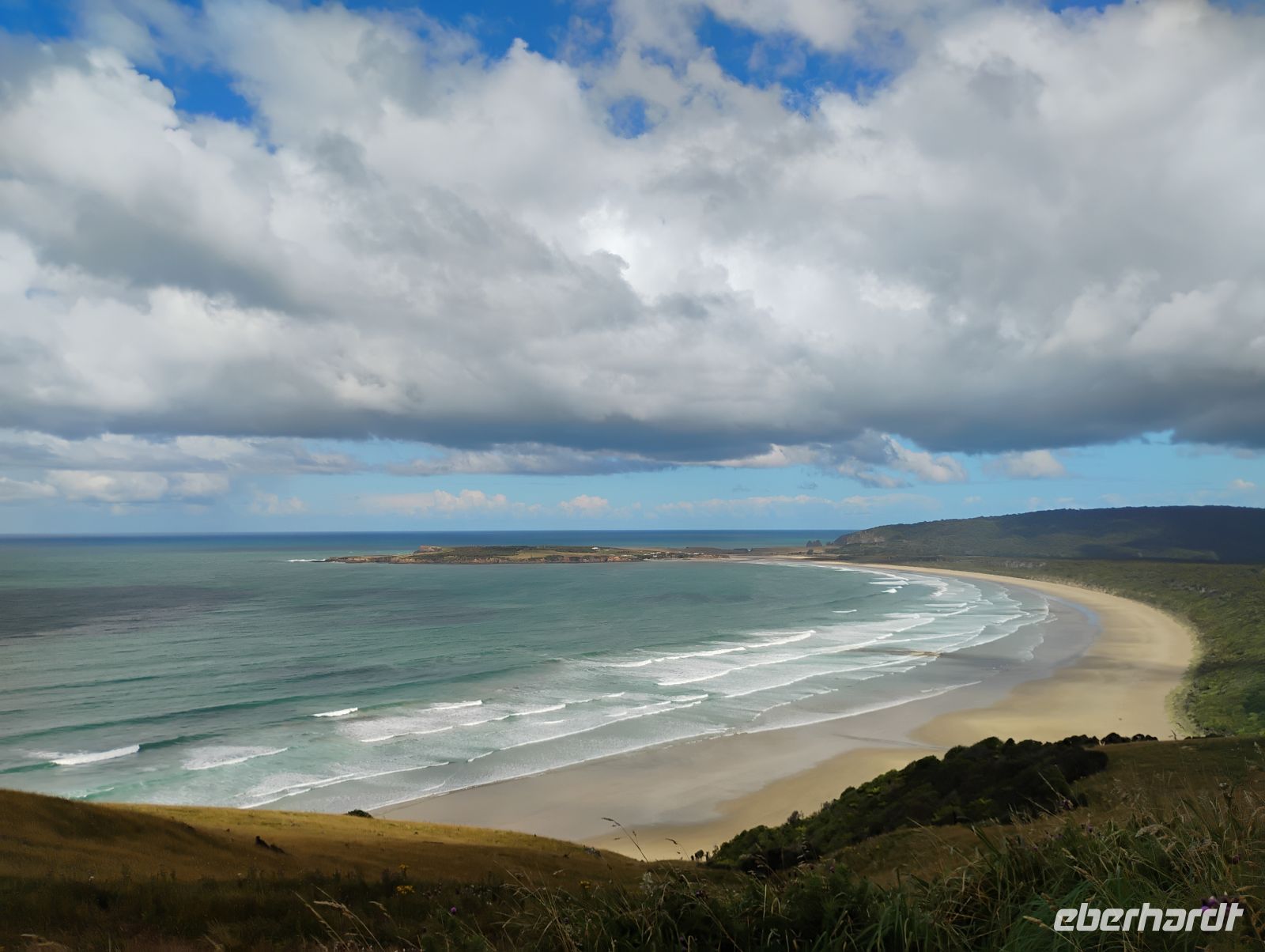 Die Weiterfahrt führt entlang der zerklüfteten Küste zu schönen Aussichtspunkten wie Tautuku Bay, bevor wir schließlich Curio Bay erreichen. Hier legen wir unsere Mittagspause ein. Die Bucht ist bekannt für ihre wilde Küstenlandschaft und einen fossilen Wald aus der Jurazeit.