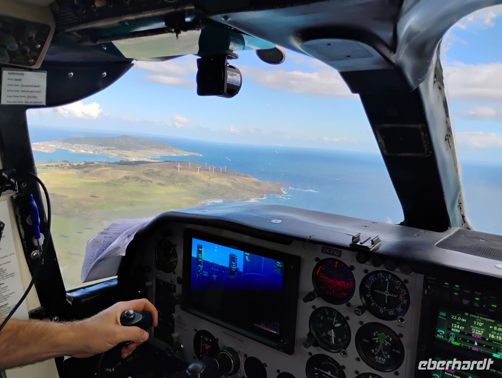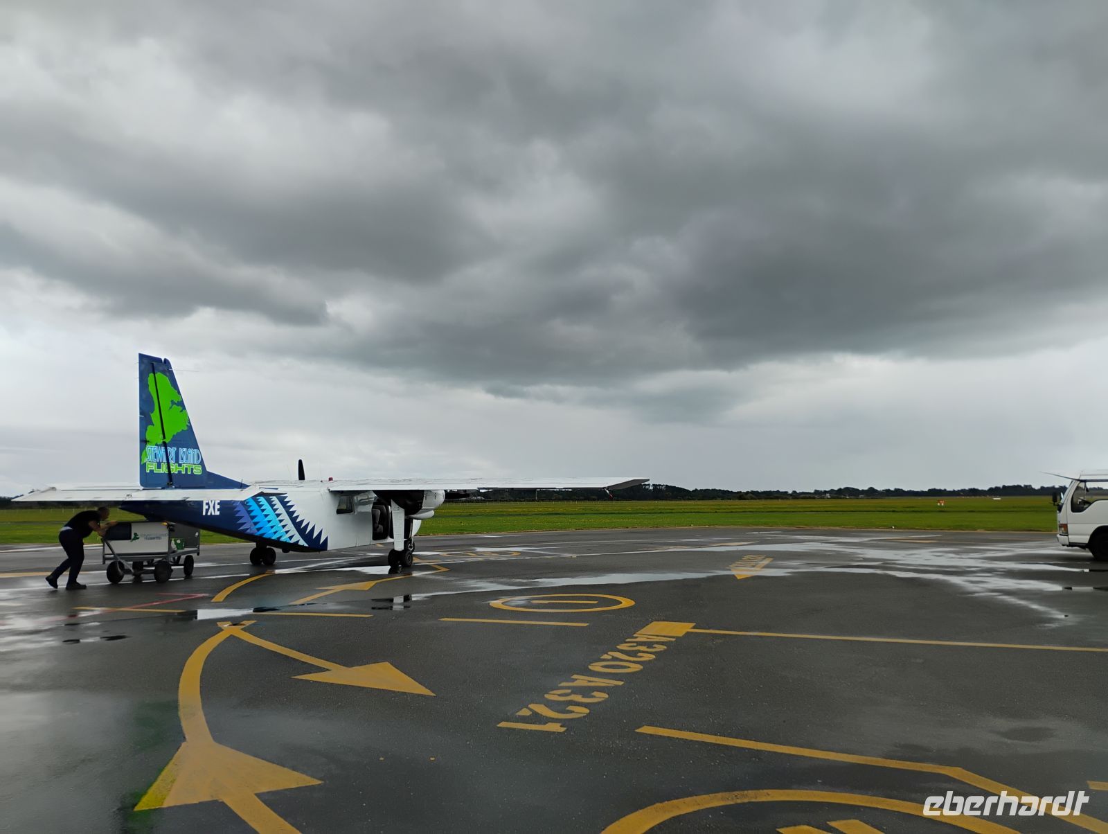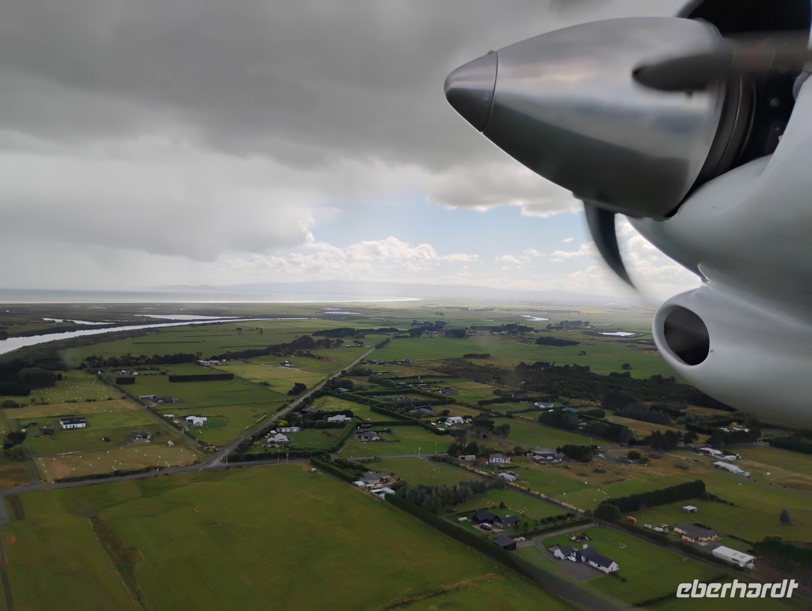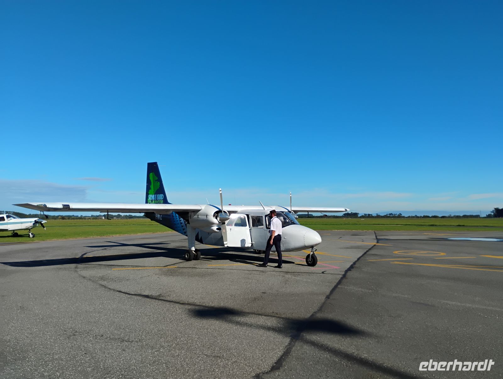 Schließlich erreichen wir Invercargill, die südlichste Stadt des Landes. Am Flughafen erledigen wir den Check-in für unseren Flug – erstaunlich unkompliziert, der Boardingpass erinnert eher an einen Kassenzettel. Mit nur neun Passagieren an Bord hebt das kleine Flugzeug wenig später ab.