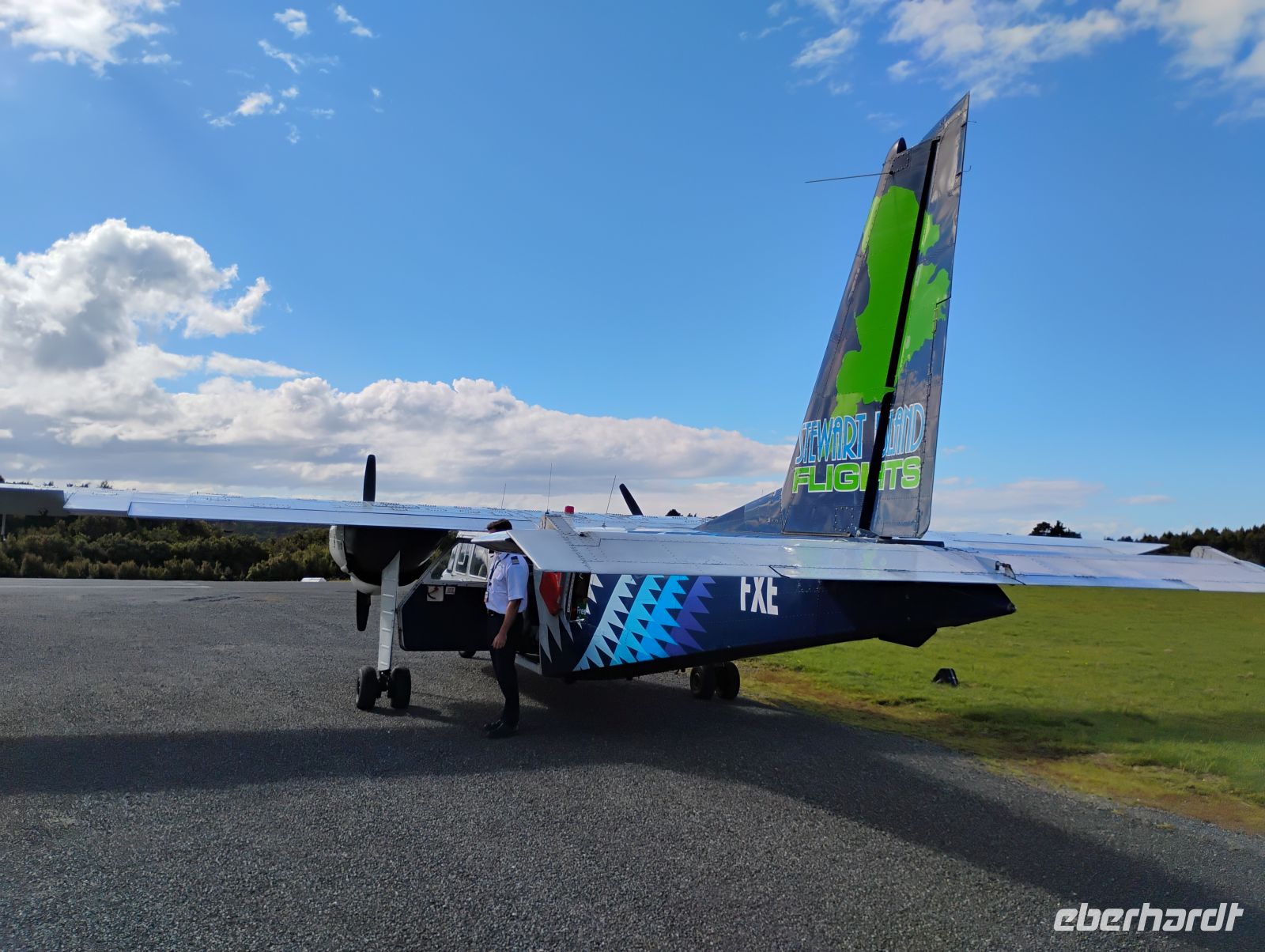 Am Morgen verabschieden wir uns von Stewart Island. Nach dem Frühstück in unseren Unterkünften treffen wir uns zum Transfer zum kleinen Flughafen von Oban. Der Check-in ist schnell erledigt, und wenig später hebt unsere kleine Maschine ab. Der Rückflug nach Invercargill dauert nur etwa zwanzig Minuten und bietet noch einmal schöne Ausblicke über die Inselwelt im Süden Neuseelands.