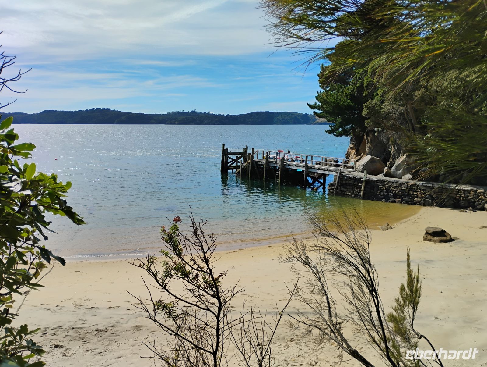 Am frühen Nachmittag steht dann ein besonderer Ausflug auf dem Programm: die Naturinsel Ulva Island. Wegen des starken Windes fahren wir zunächst mit dem Bus in eine geschütztere Bucht auf der gegenüberliegenden Seite, von wo aus wir mit dem Boot übersetzen.