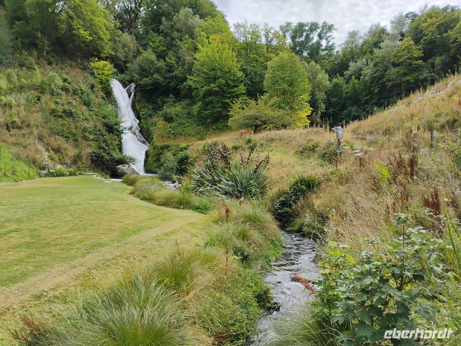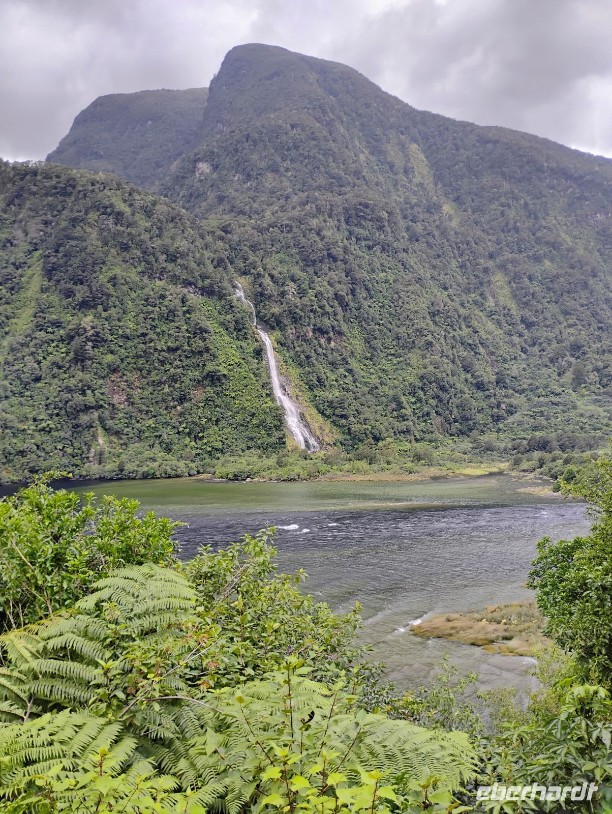 Eine besondere Pflanze am Wegesrand ist der Rangiora (Brachyglottis repanda). Seine großen, weichen Blätter mit der hellen, fast filzigen Unterseite fühlen sich überraschend samtig an. Nicht umsonst trägt er im Volksmund den Beinamen „Bushman’s Friend“. Die weichen Blätter wurden früher im Busch tatsächlich als natürlicher Ersatz für Toilettenpapier verwendet. Darüber hinaus galt die Pflanze bei den Māori auch als Heilmittel bei Hautreizungen und kleinen Wunden. Ein kurzer Abstecher führt uns zu den Waiau Falls, die ruhig und beinahe versteckt inmitten üppiger Vegetation liegen.
