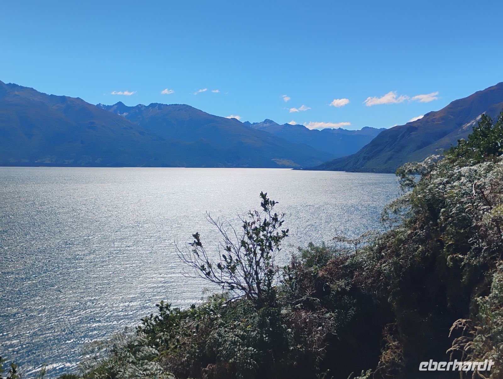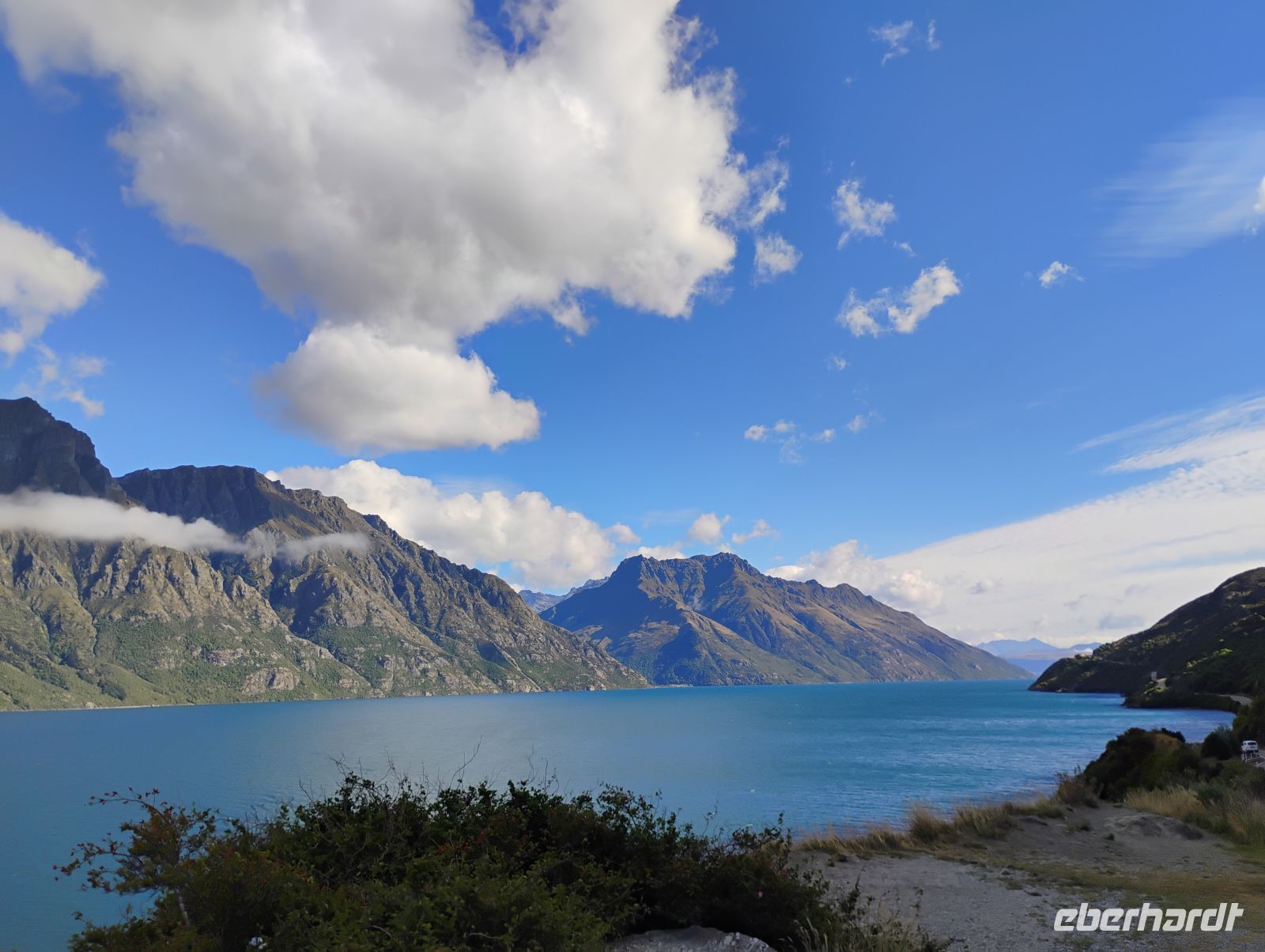 Danach folgen wir dem Ufer des Lake Wakatipu. Mit dem See verbindet sich eine Māori-Legende: Der Riese Matau entführte einst die Häuptlingstochter Manata. Ihr Geliebter Matakauri rettete sie und verbrannte später den schlafenden Riesen. Der Körper des Riesen soll dabei eine riesige Mulde in die Landschaft gebrannt haben, die sich mit Wasser füllte – so entstand der Lake Wakatipu. Der Legende nach schlägt sein Herz noch immer unter dem See und lässt den Wasserspiegel leicht steigen und fallen.