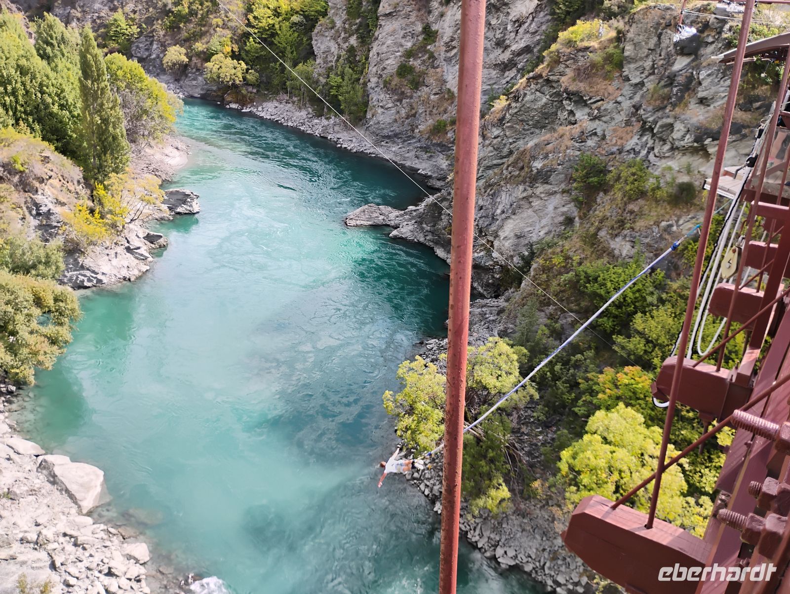 Ein ganz anderer Nervenkitzel erwartet uns wenig später an der berühmten Kawarau Bridge Bungy. Von dieser historischen Brücke wurde 1988 das kommerzielle Bungee-Jumping populär gemacht. Wir schauen eine Weile zu, wie sich einige Mutige in die Tiefe stürzen oder es sich kurz vorher doch noch einmal anders überlegen.