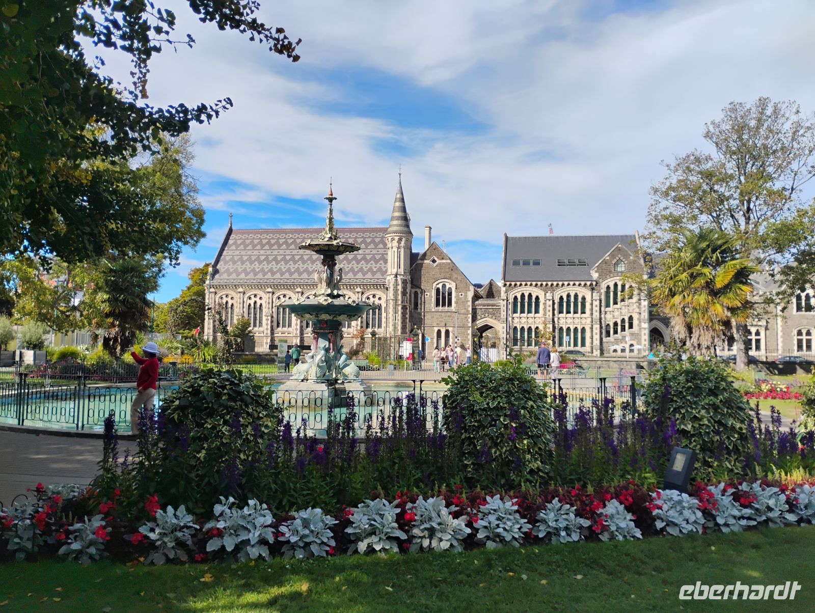 Danach bleibt noch etwas Zeit zur freien Verfügung. Einige nutzen die Gelegenheit für einen Bummel durch die Innenstadt, während andere rund um das historische Universitätsgelände und den Christchurch Botanic Gardens spazieren gehen.