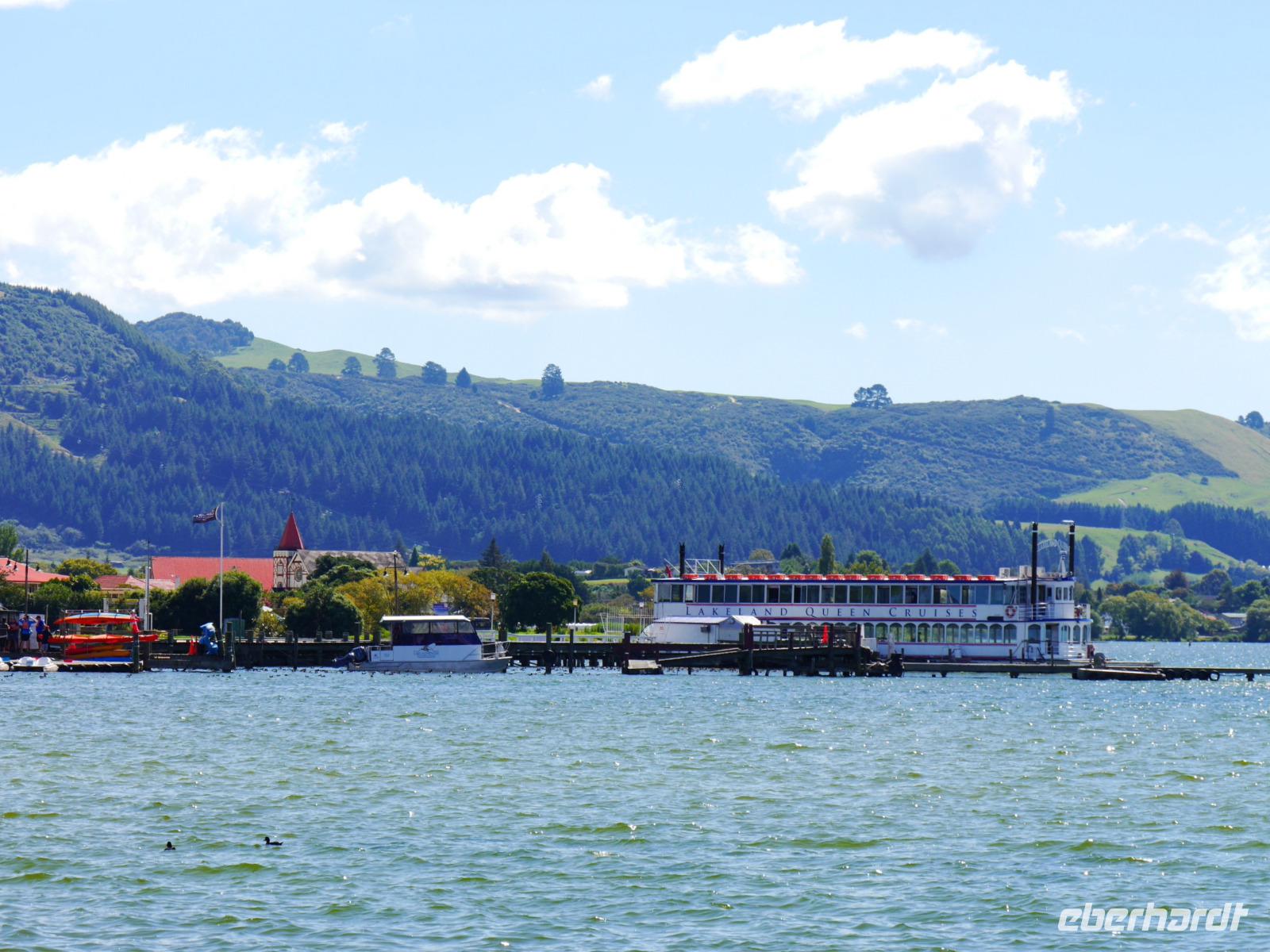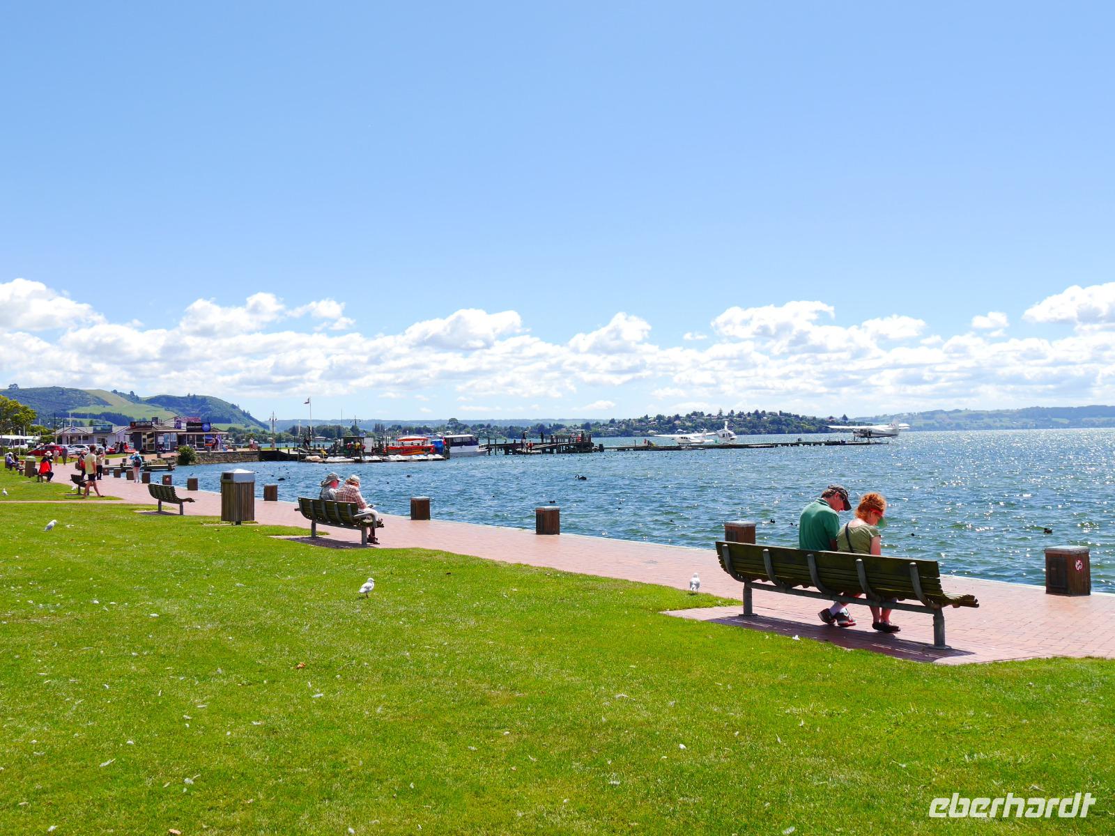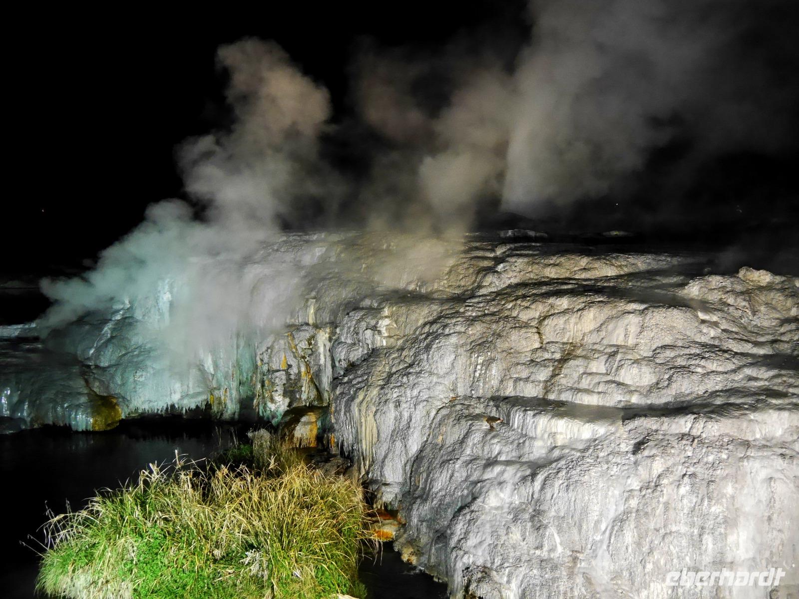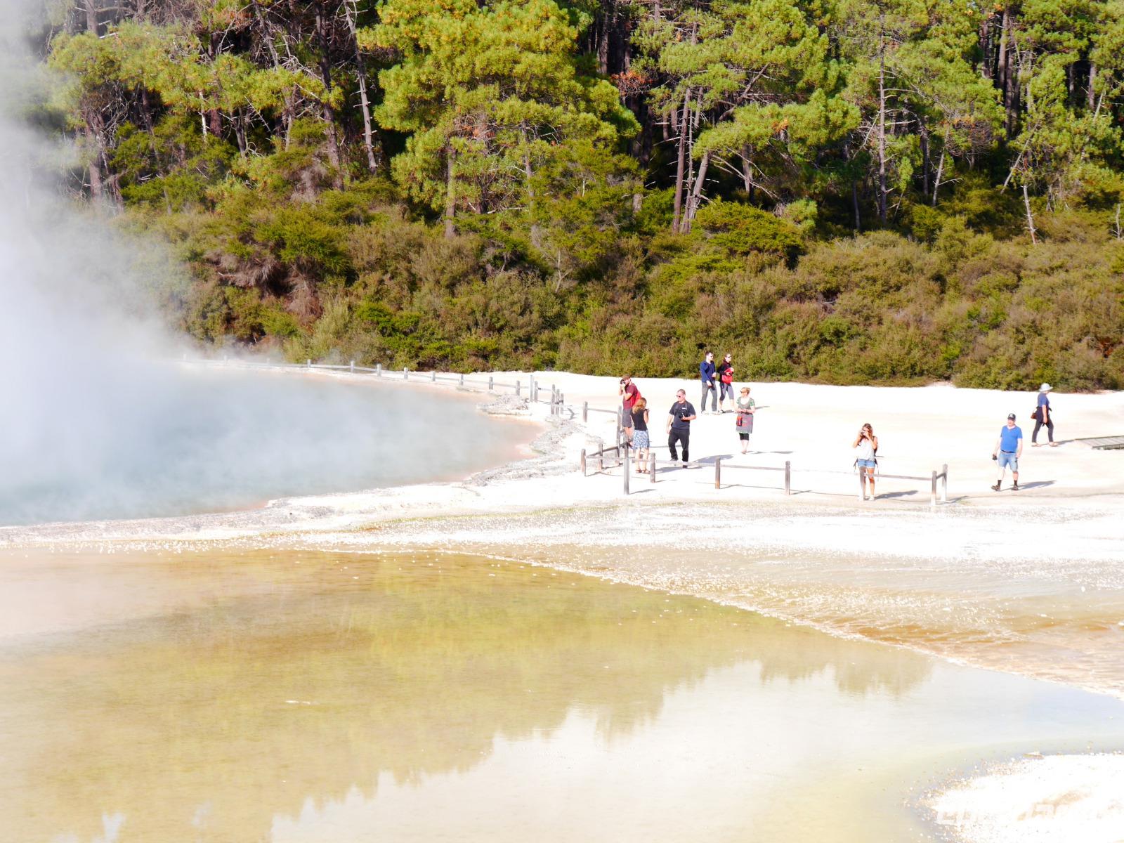 Im Großen und Ganzen gibt es zwei wichtige Gründe, Rotorua zu besuchen: geothermale Aktivitäten und Maori-Kultur. Ersteres bemerken wir spätestens ab dem Besuch der Government Gardens mit dem schmucken Badehaus von 1908. Hier bewahrheitet sich die landläufige Meinung, dass es in Rotorua immer etwas, sagen wir... unangenehm riecht. Der Abend steht ganz im Zeichen der Maori. Bei einem Hangi im Te Puia bekommen wir einen Eindruck von den Traditionen der Ureinwohner Neuseelands und auch das anschließende Essen, das zum Teil im Erdofen gegart wird, ist äußerst schmackhaft. Ein Krönchen wird diesem Tag später mit einem Bad im privaten Pool auf der Terrasse aufgesetzt. PS: Besonderer Dank gilt hier natürlich „unserem Praktikanten" alias Poolboy, Kofferträger, Film-Crew, Paparazzo, Pianist, gute-Laune-Macher etc. ;-)